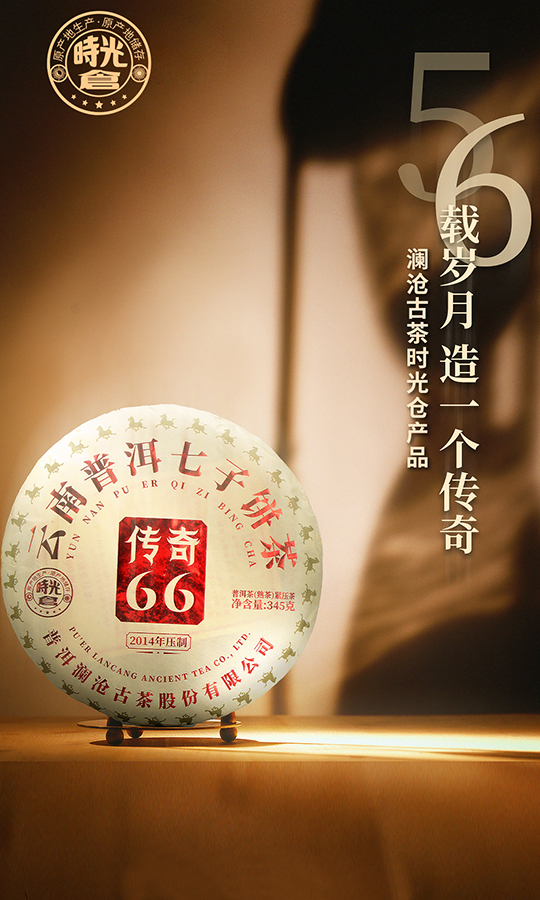 2022年传奇66大饼普洱茶熟茶叶时光仓8年陈古树熟茶350g 配亚克力礼盒