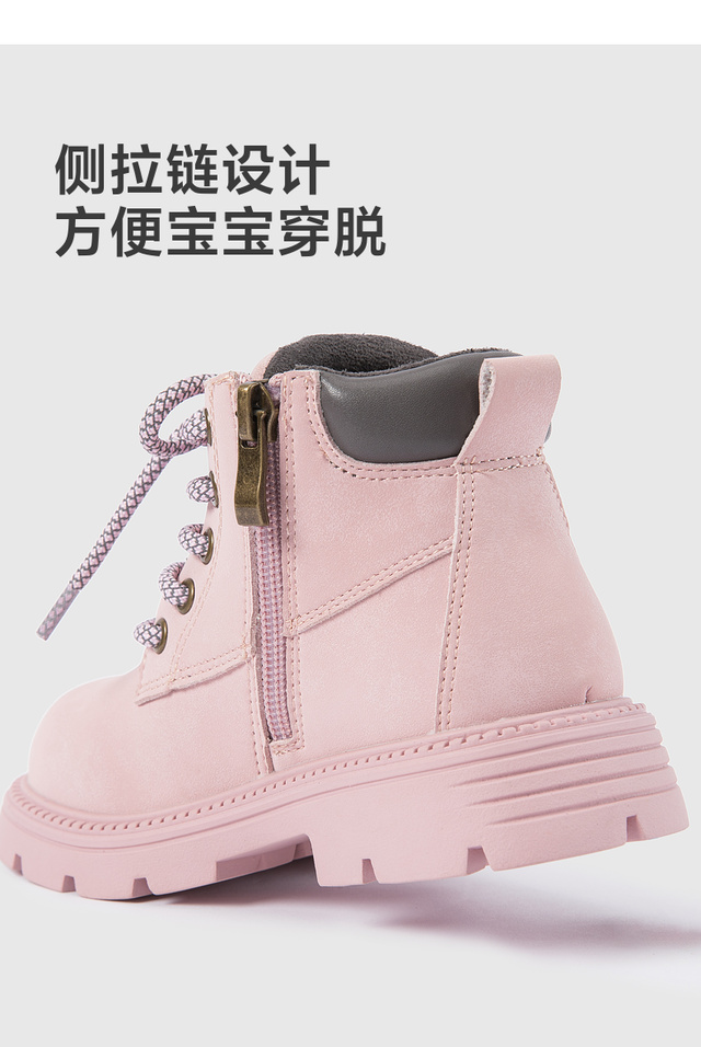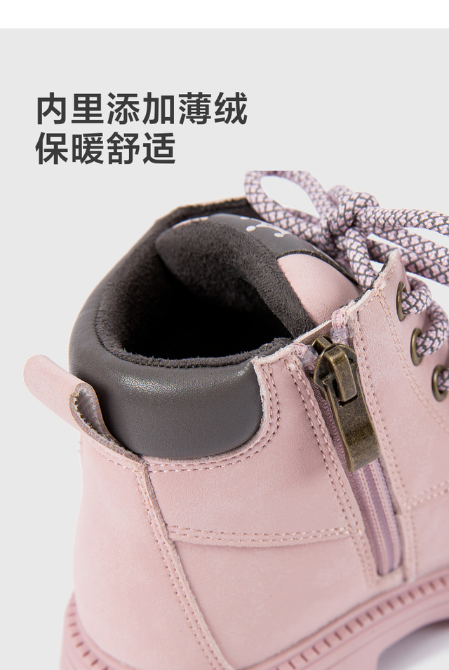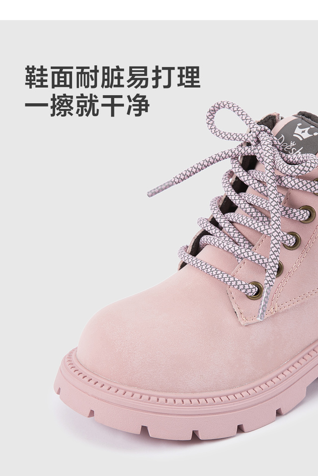 笛莎Deesha 女童童鞋2025冬季新款短筒薄绒皮靴