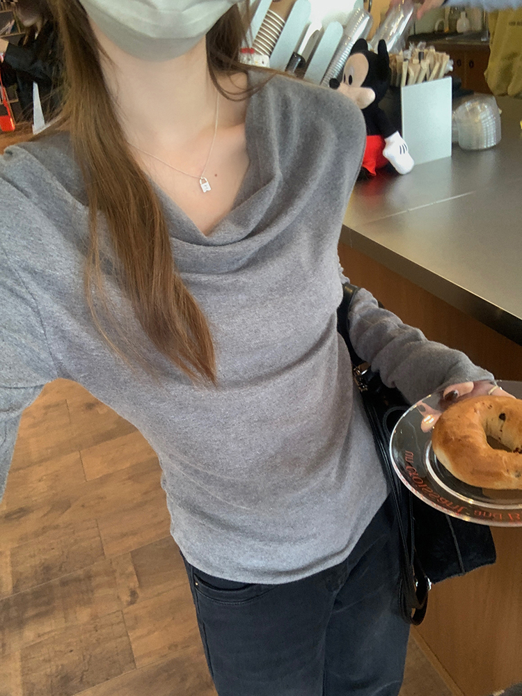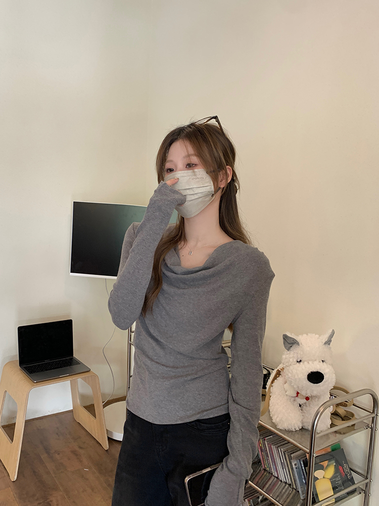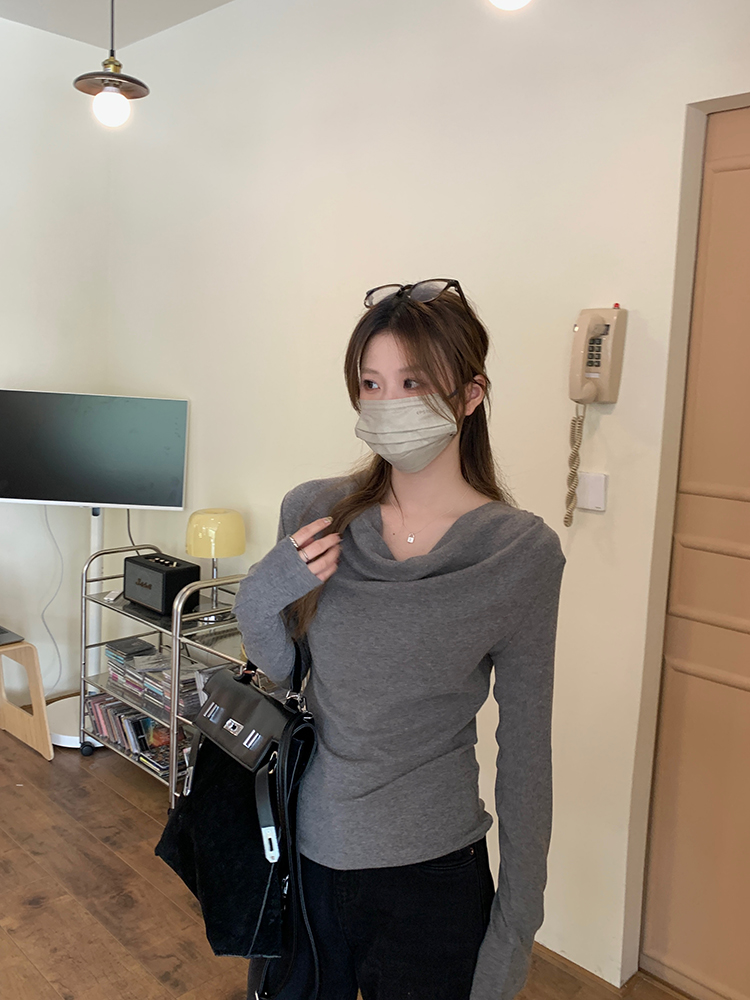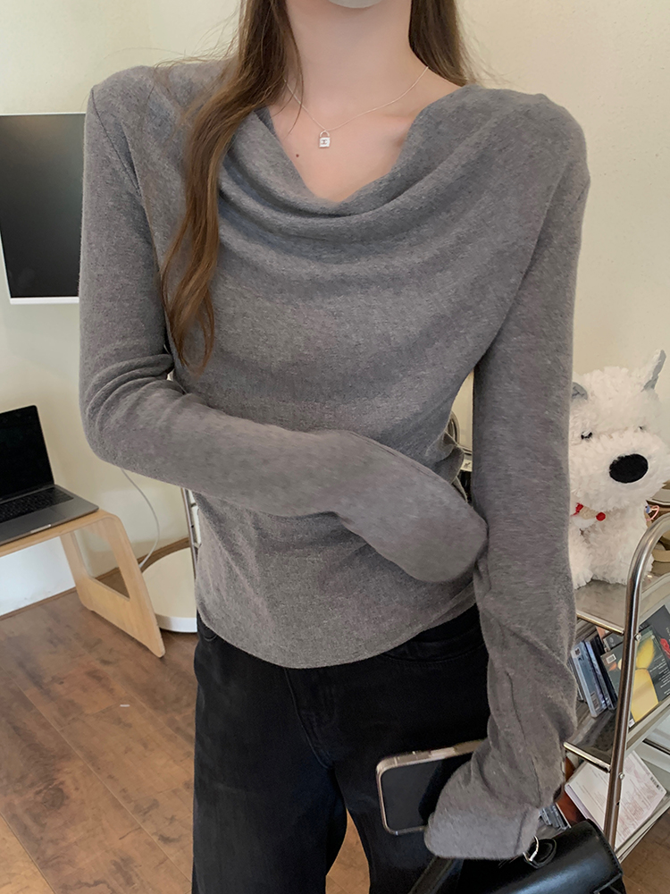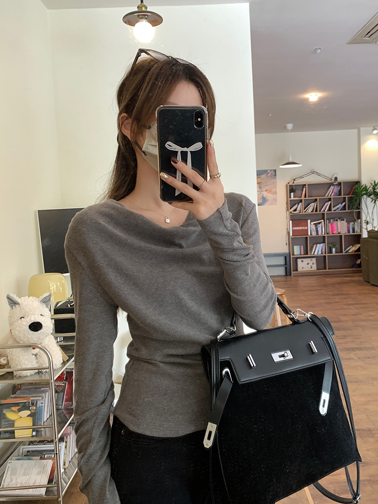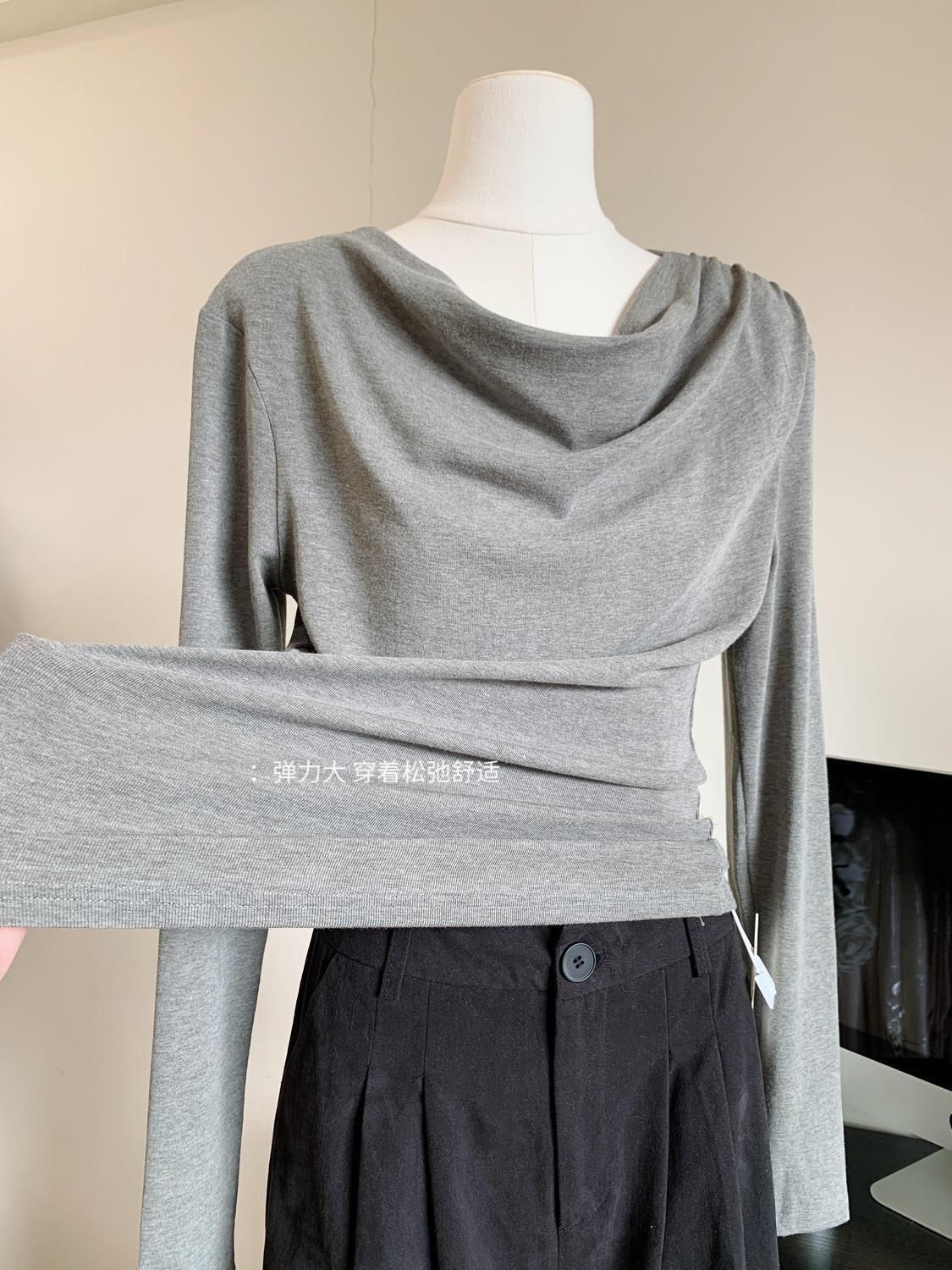 春秋【法式复古 荡领长袖打底衫女】气质修身春装 时尚T恤上衣衣服女