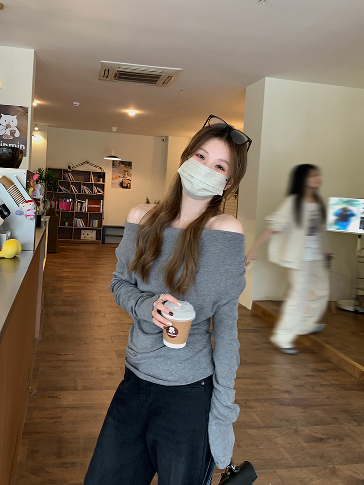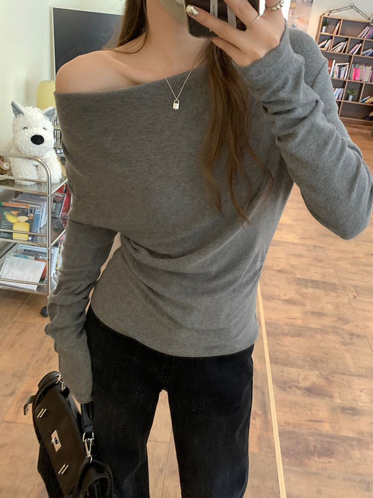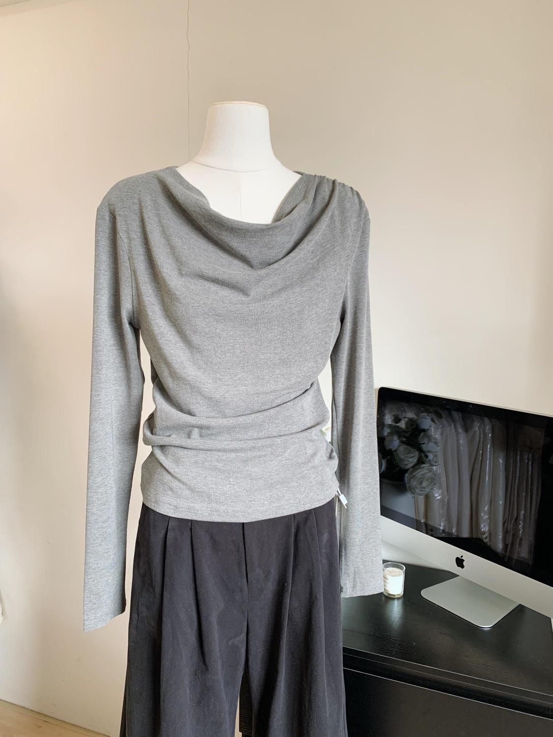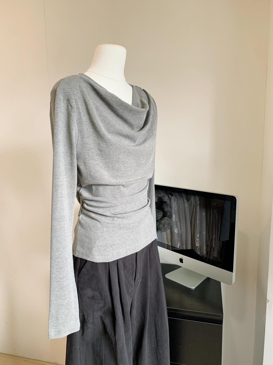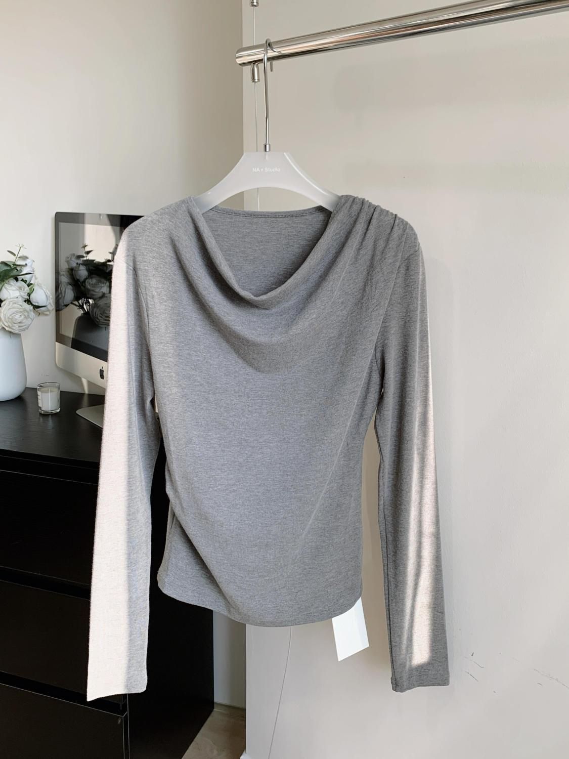 春秋【法式复古 荡领长袖打底衫女】气质修身春装 时尚T恤上衣衣服女