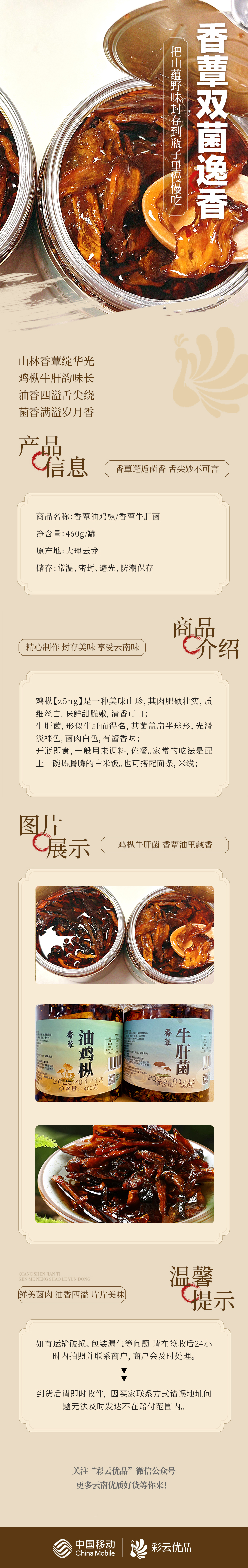 云南大理特产油鸡枞460g/瓶、油牛肝菌460g/瓶