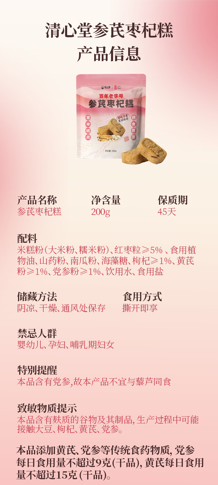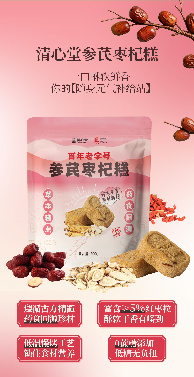 参芪枣杞糕 低温慢烤低糖轻负担拒绝添加 补充精力老少皆宜办公家庭健康糕点 元气红润枸杞糕点200g/袋