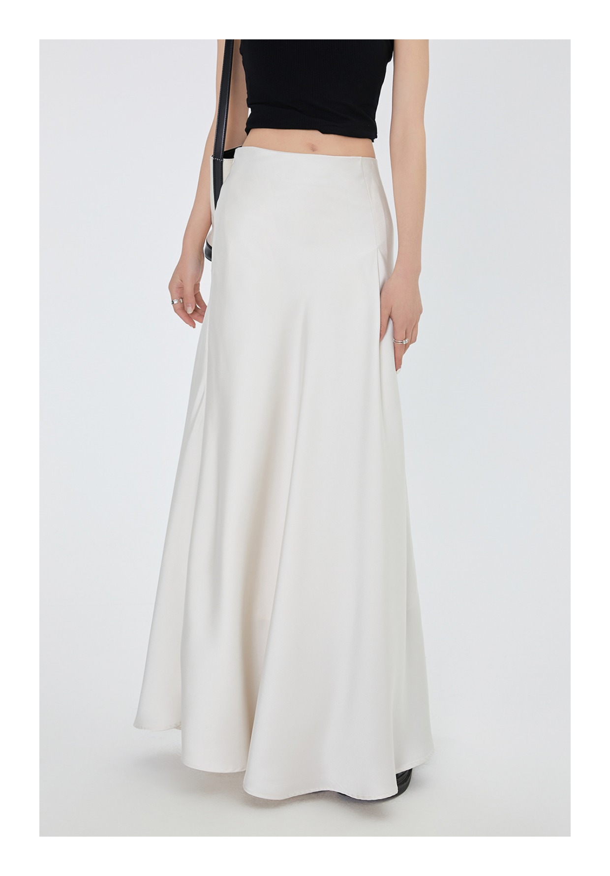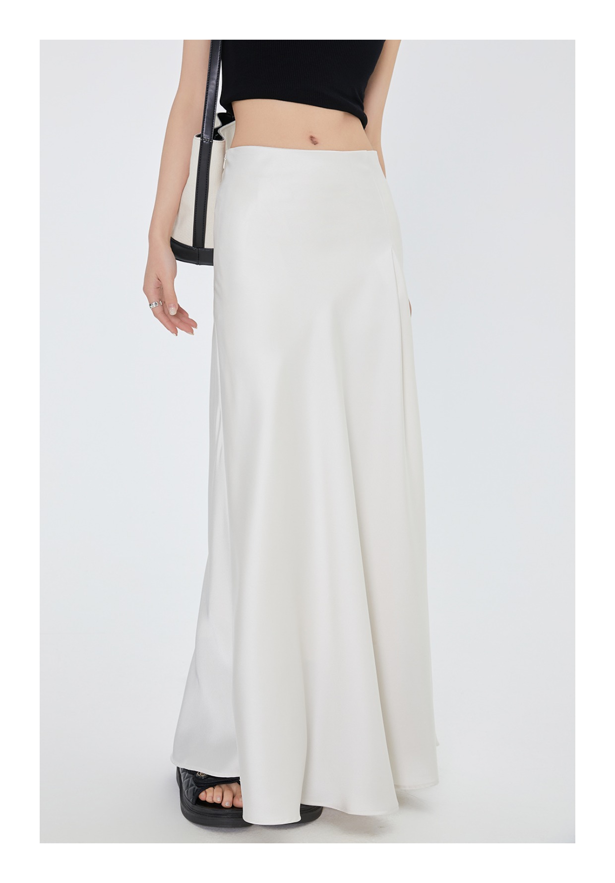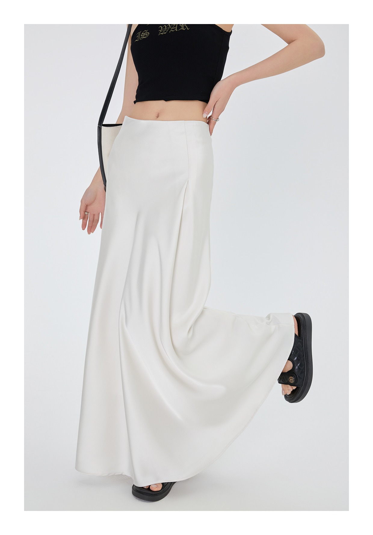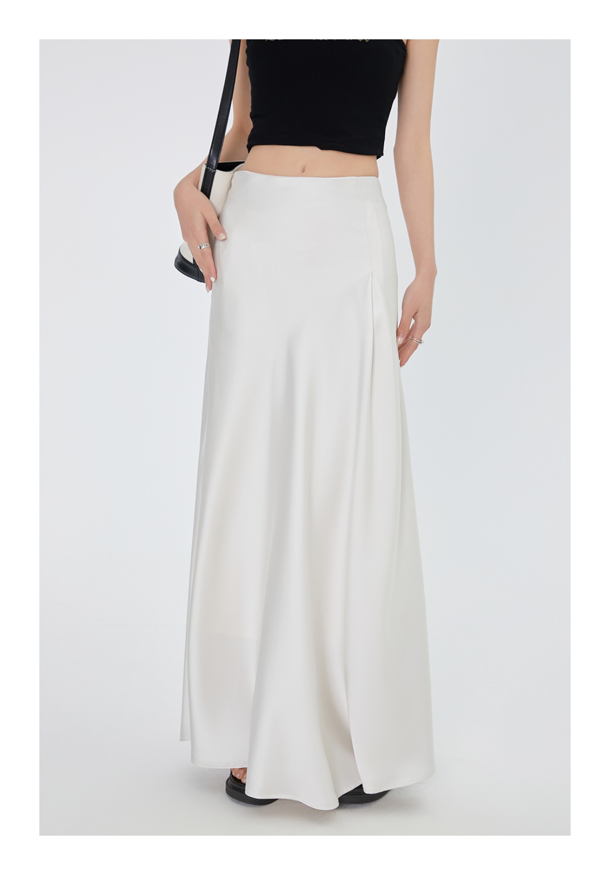 白色缎面垂坠感半身裙夏季醋酸中长款裙子高腰长款a字裙2023