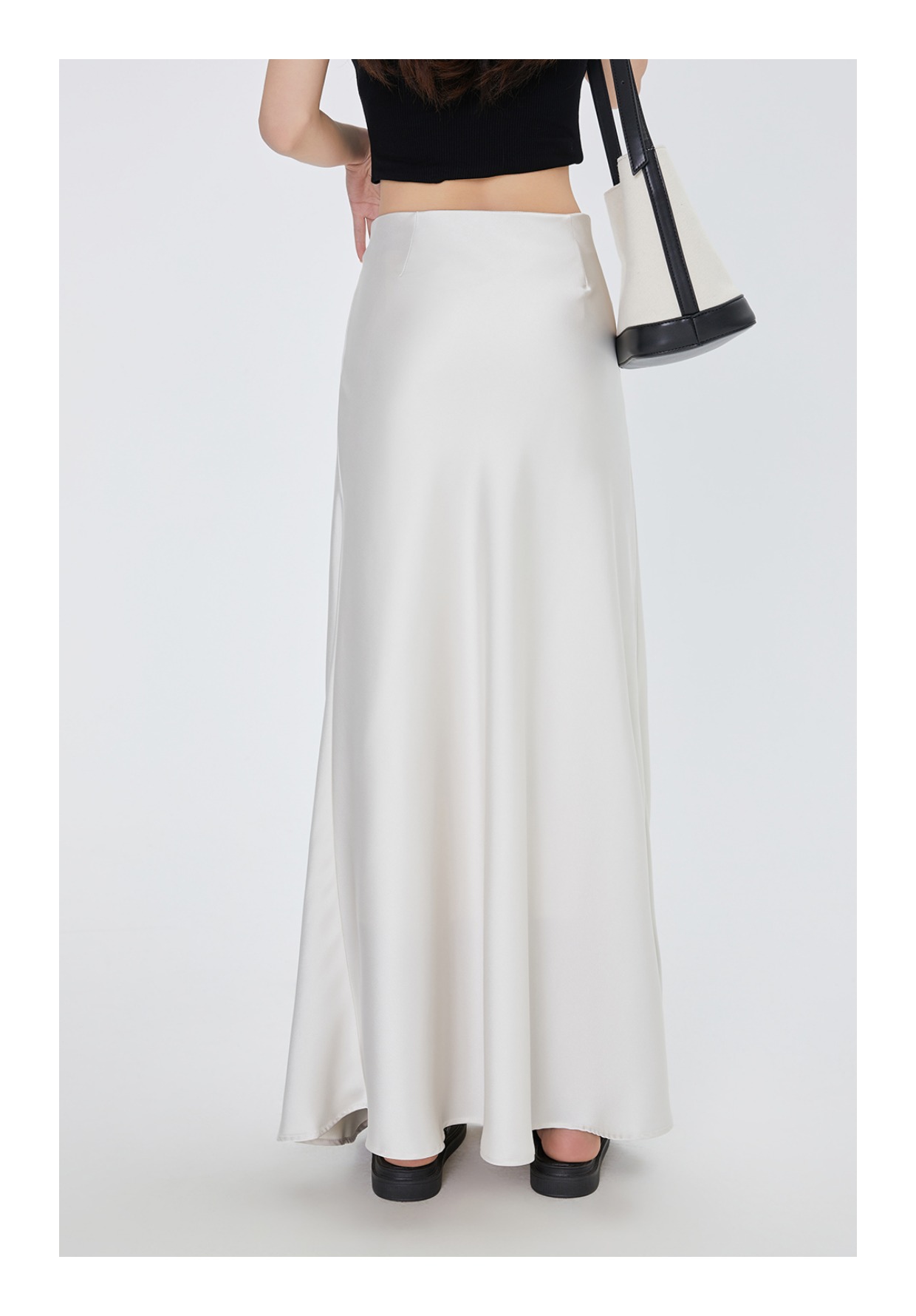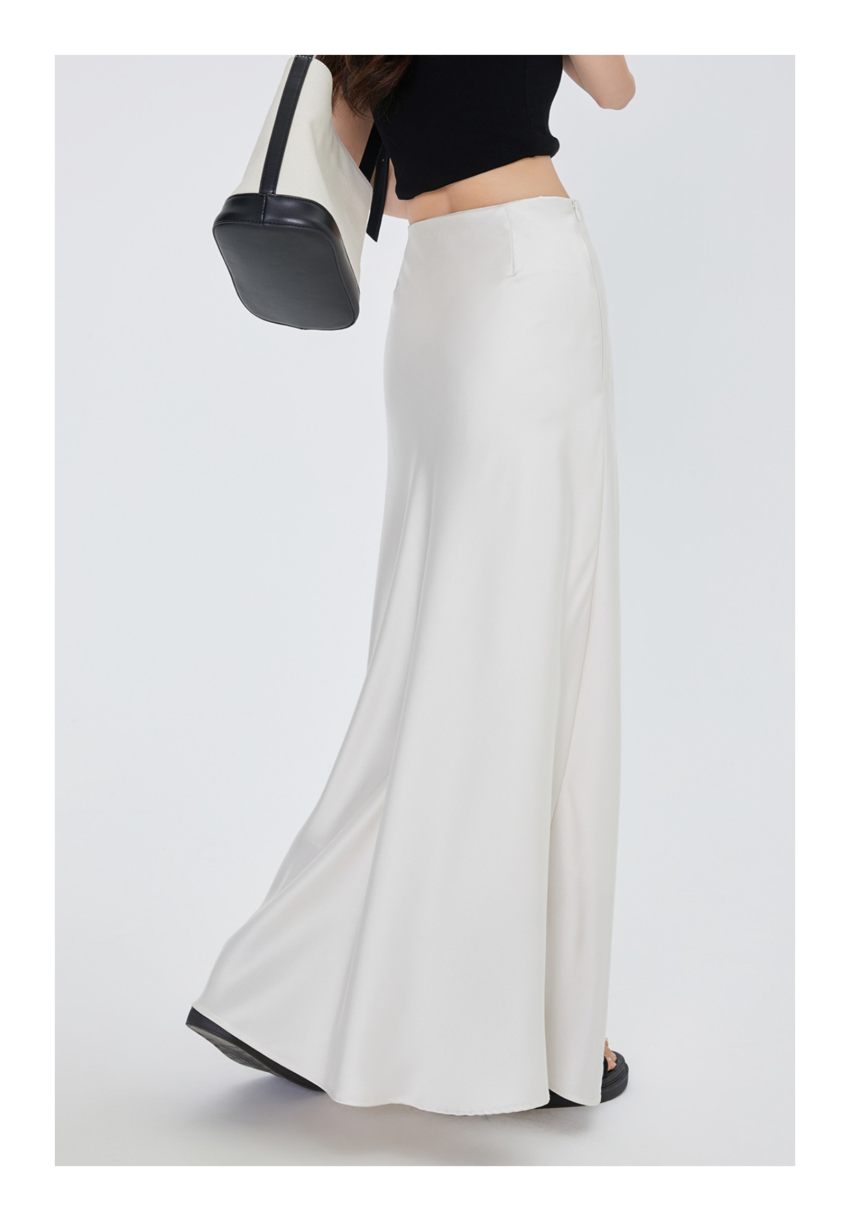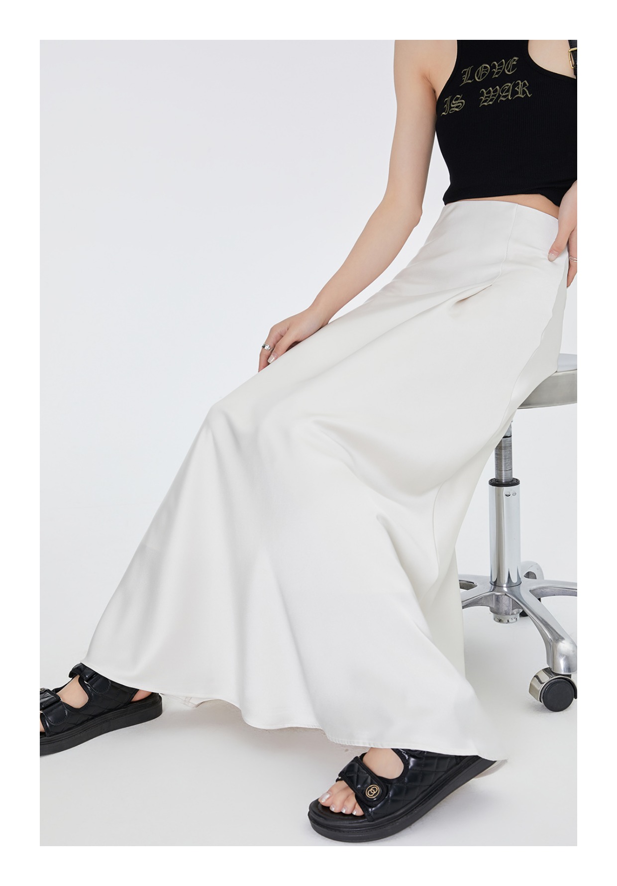 白色缎面垂坠感半身裙夏季醋酸中长款裙子高腰长款a字裙2023