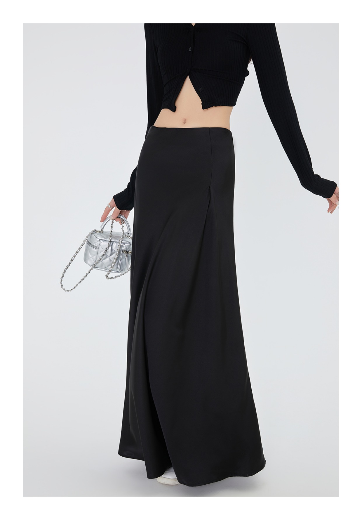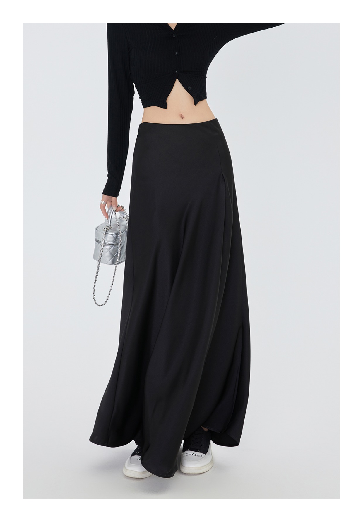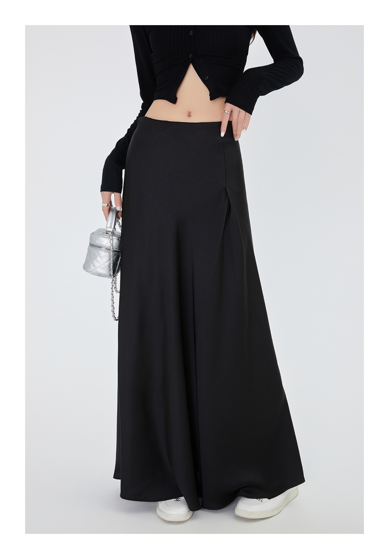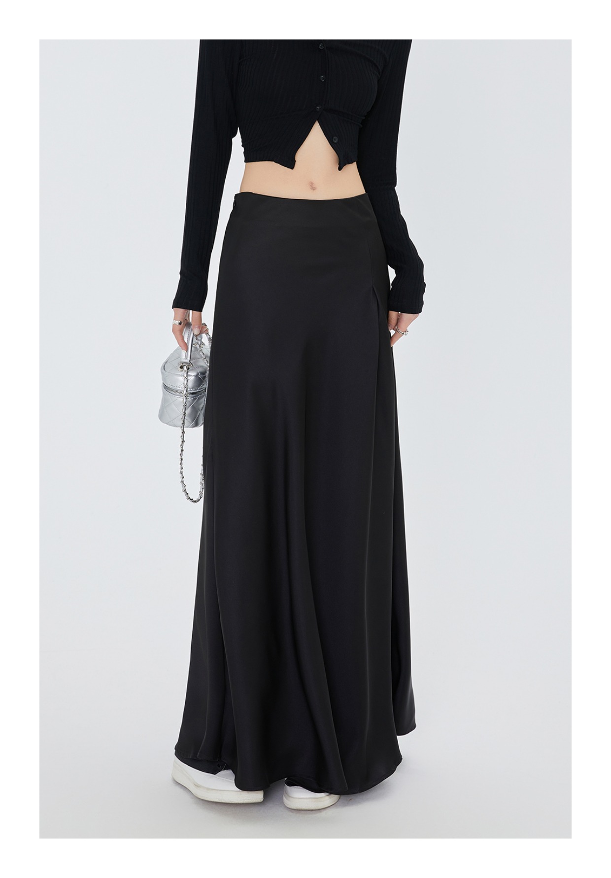 白色缎面垂坠感半身裙夏季醋酸中长款裙子高腰长款a字裙2023