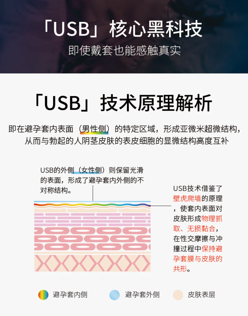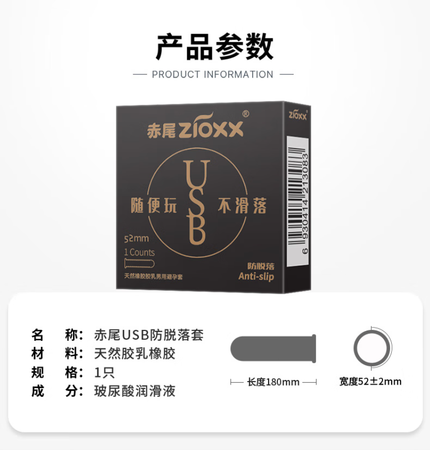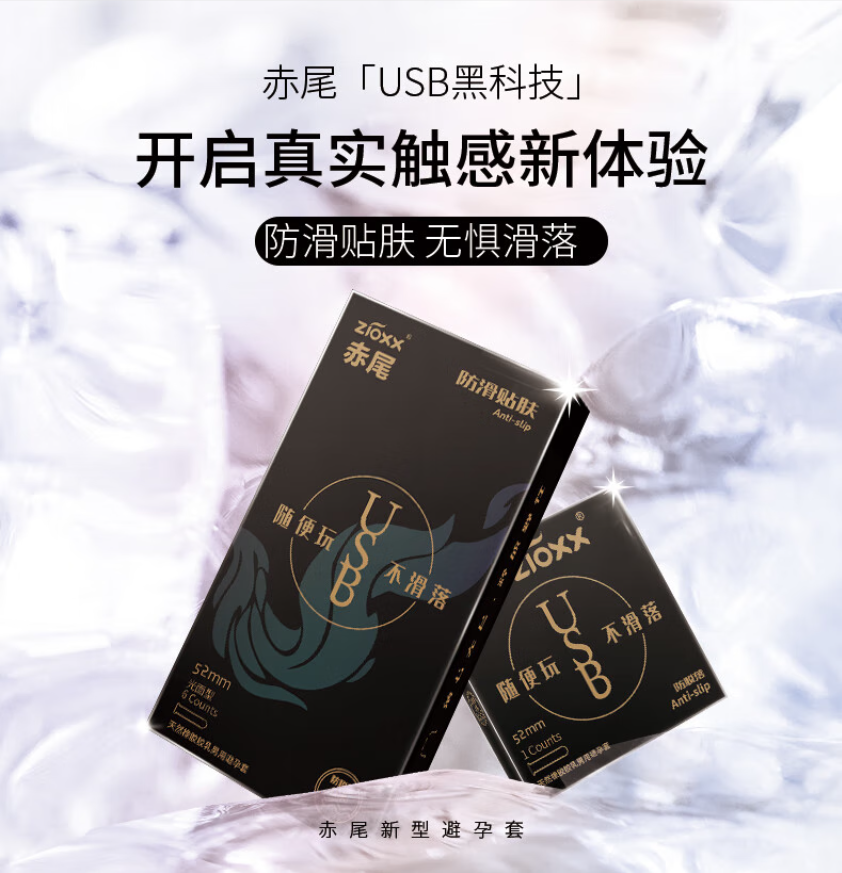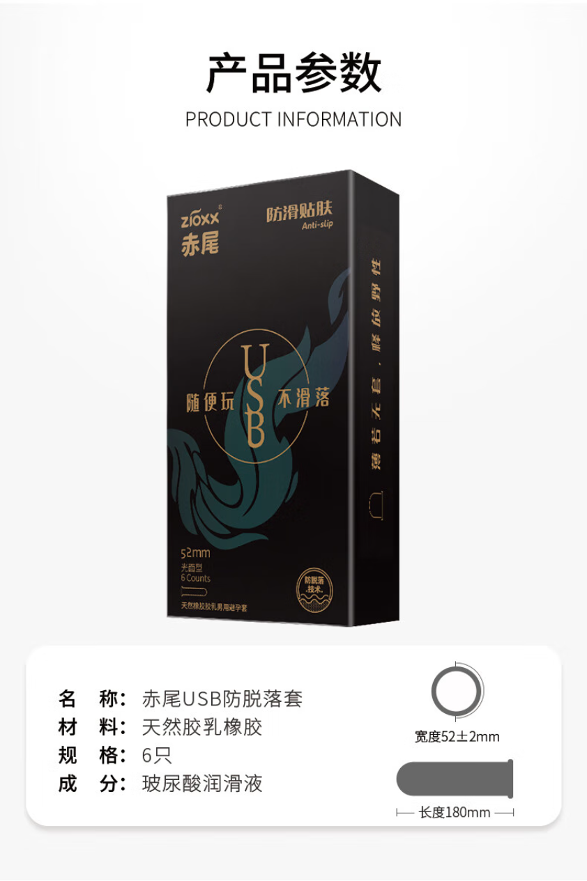 赤尾官方正品 USB防滑避孕套 玻尿酸持久润滑 超薄安全套 男女套套byt 6只【单盒装】USB防脱落套