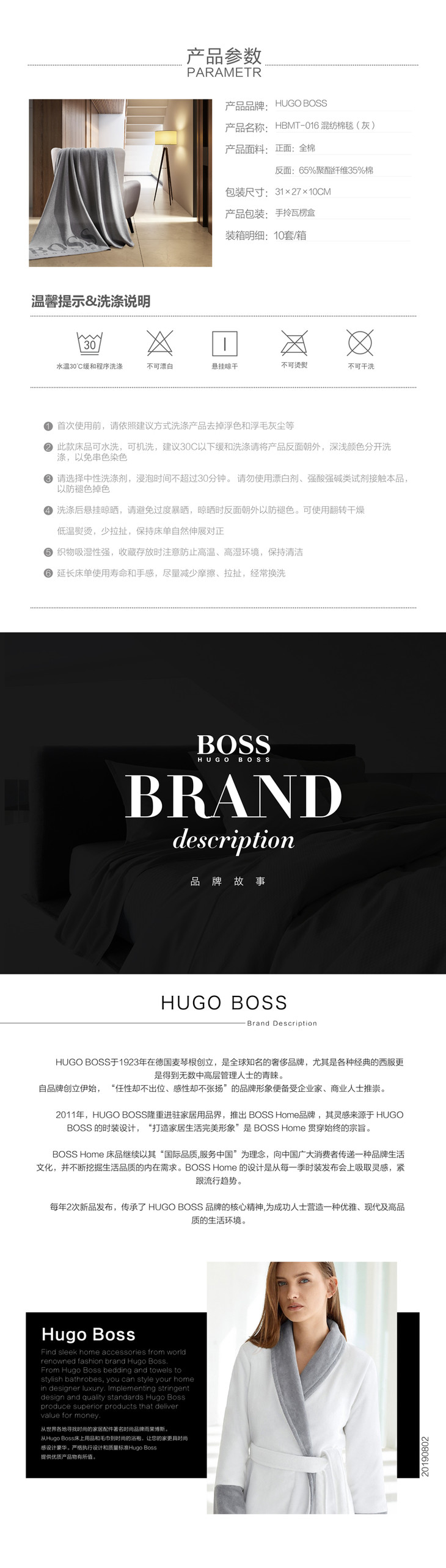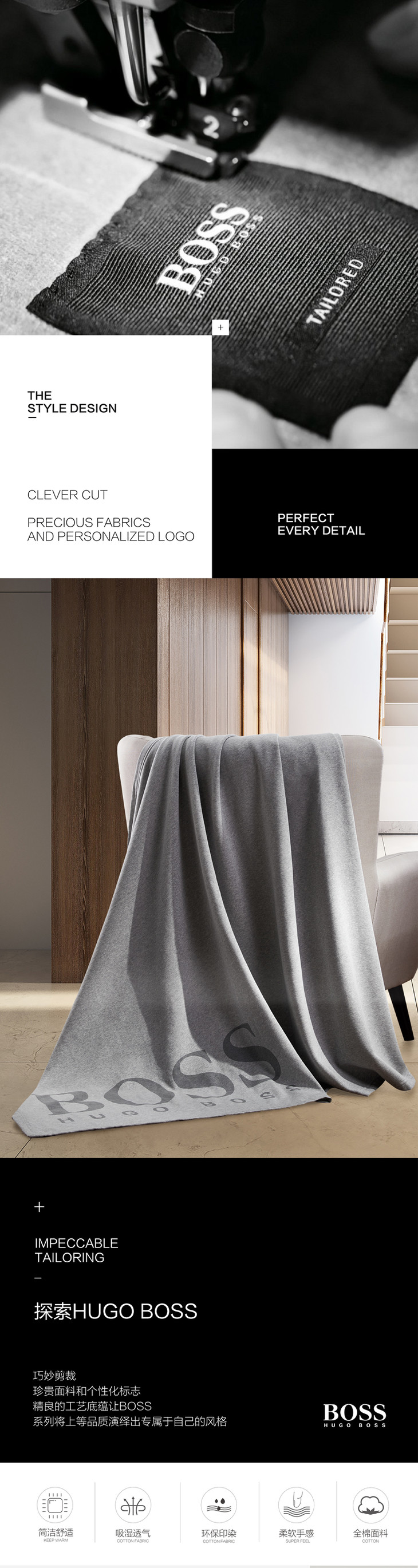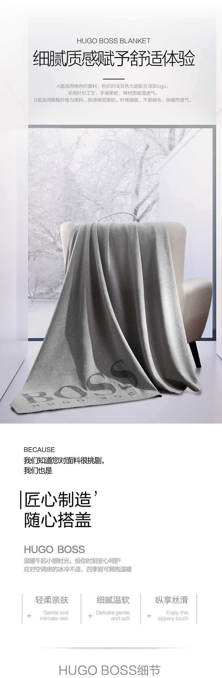 HBMT-016 HUGO BOSS LOGO混纺棉毯(灰)