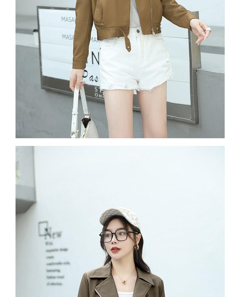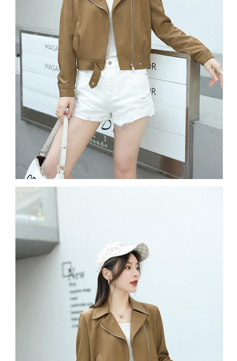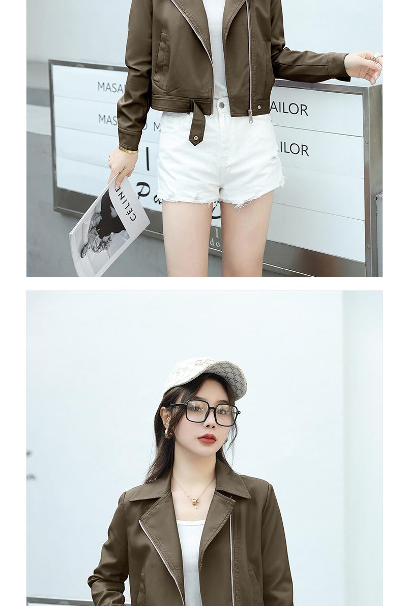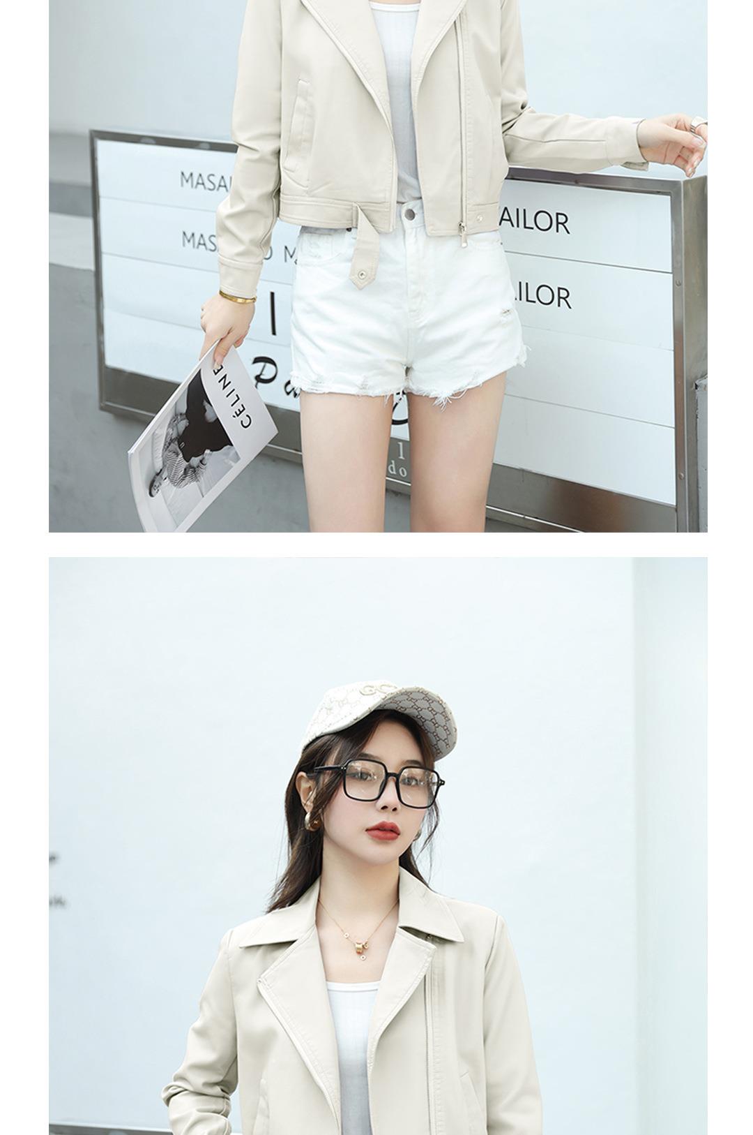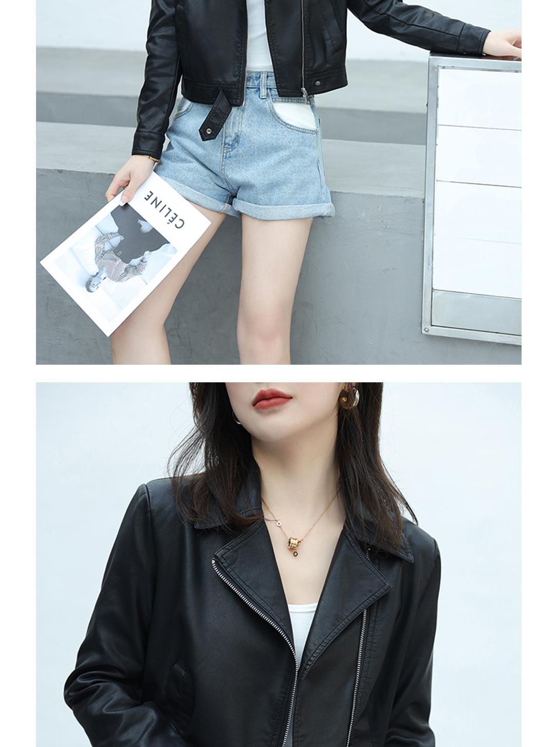 韩版短款皮衣外套女2023春秋新款西装领宽松水洗PU皮衣女