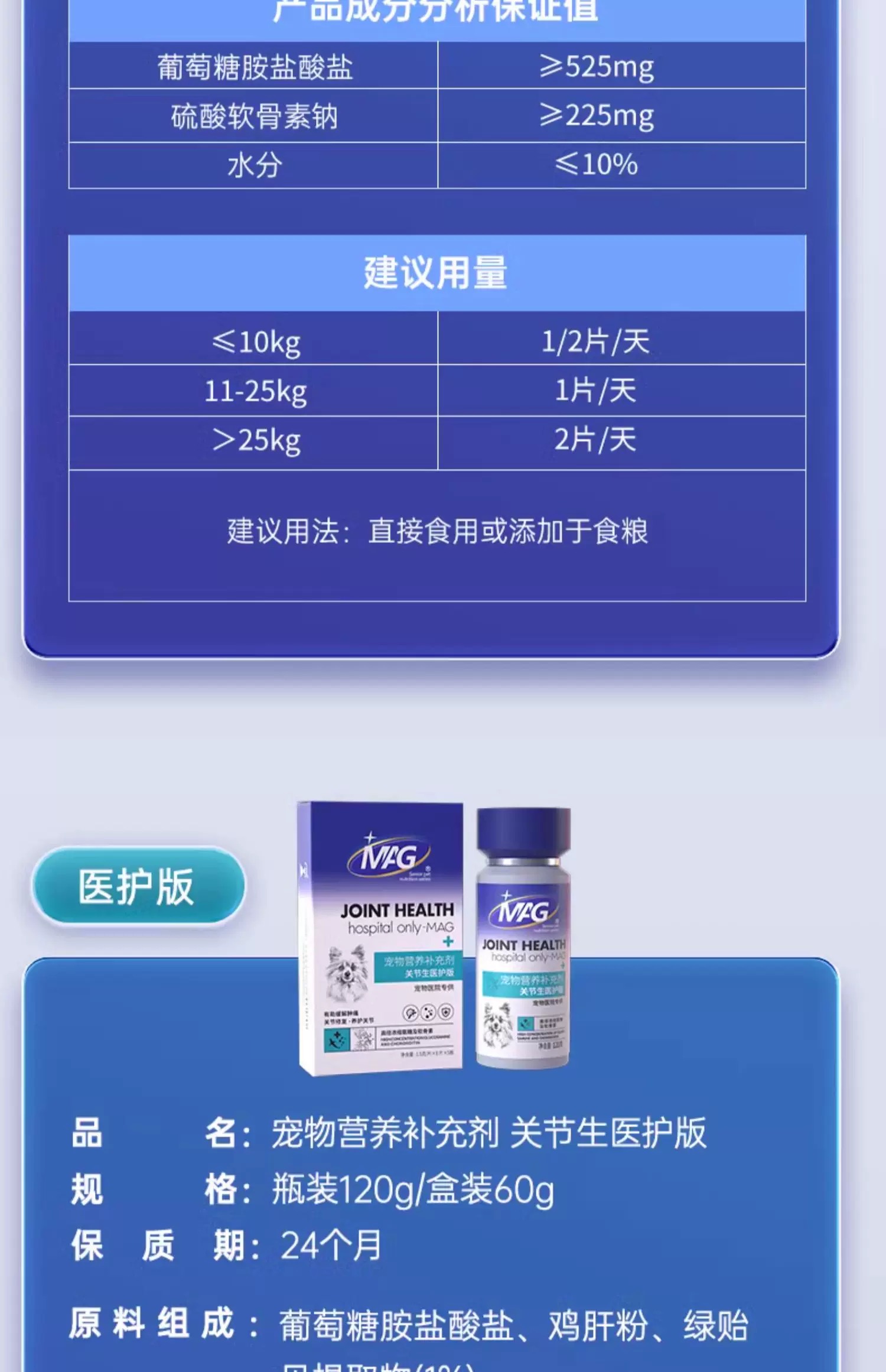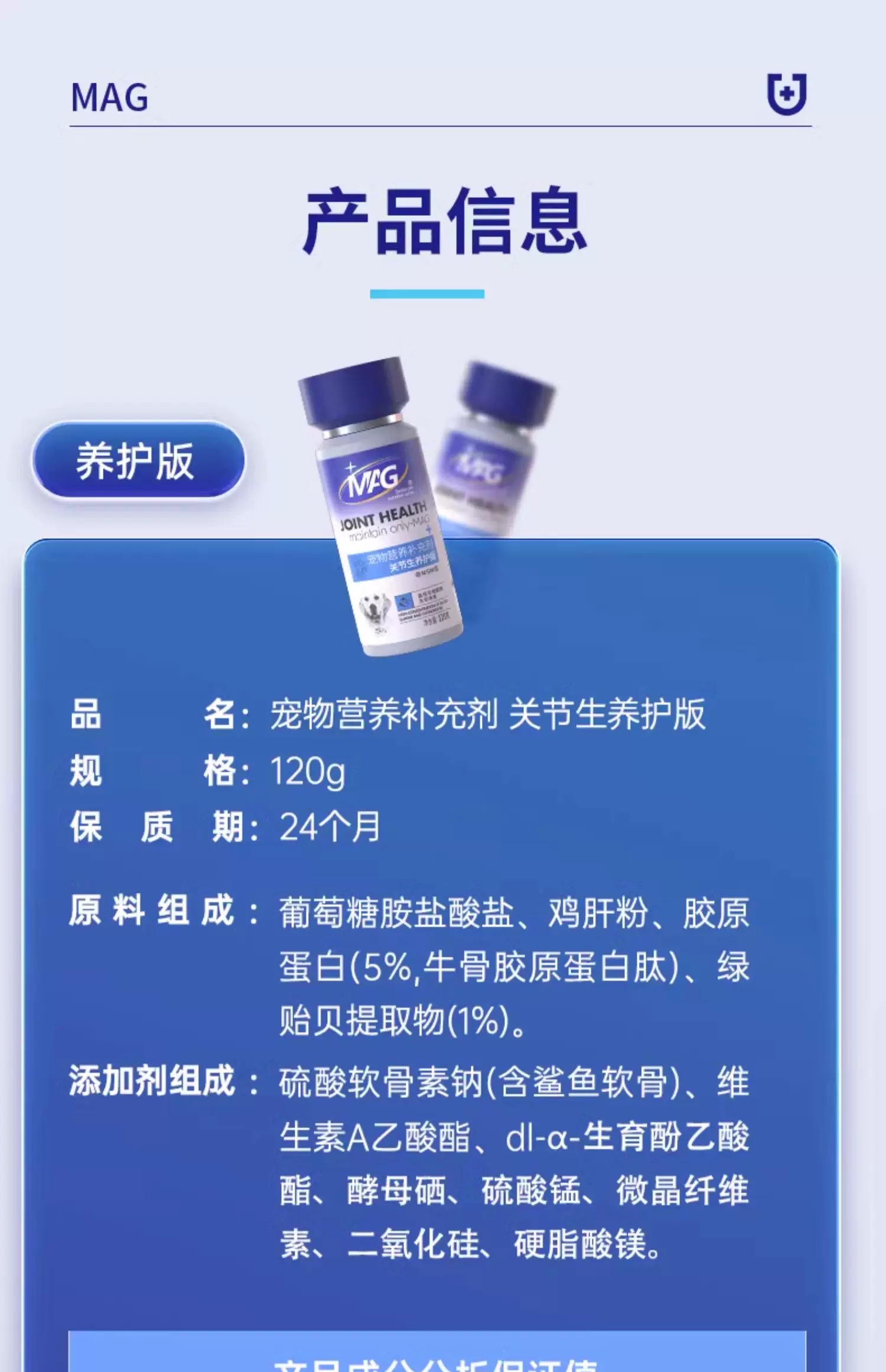 MAG鲨鱼软骨素狗 宠物钙片关节生保护 狗狗专用 关节问题养护
