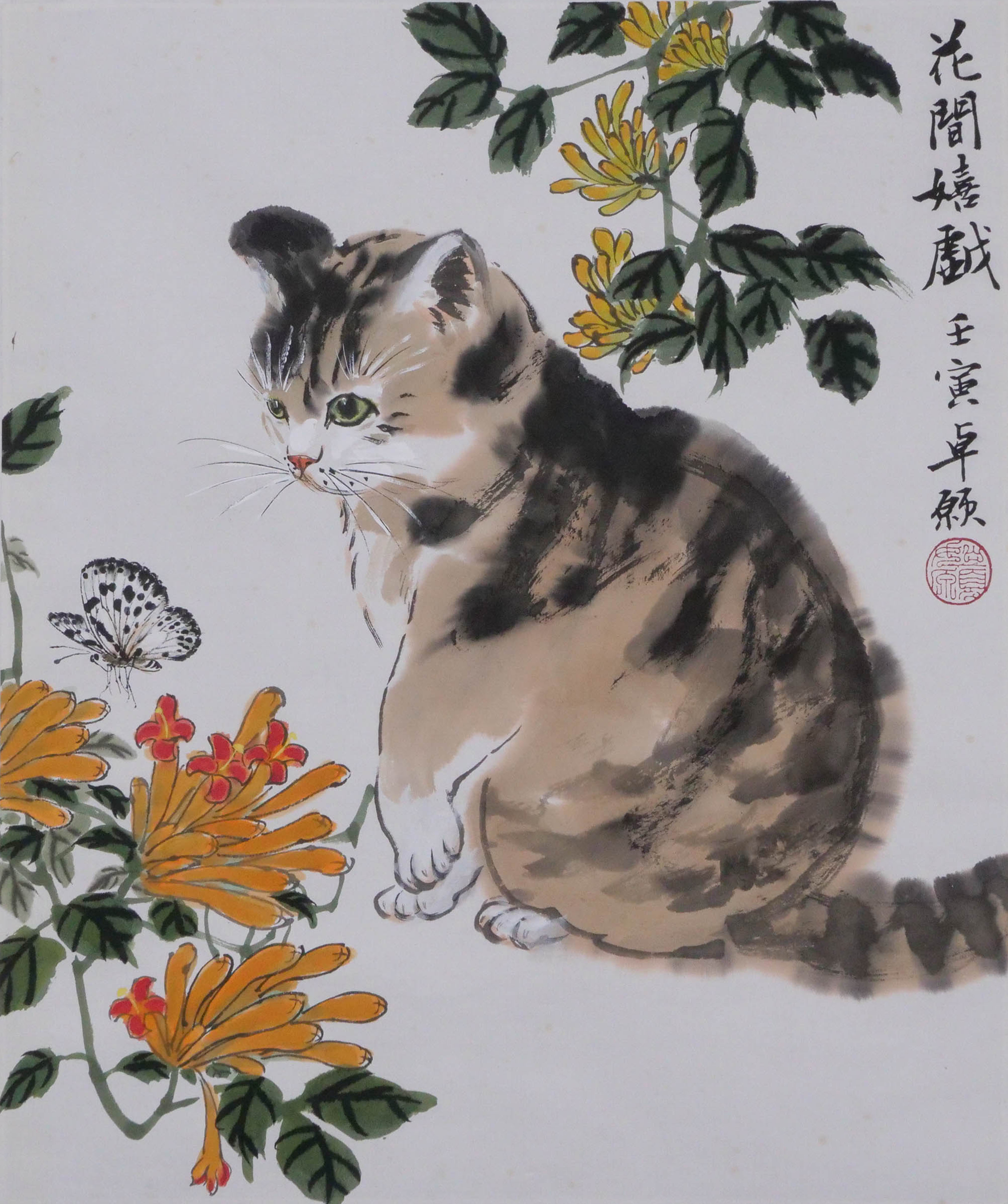卓愿《花间嬉戏》45x37.5CM 手绘纸本宣纸国画作品