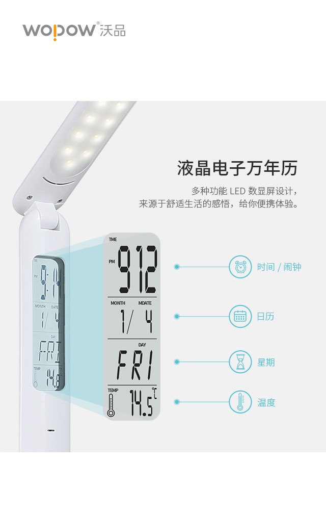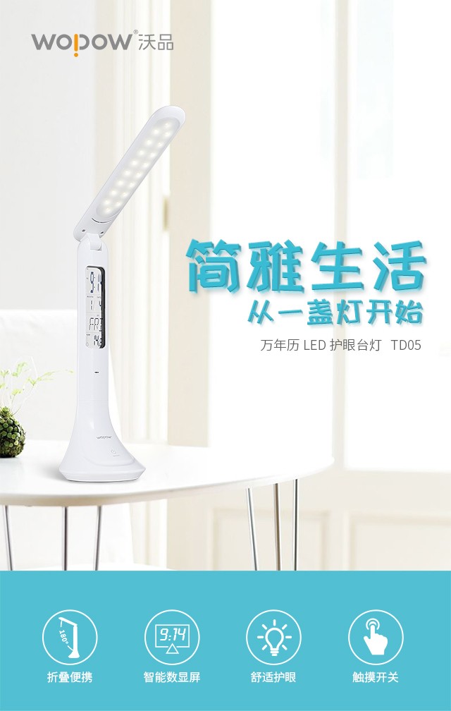 沃品 TD05 台灯保护视力台灯LED 万年历 护眼台灯 白色