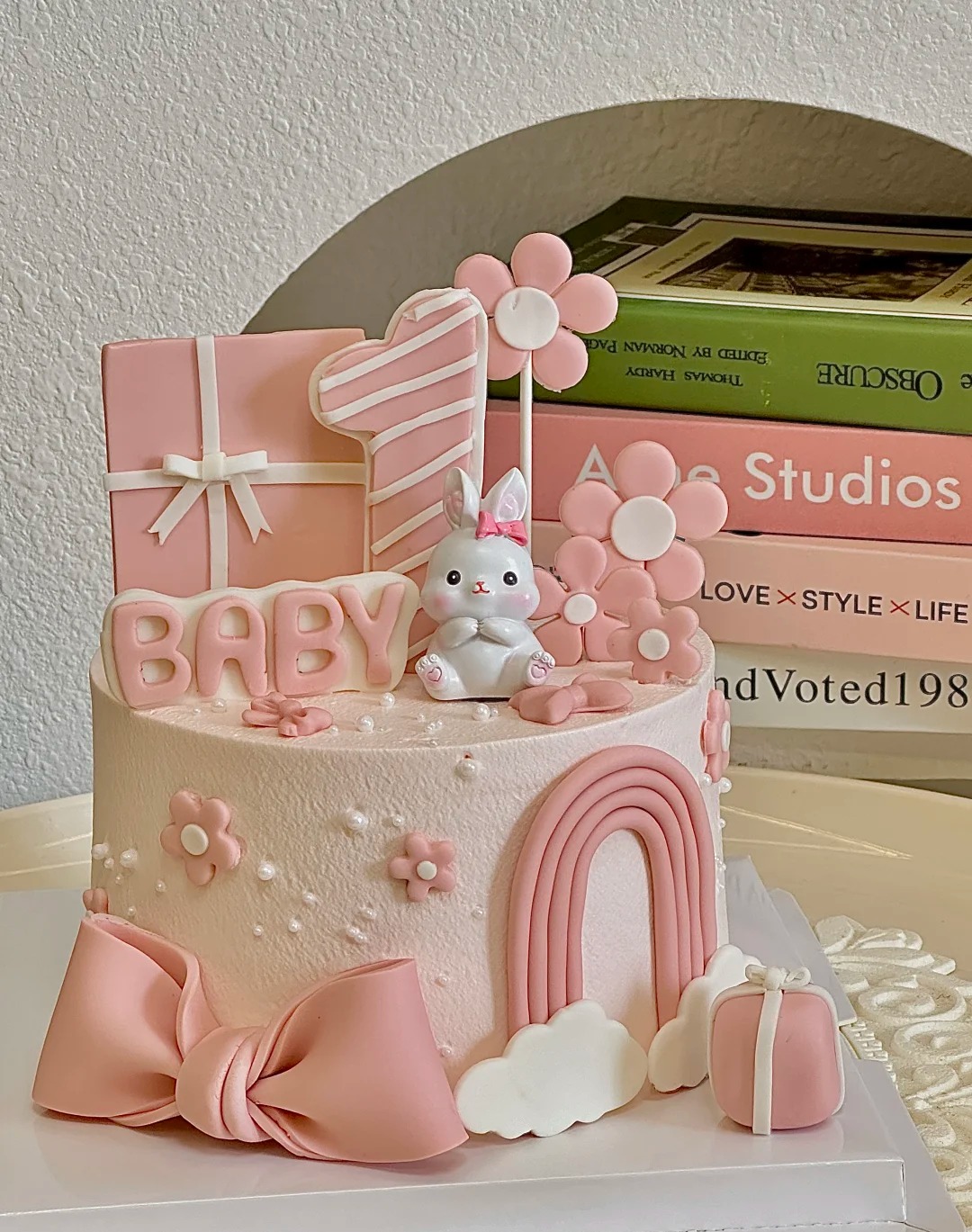 【臻品系列】---【周岁可爱兔兔】翻糖装饰蛋糕
