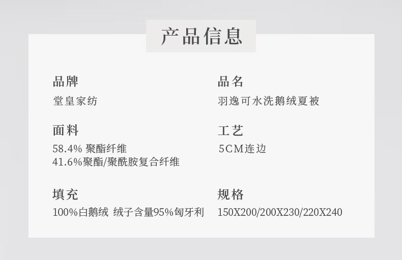 【堂皇】B7F 堂皇羽逸可水洗鹅绒夏被