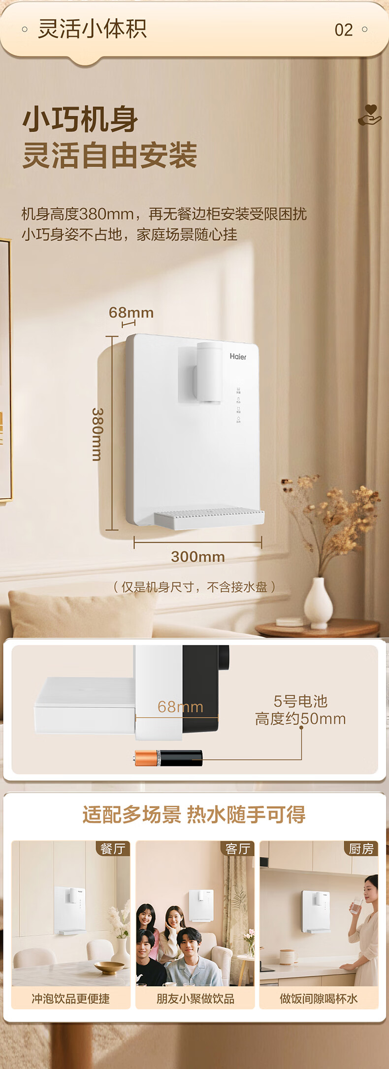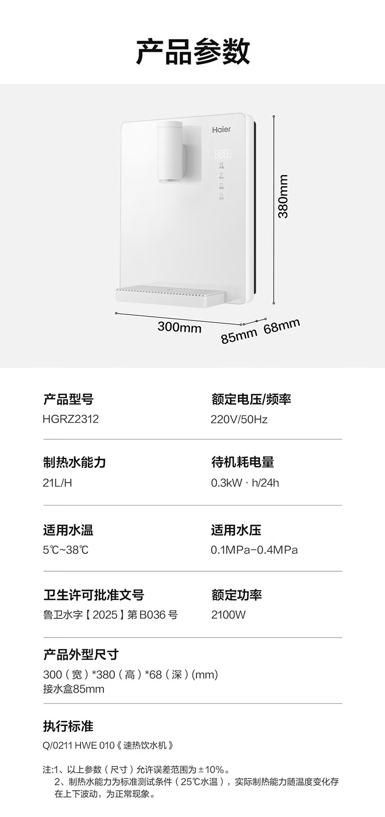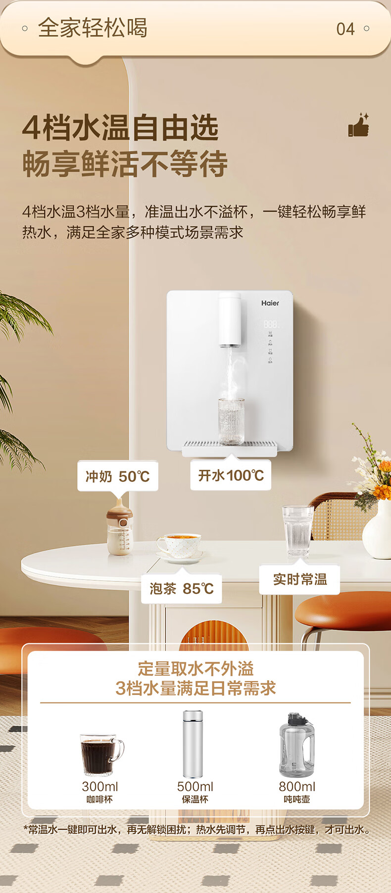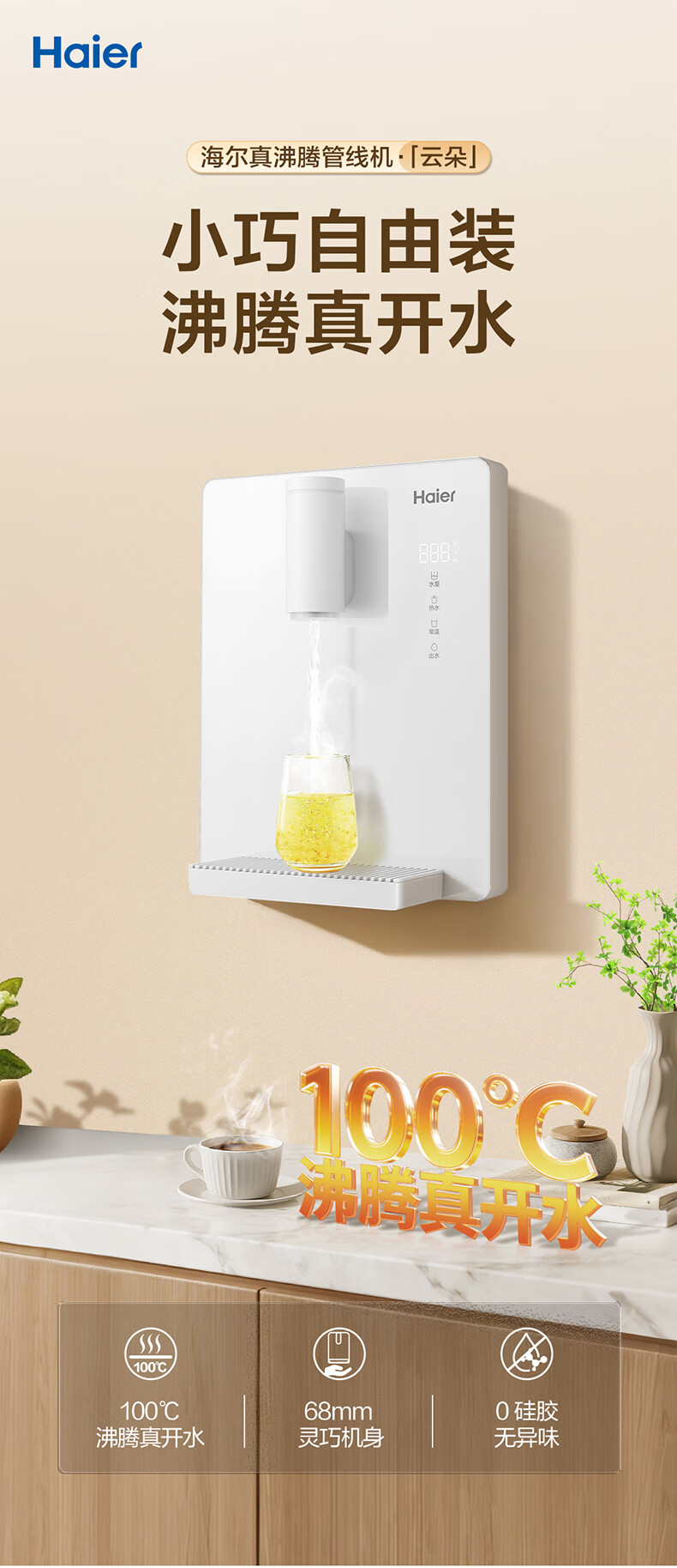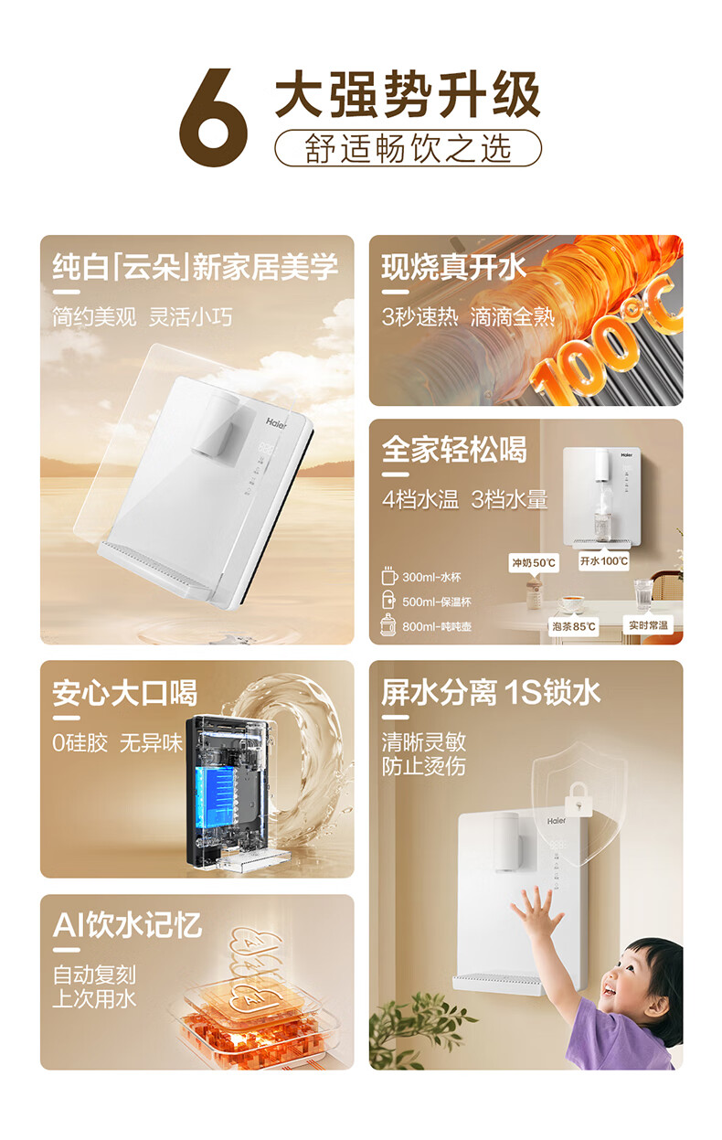 海尔(Haier)管线机云朵温热款壁挂式净水器伴侣100%真沸腾0硅胶管路0异味饮水机直饮机HGRZ2312