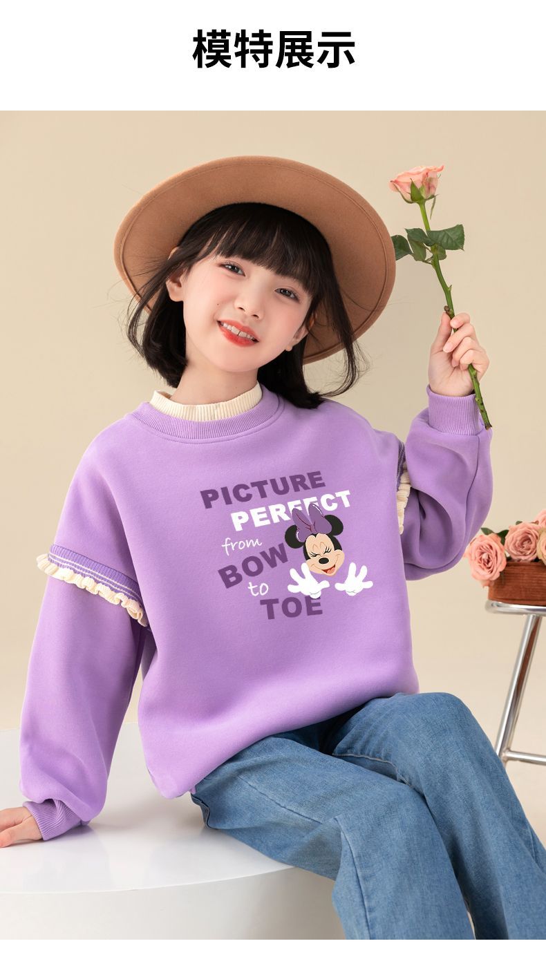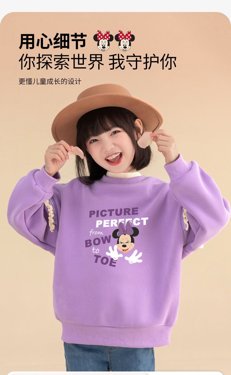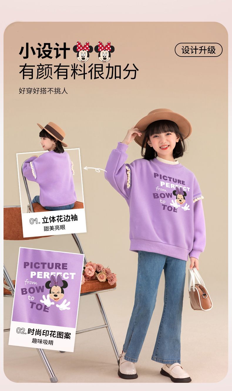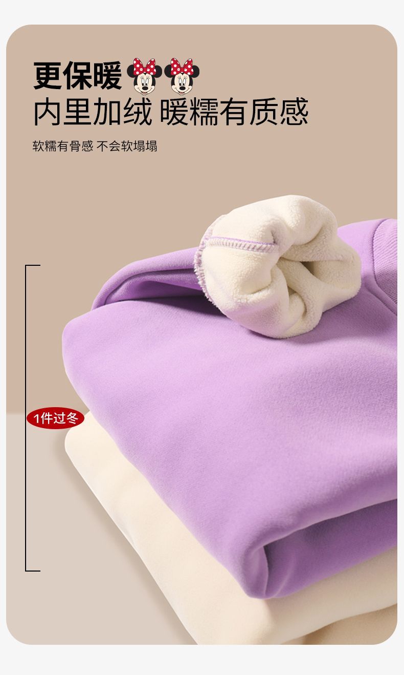 迪士尼女童冬季卫衣加绒新款洋气保暖儿童卫衣女孩中大童外穿冬装