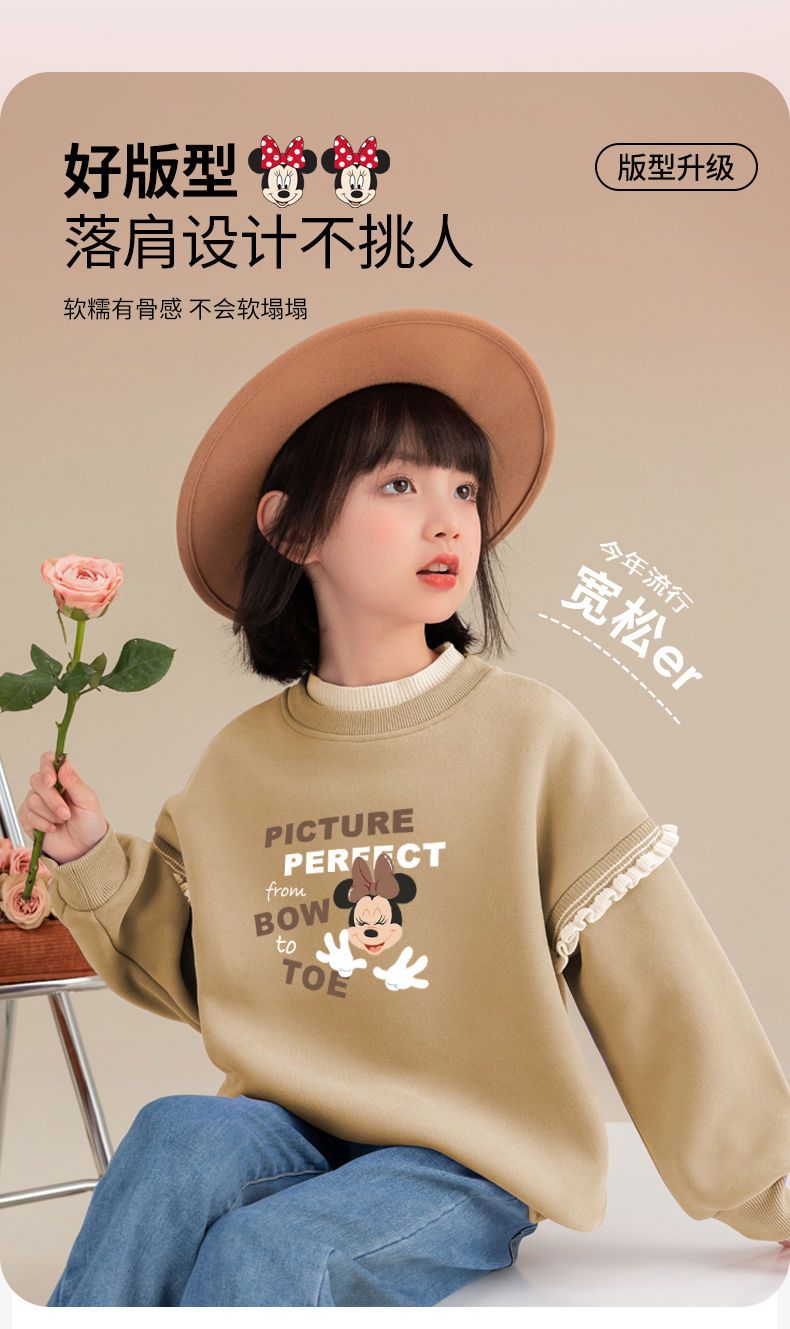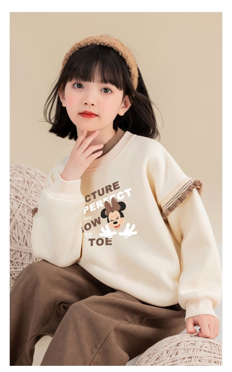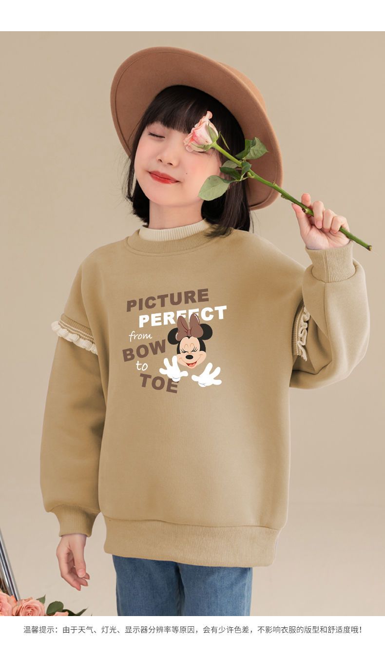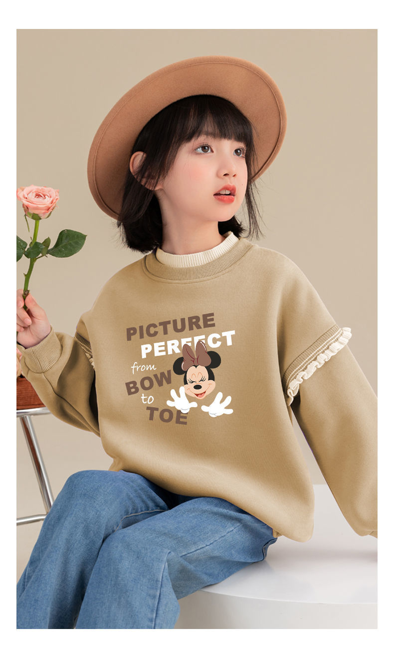 迪士尼女童冬季卫衣加绒新款洋气保暖儿童卫衣女孩中大童外穿冬装