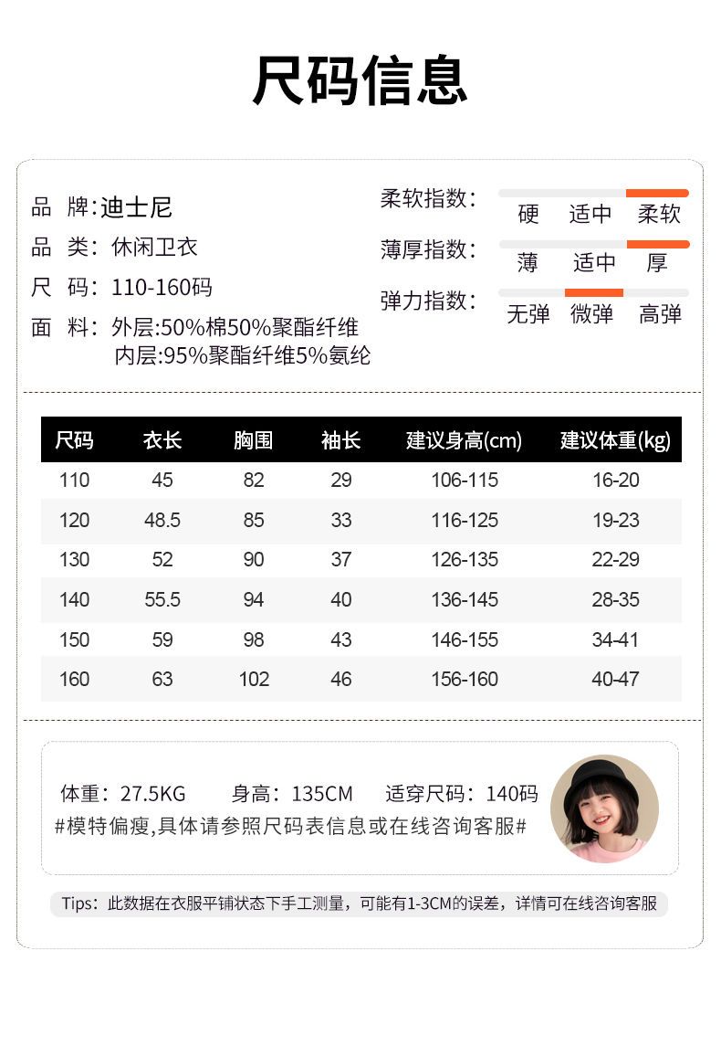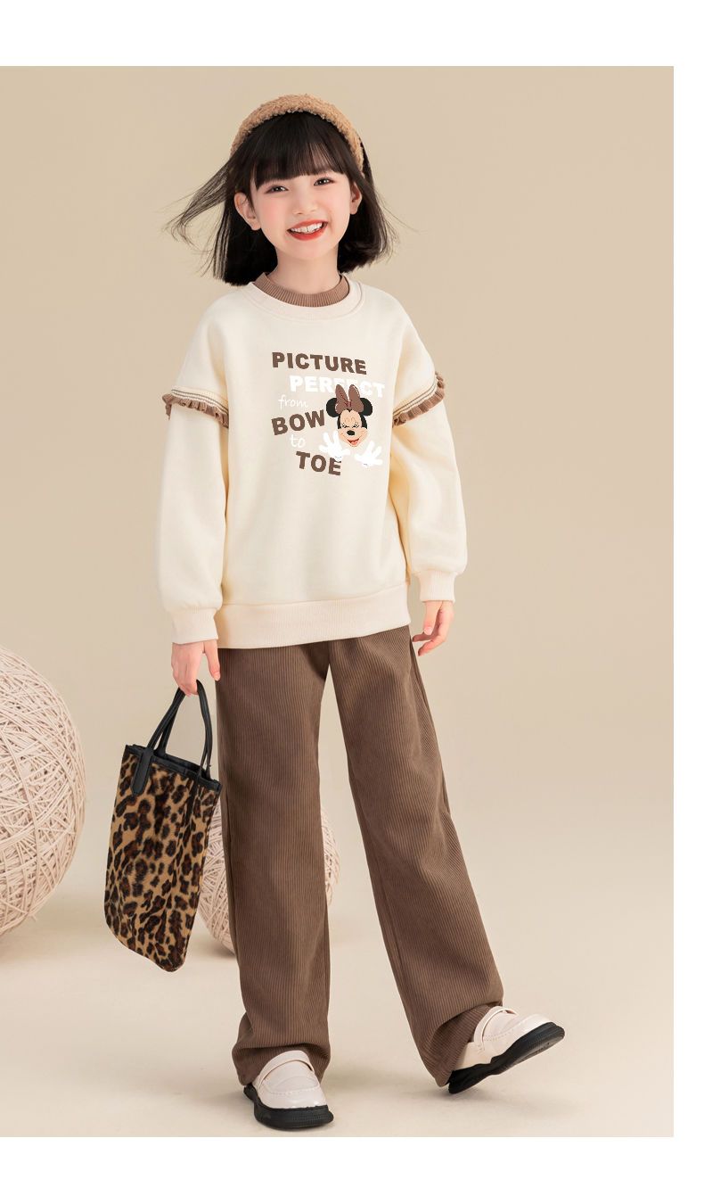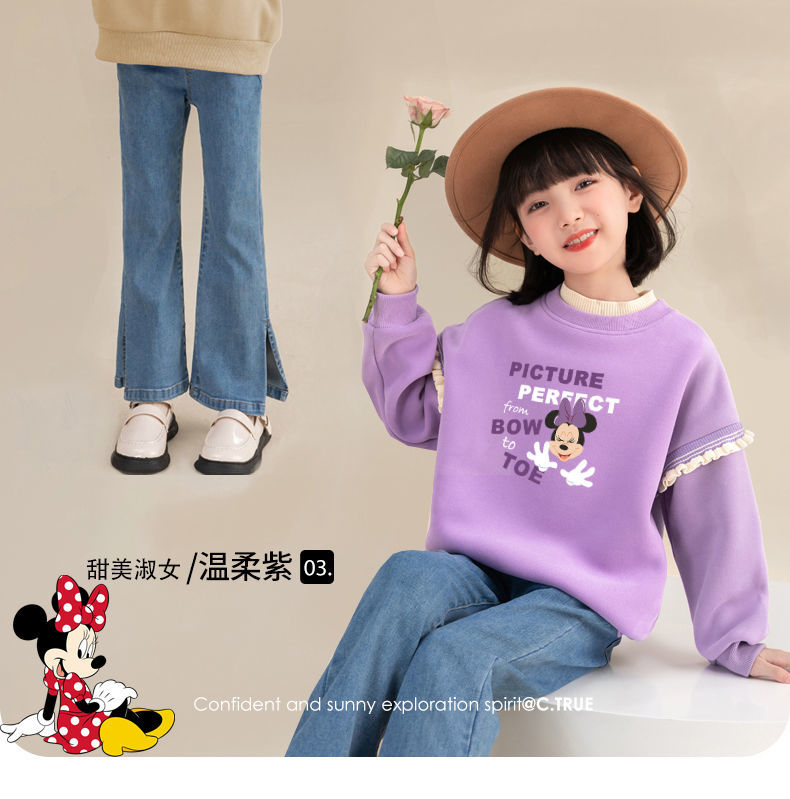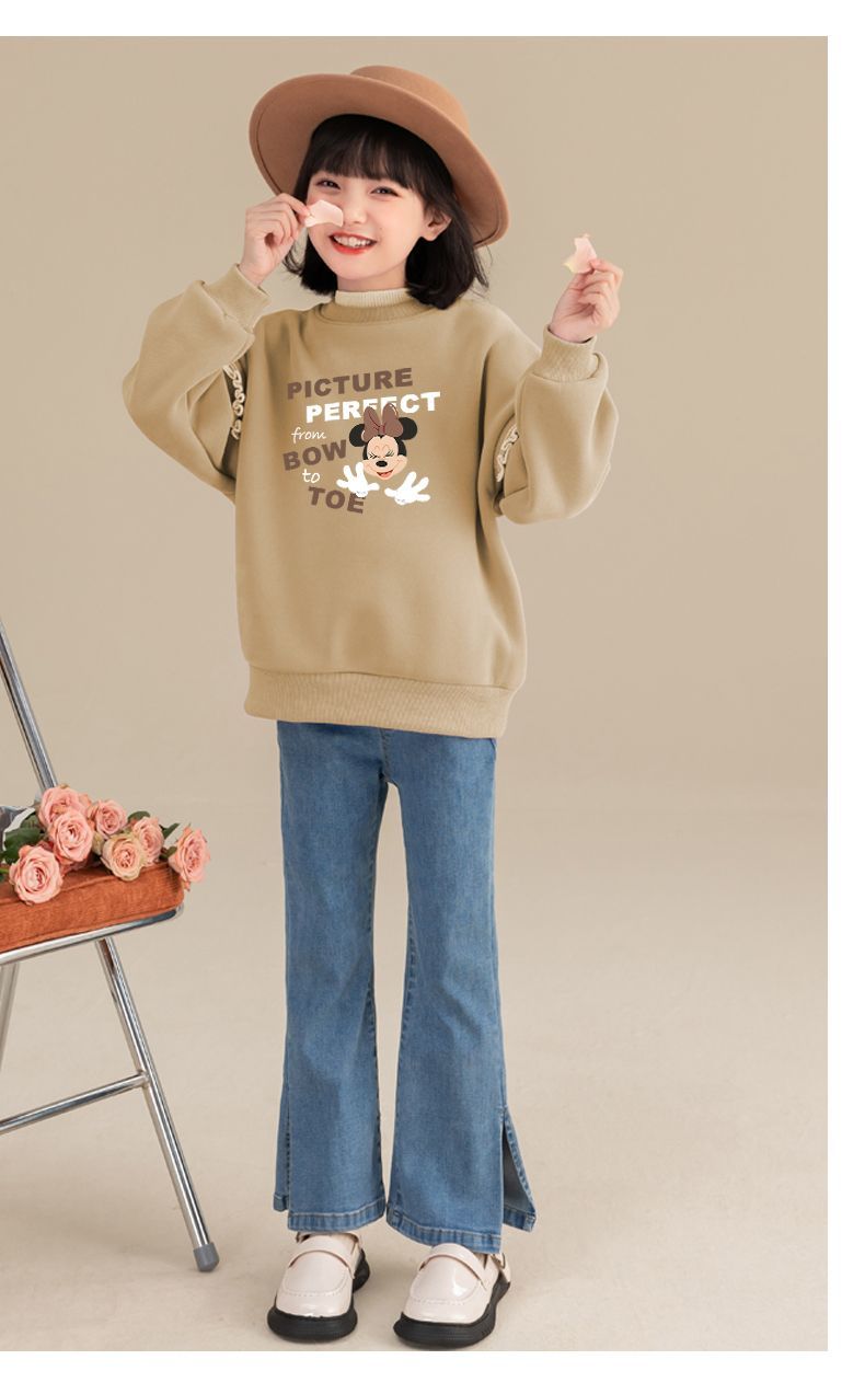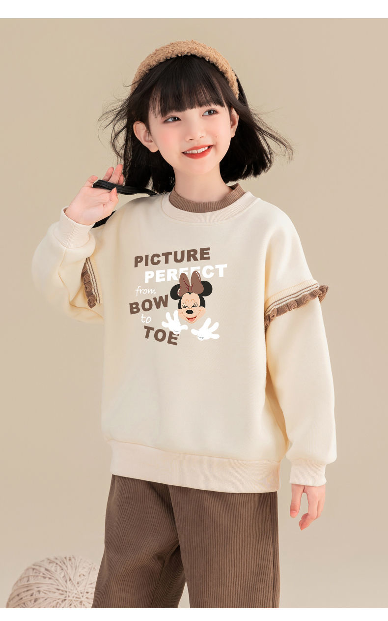迪士尼女童冬季卫衣加绒新款洋气保暖儿童卫衣女孩中大童外穿冬装