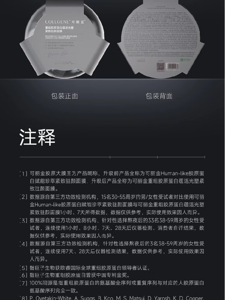 可丽金重组胶原蛋白蕴活光塑紧致驻颜面膜 3g*20杯/盒(大魔王 3.0版)