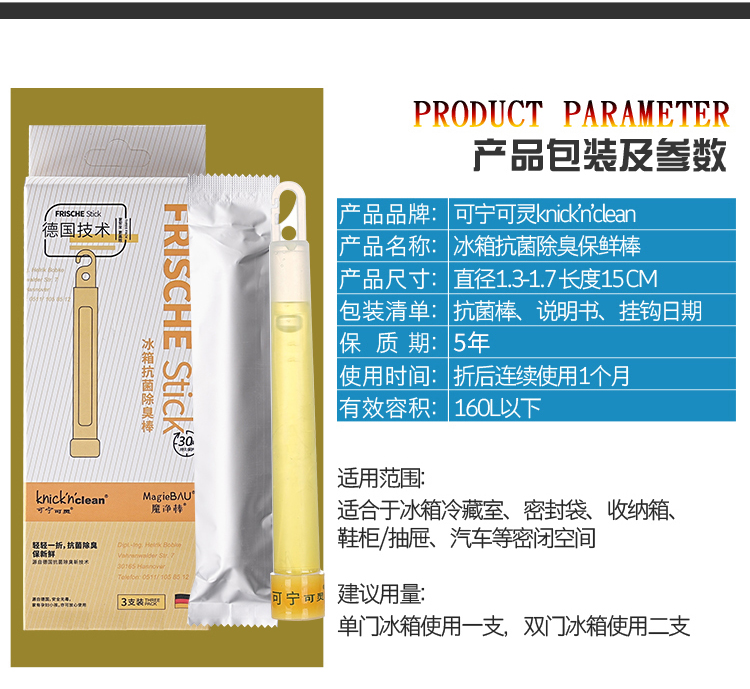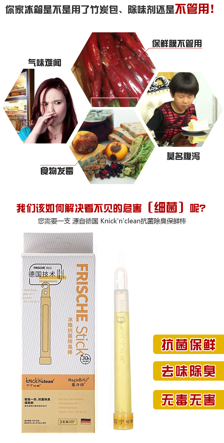 【德国专利技术 30天持久保鲜】德国可宁可灵KNICK'N'CLEAN保鲜棒 消除异味