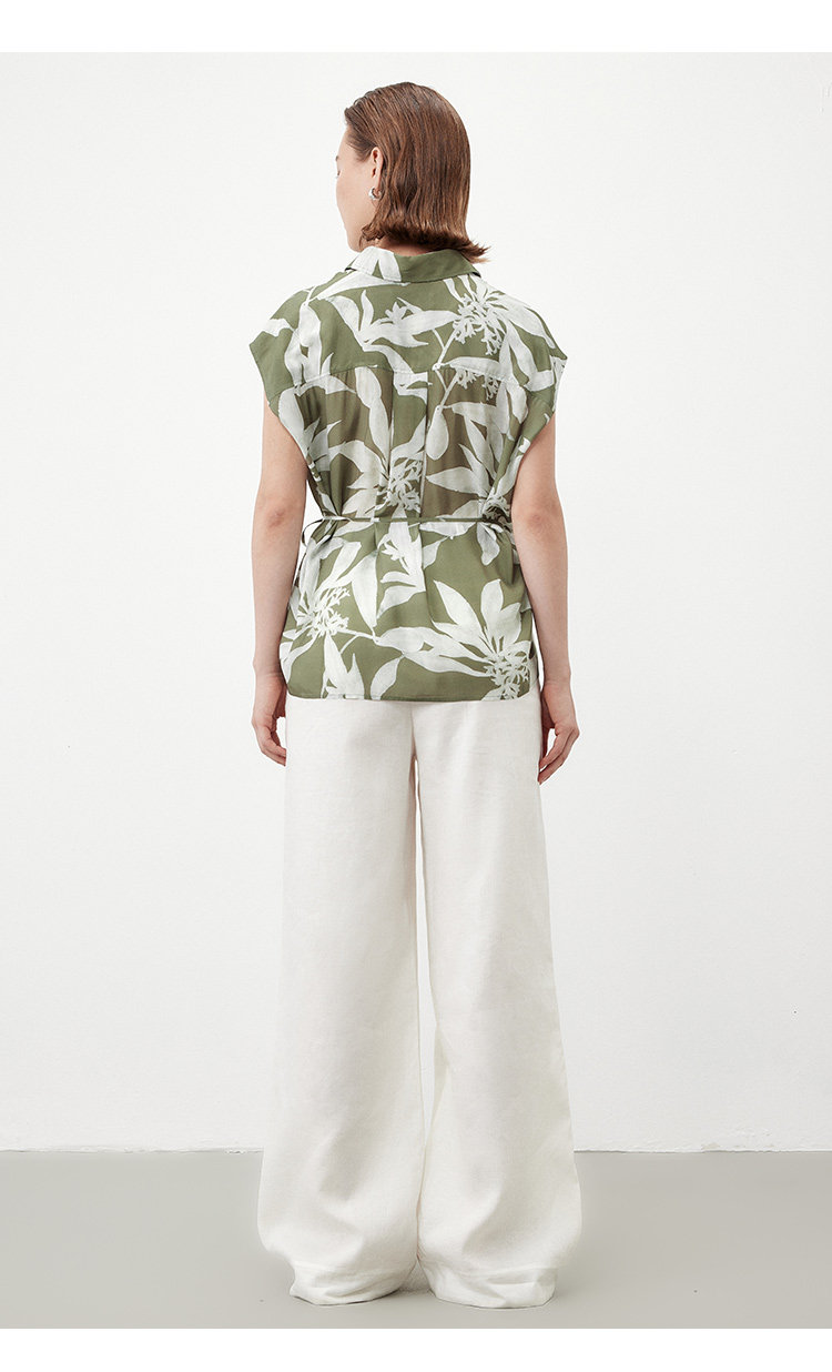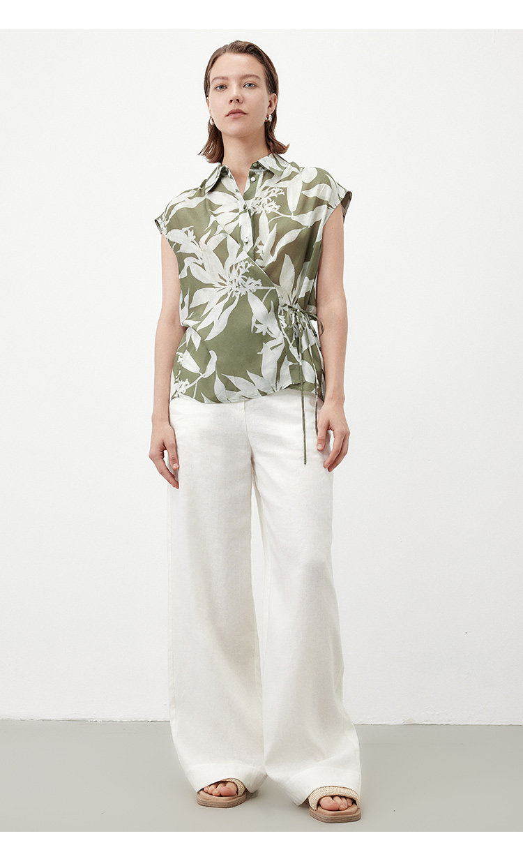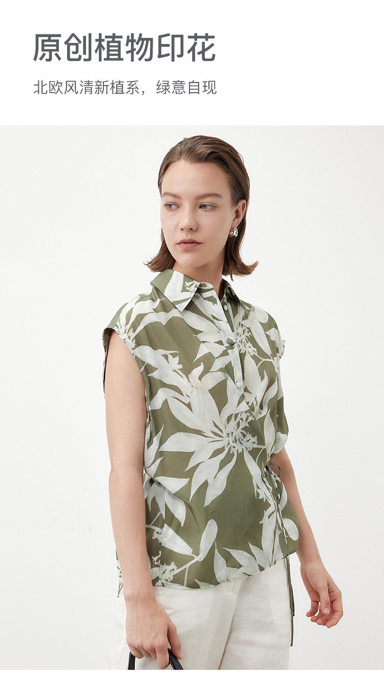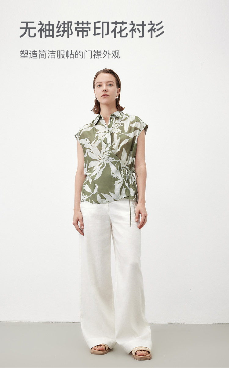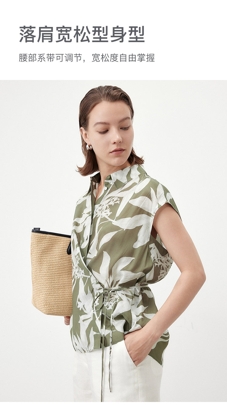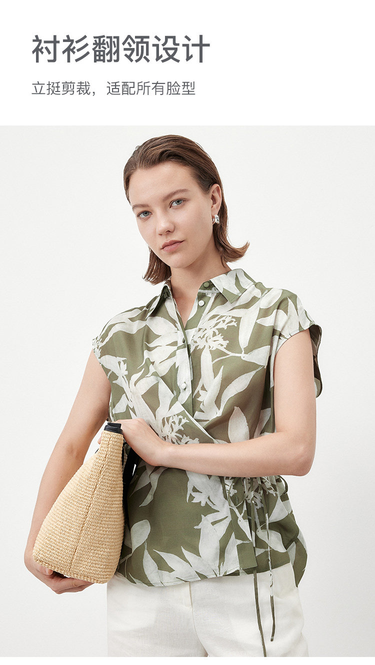 Marc O'Polo/MOP夏季新款好看气质设计感无袖绑带印花衬衫女上衣