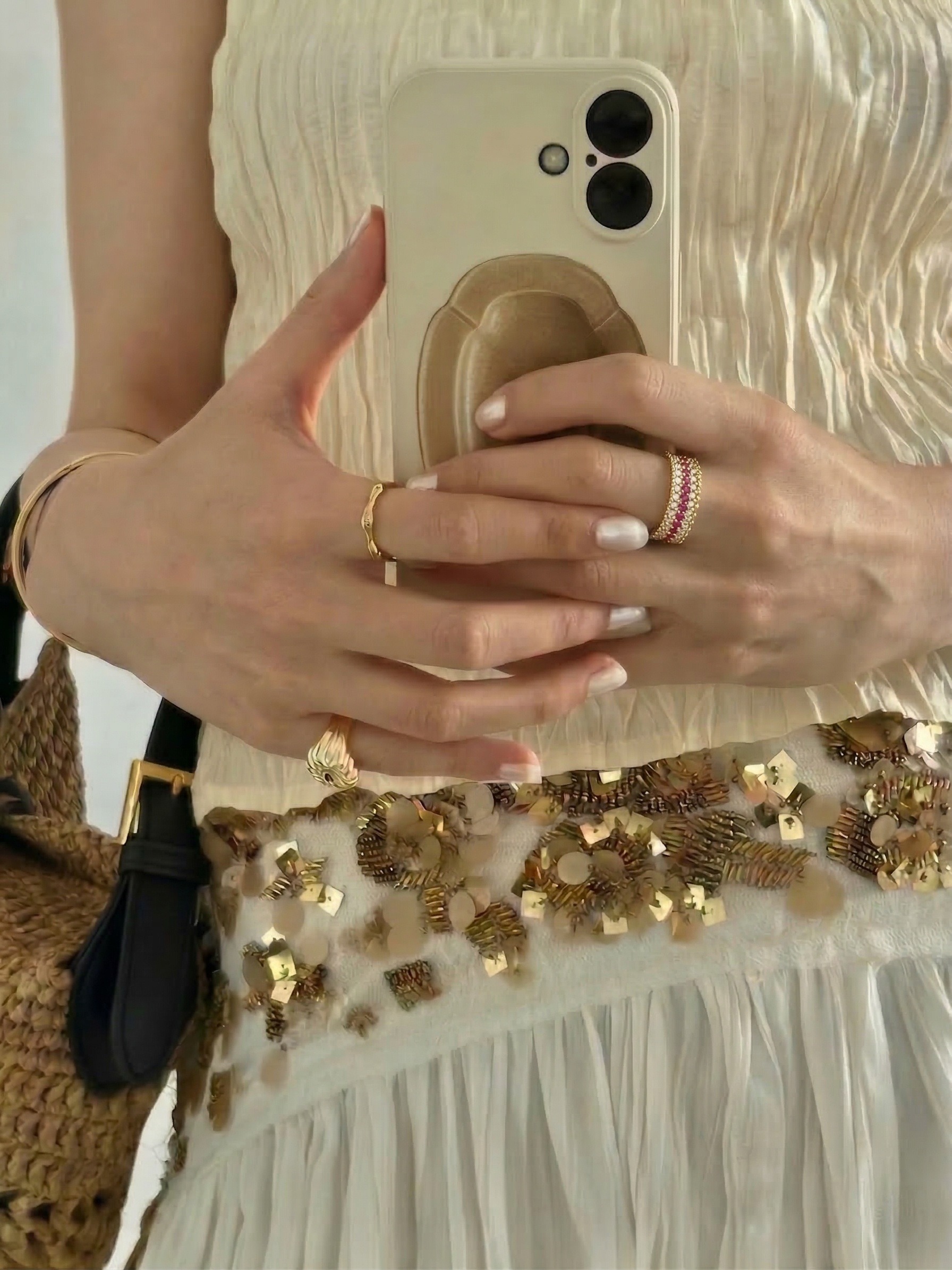 外层的镀金我们也赋予了匠心,每一件作品分别需要镀金三次,每次的镀金都有着不一样的目标,但是最终,都是为了成就戴在指尖,腕上,饰于胸前,伏于耳畔那片闪闪发光的它们.