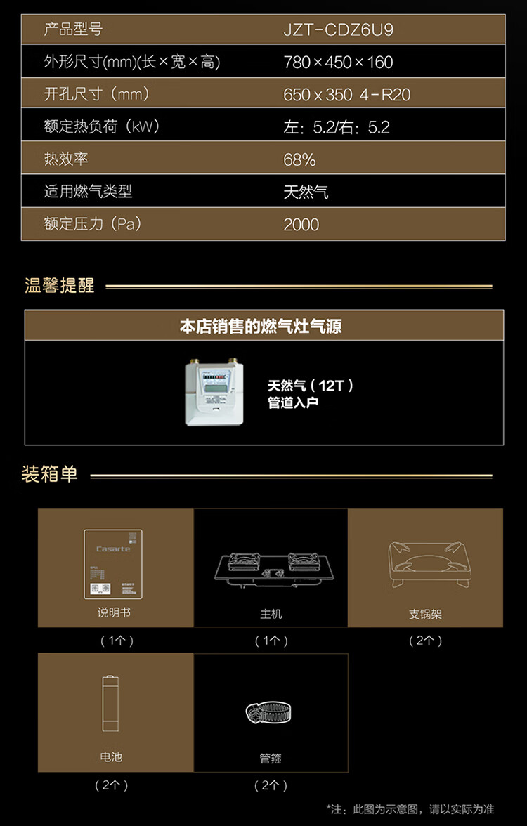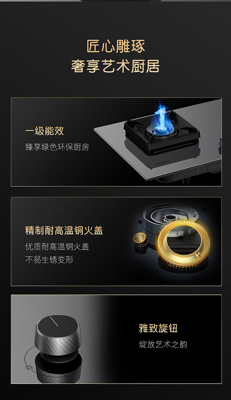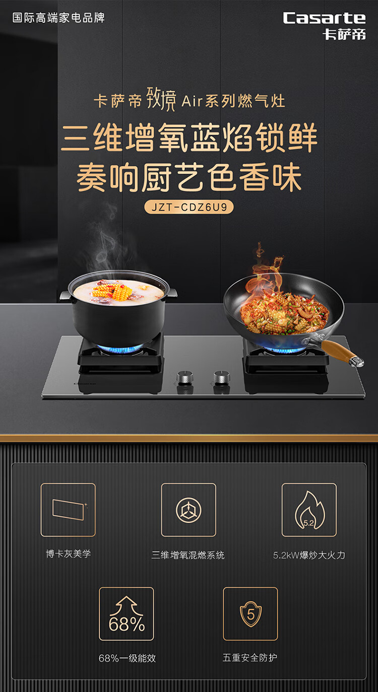 卡萨帝(Casarte)致境燃气灶 天然气灶家用 5.2kw大火力 蓝色烈焰 68%高热效 嵌入式台嵌两用CDZ6U9