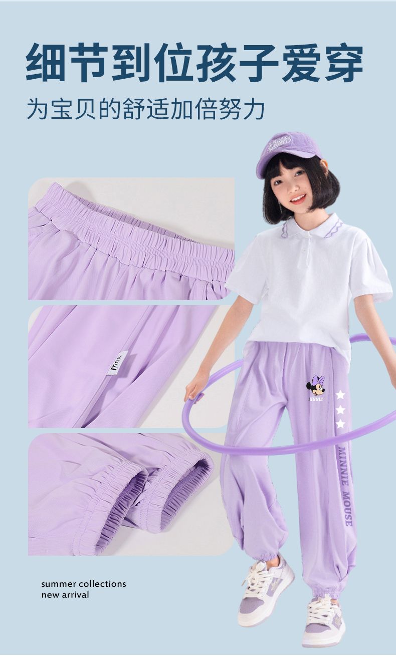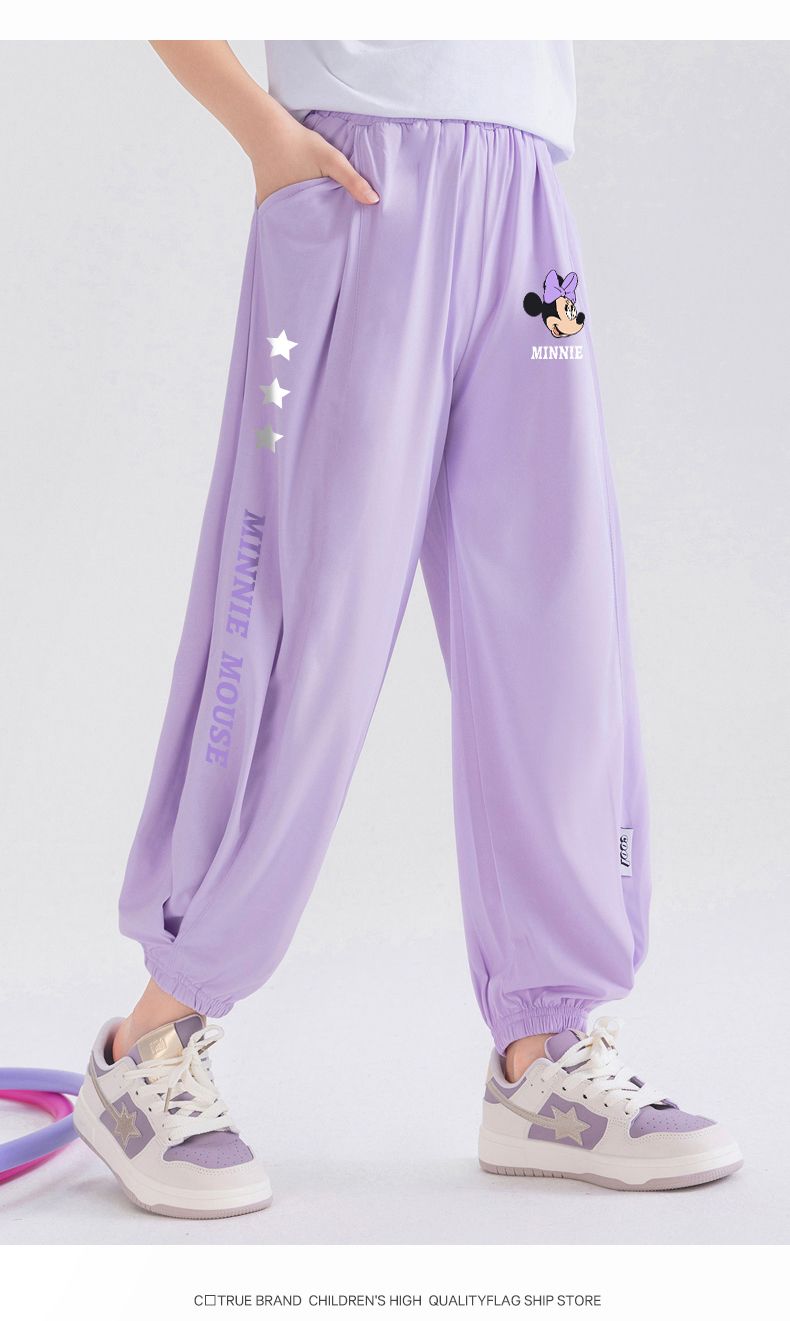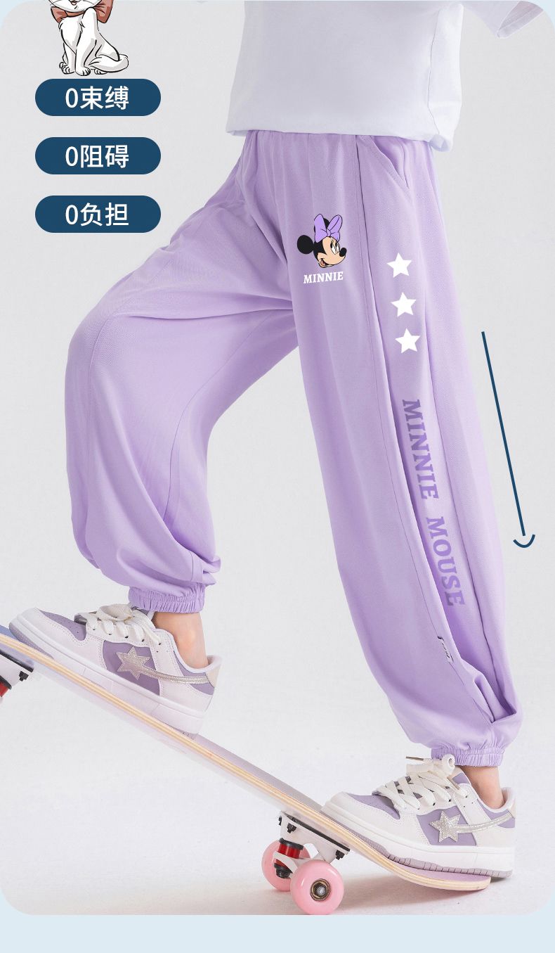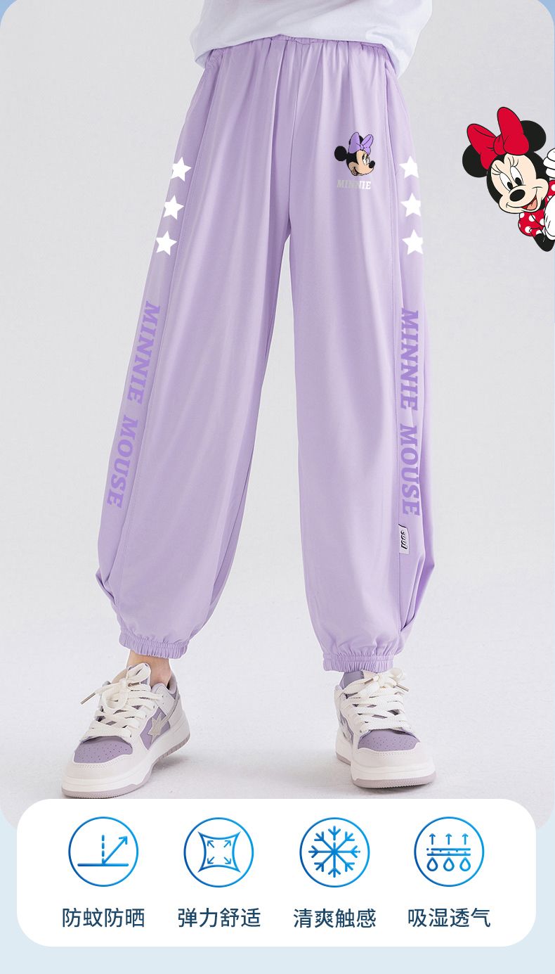 迪士尼女童裤子夏季薄款儿童防蚊裤2025新款女大童冰丝裤女孩长裤