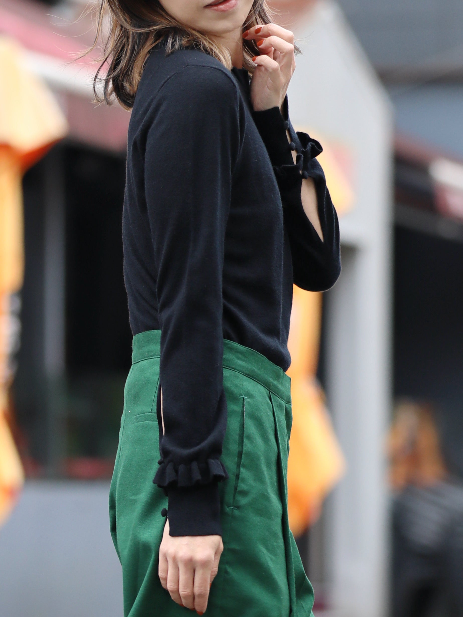 TYNVIE 荷叶边饰边袖口针织毛衣 - 黑色