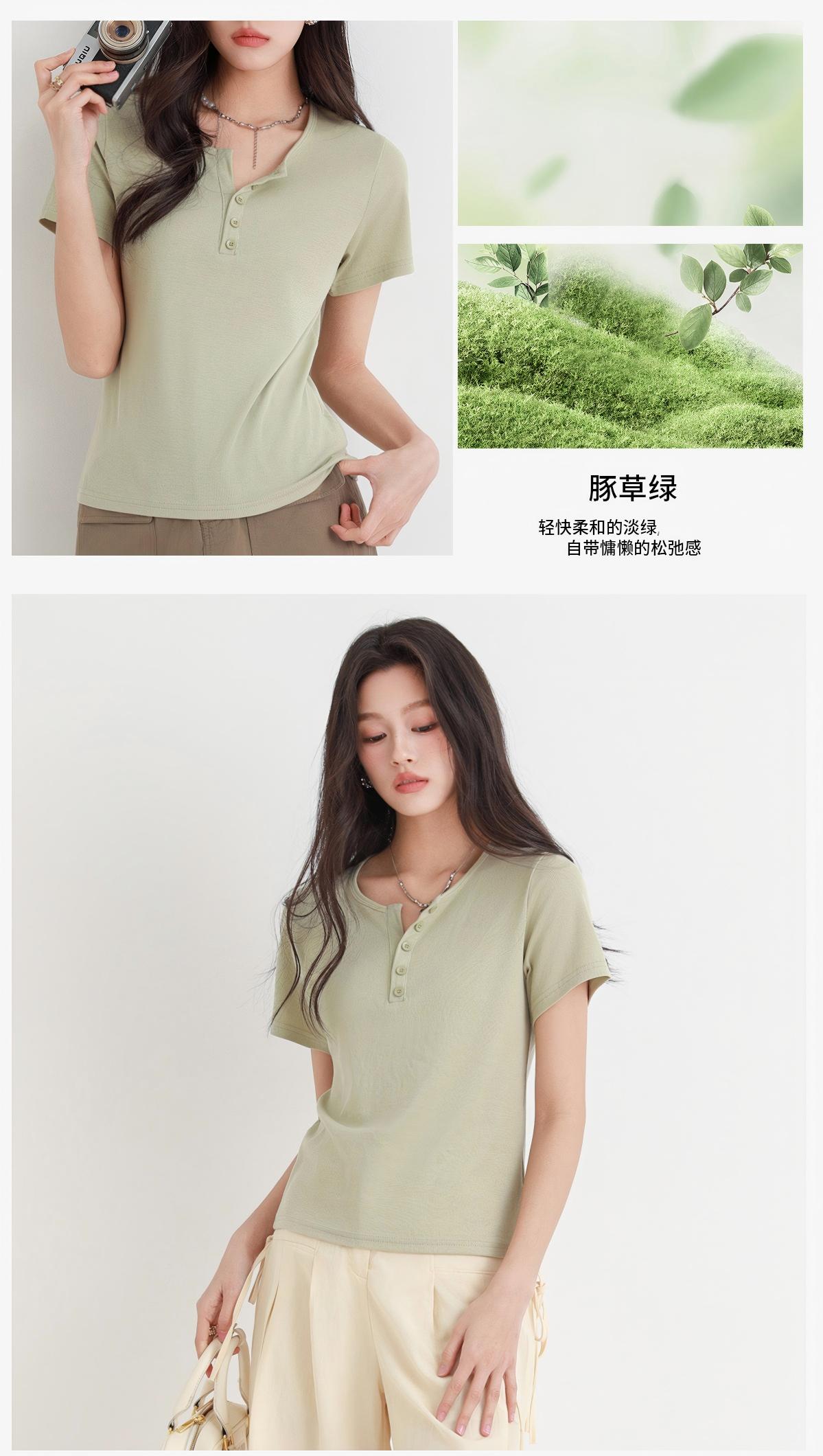 【解锁夏季新穿搭】DUBAILI亨利小U领T恤 97%莱赛尔面料 半开门设计不挑脸型 视觉显瘦 6色任选 轻松穿出高级感
