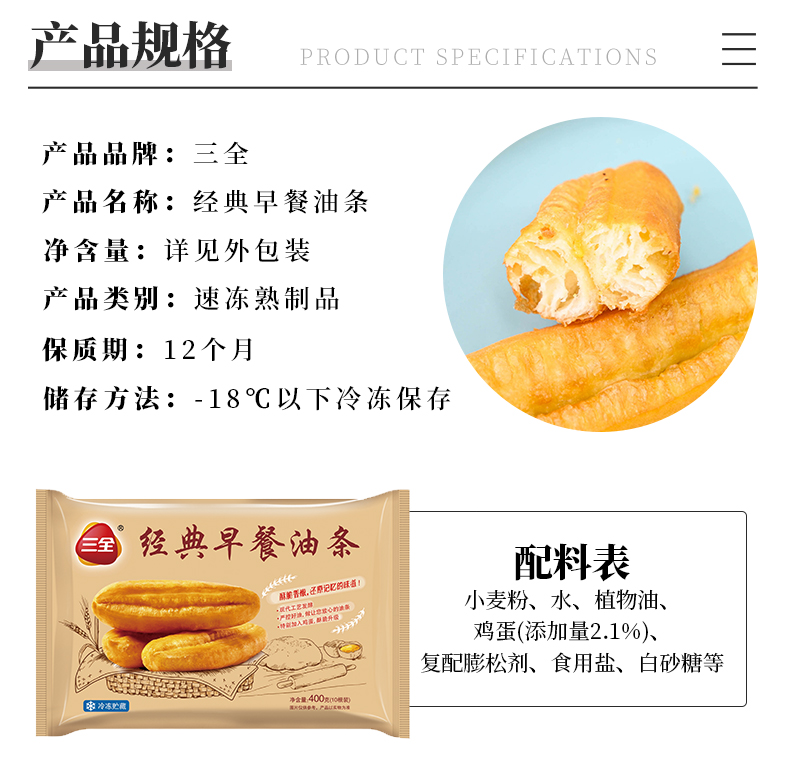【冷冻】三全 经典早餐油条 400g/袋 10根