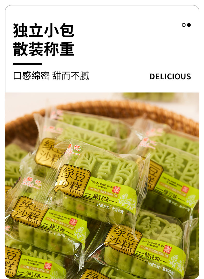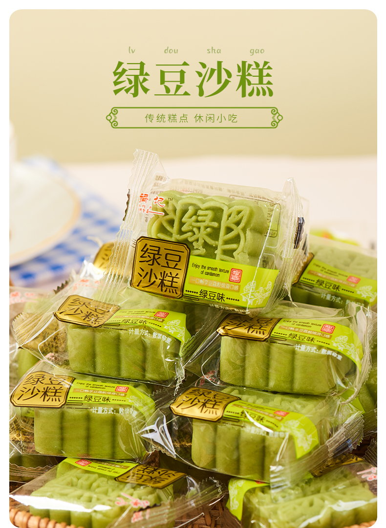 【传统手工糕点,中式绿豆沙糕】绿豆糕中式老式传统糕点,浓郁豆香软糯香甜,细腻清香入口即化,湖南特产零食办公室甜点心早餐饱饱腹解馋QQ