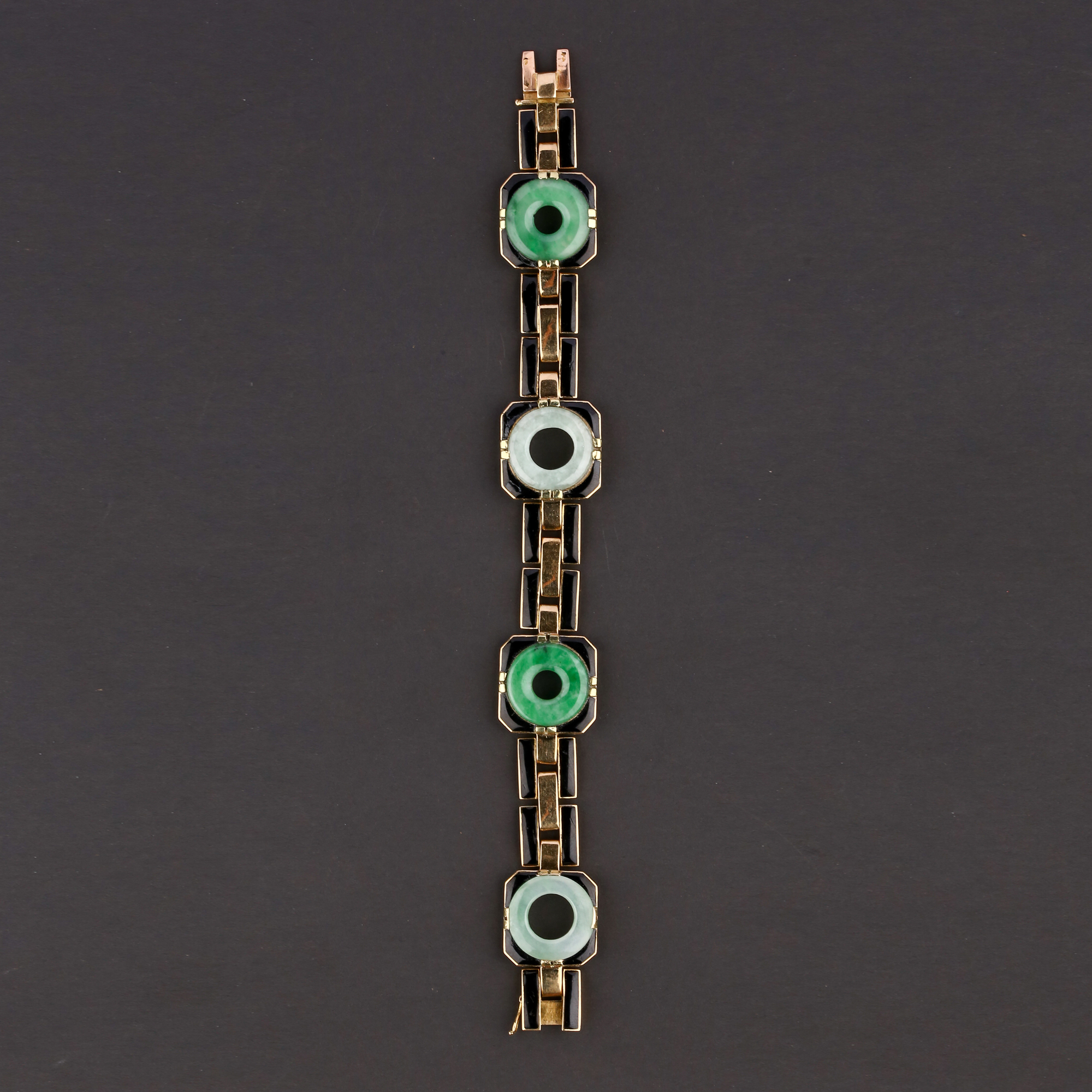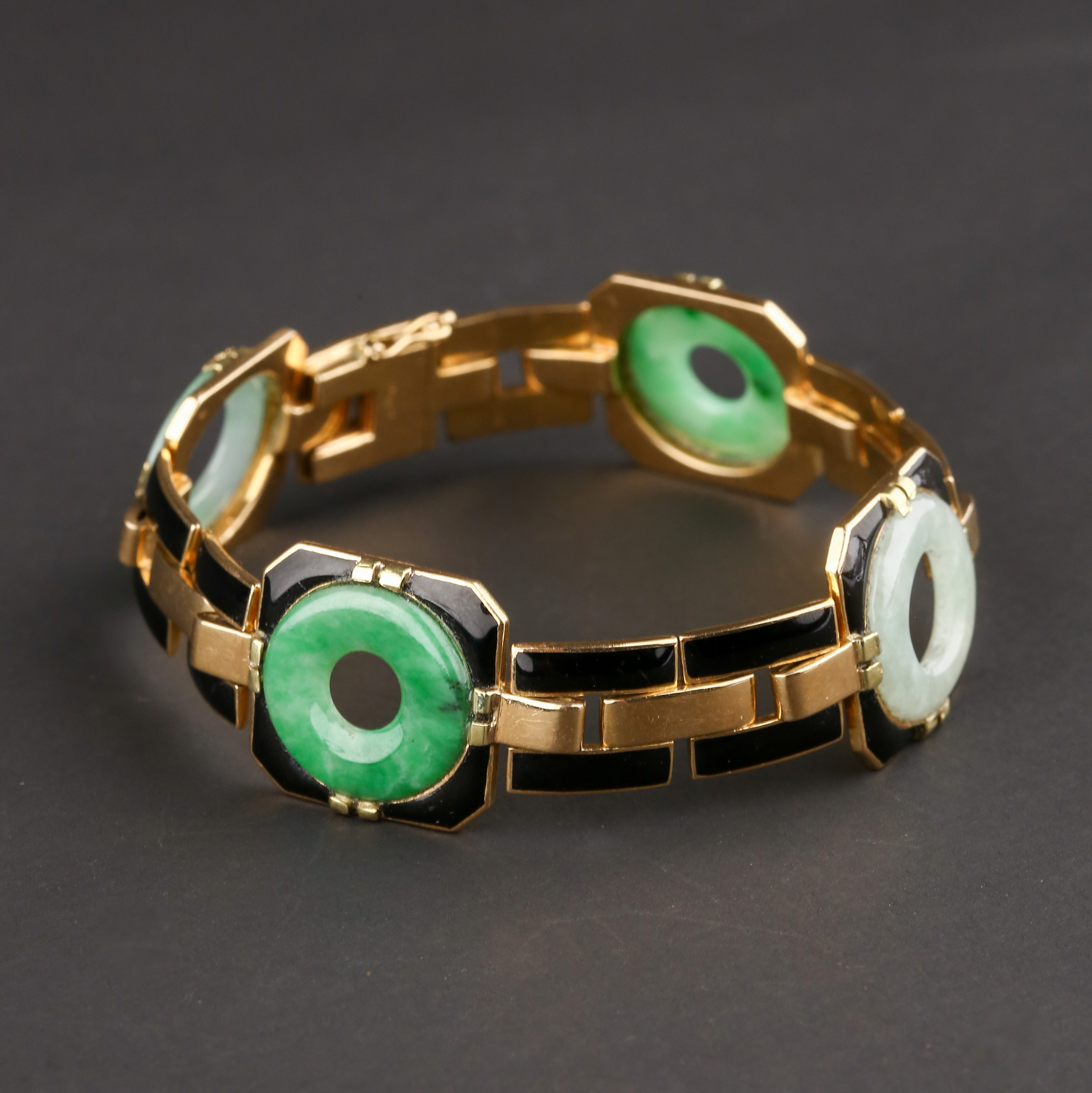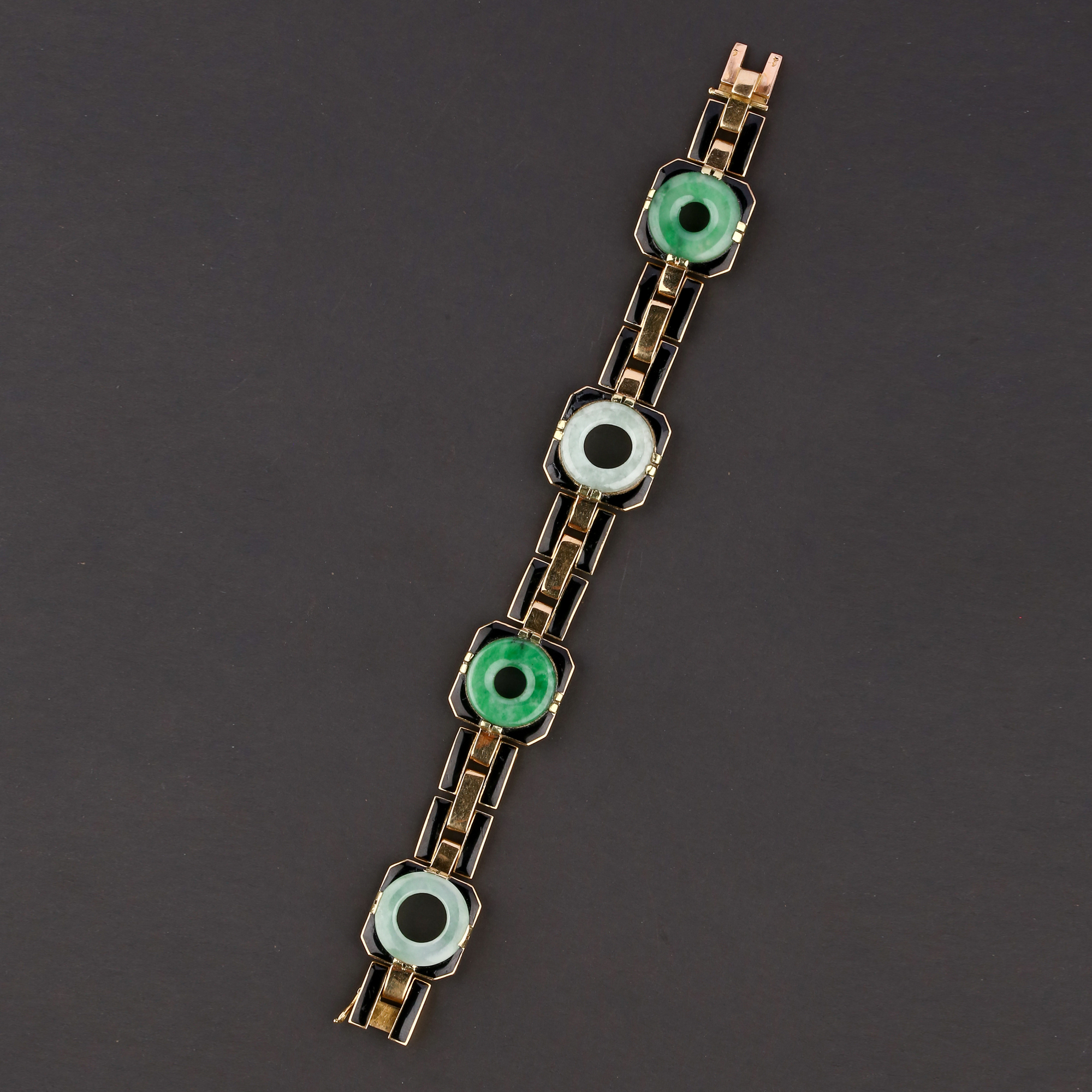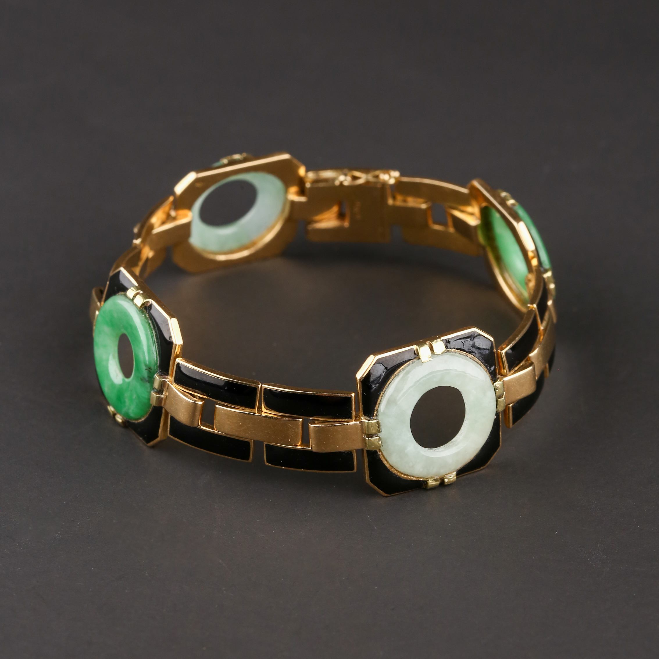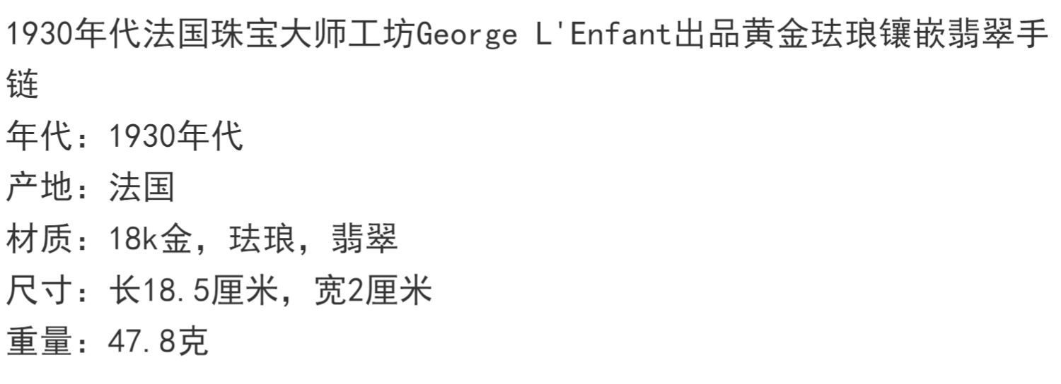 独角鹿西洋古董法国工坊George L'Enfant黄金珐琅镶嵌翡翠手链
