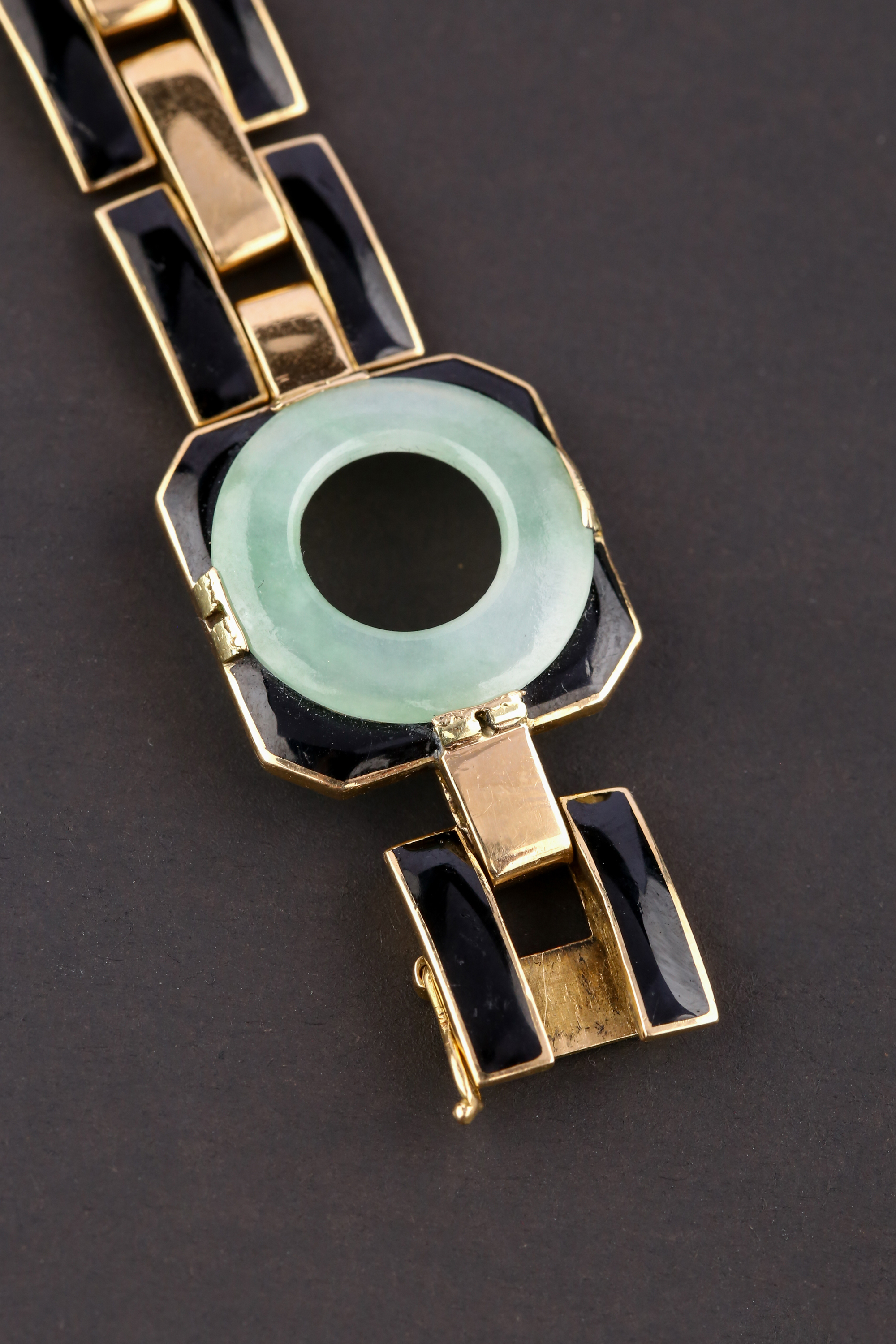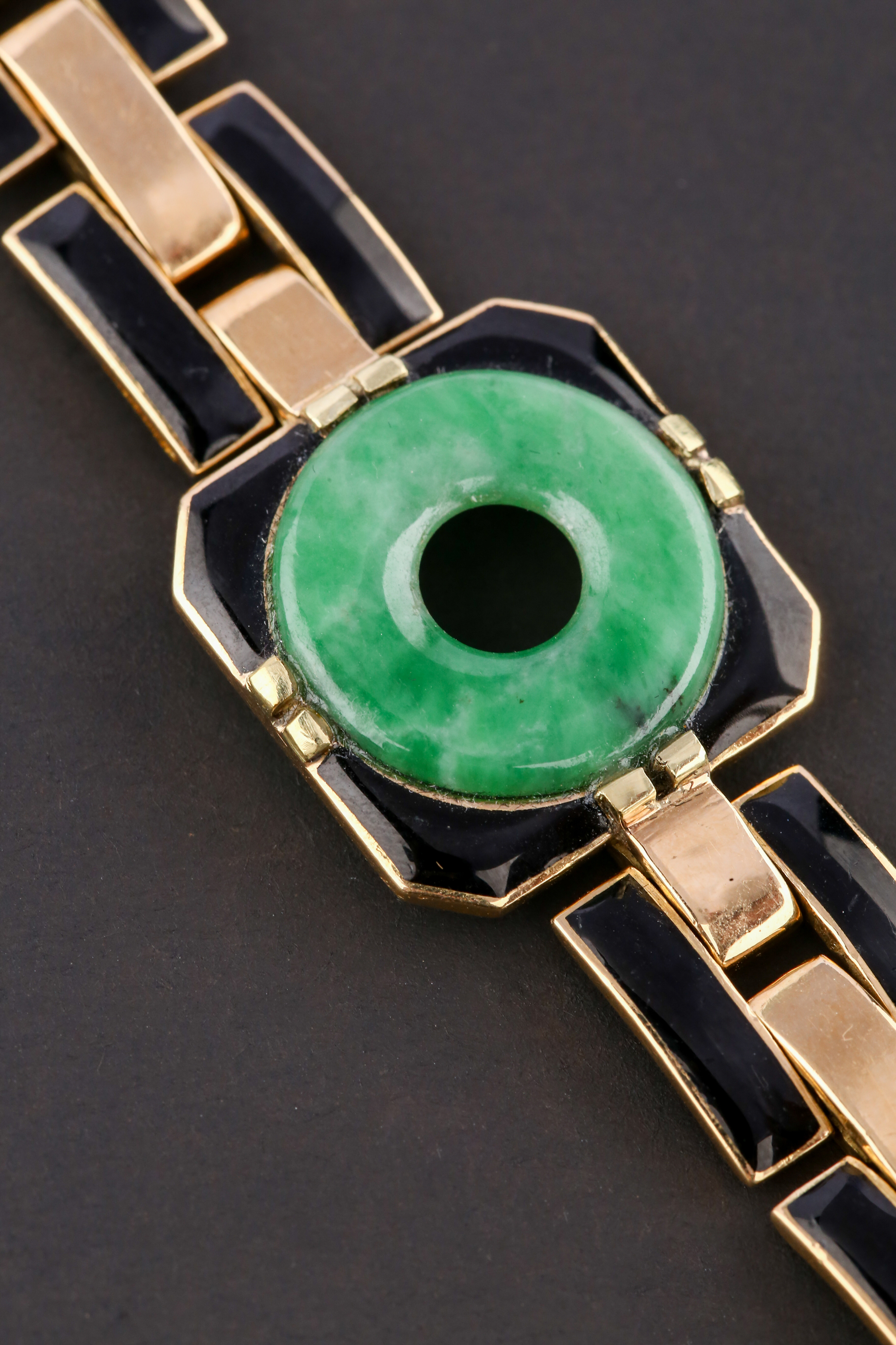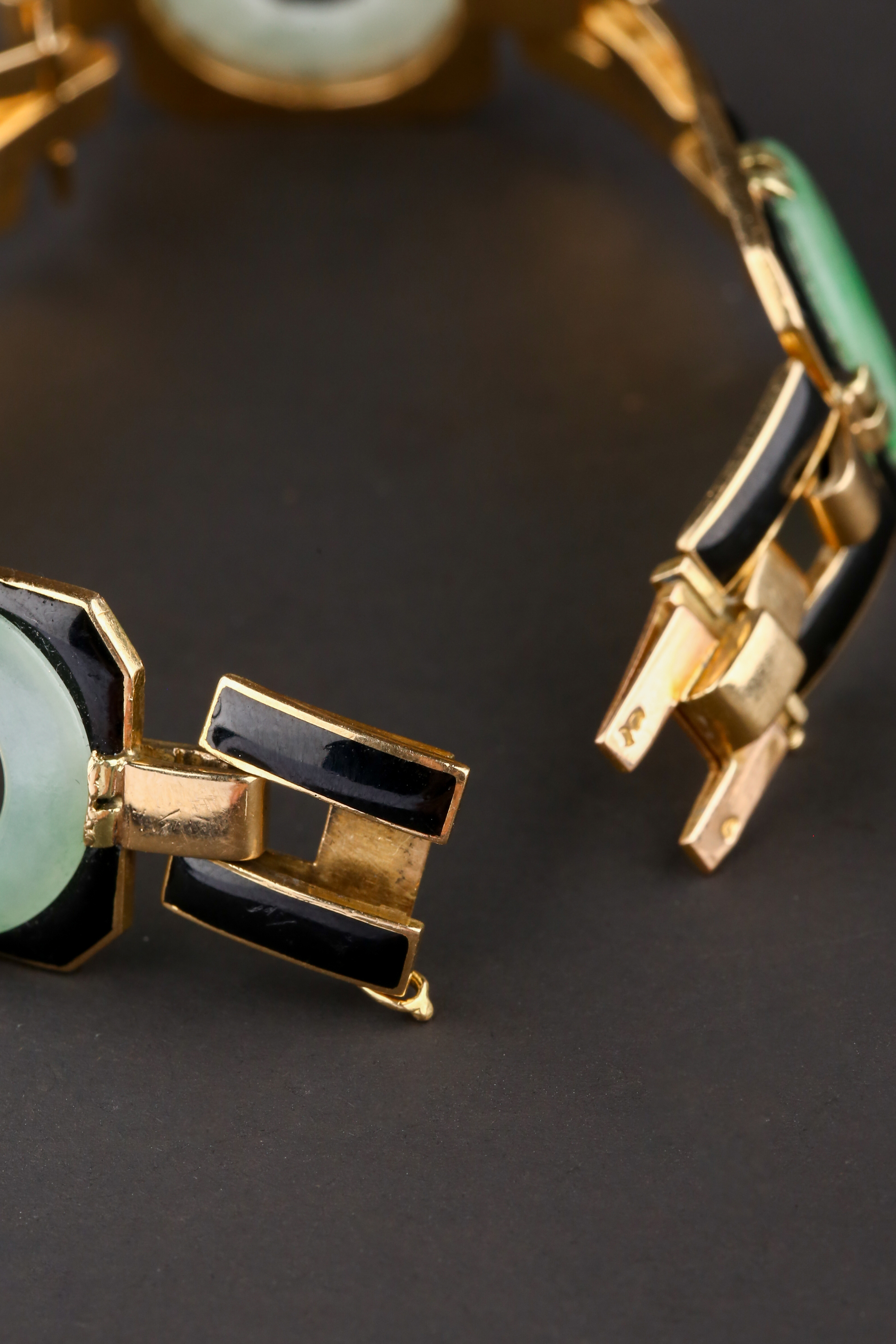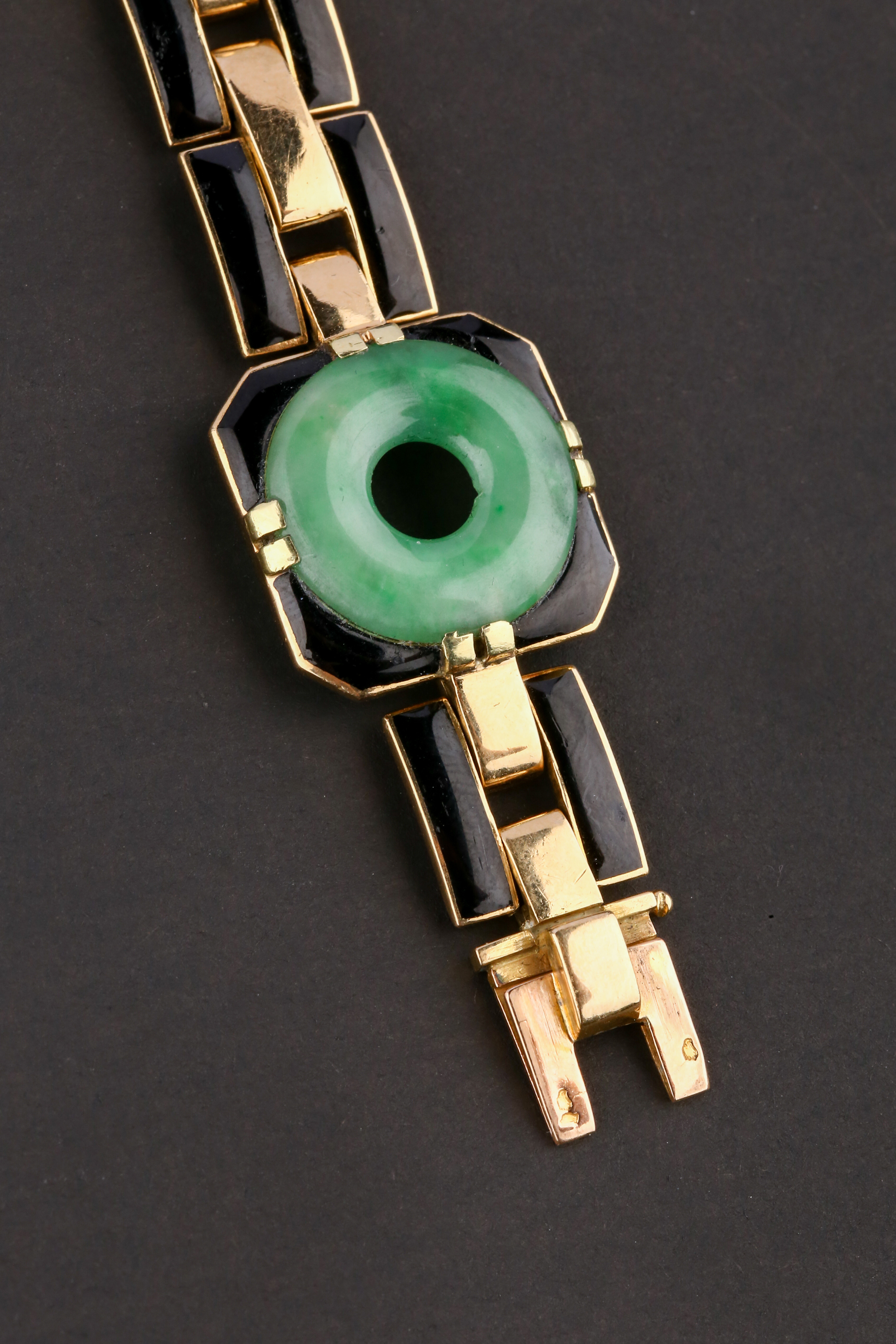 独角鹿西洋古董法国工坊George L'Enfant黄金珐琅镶嵌翡翠手链