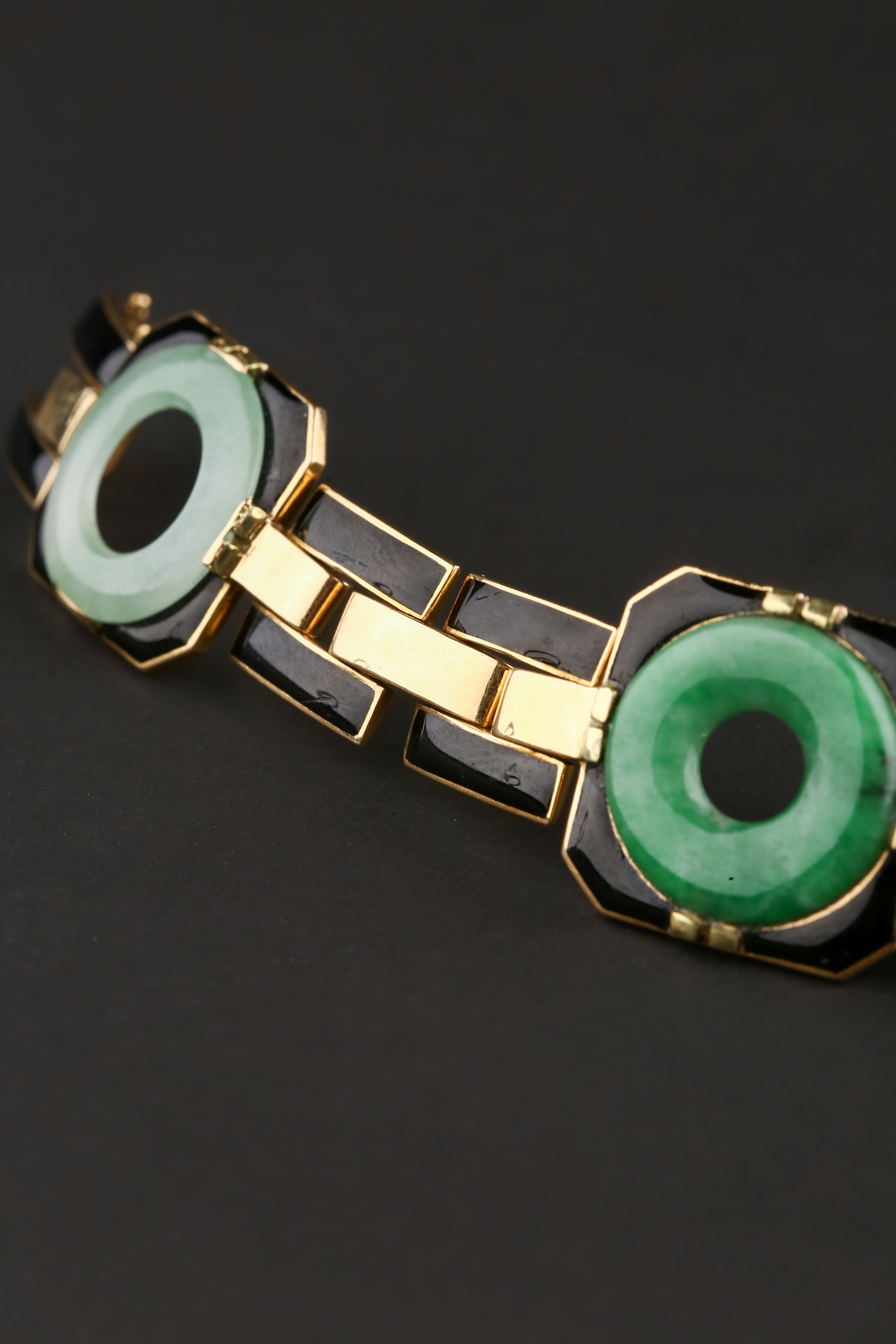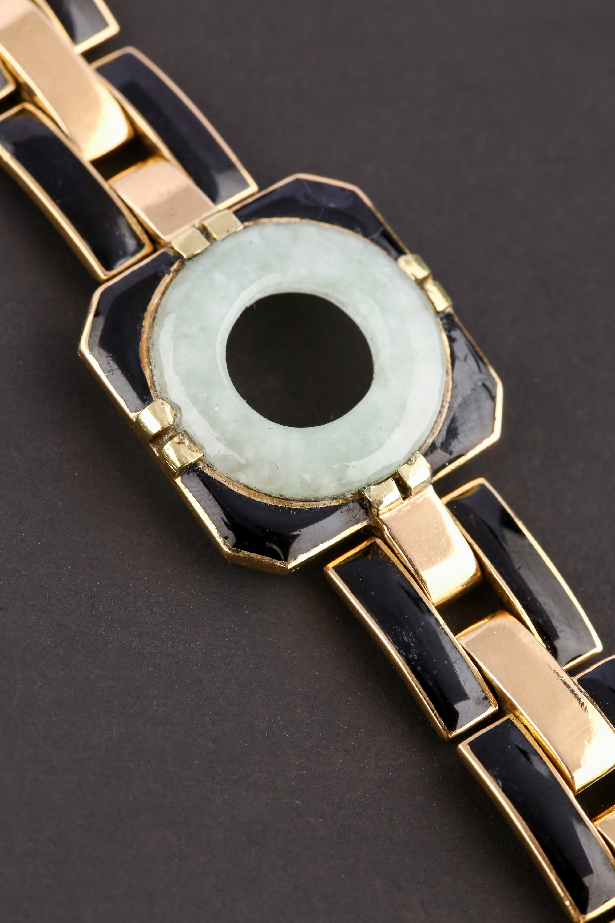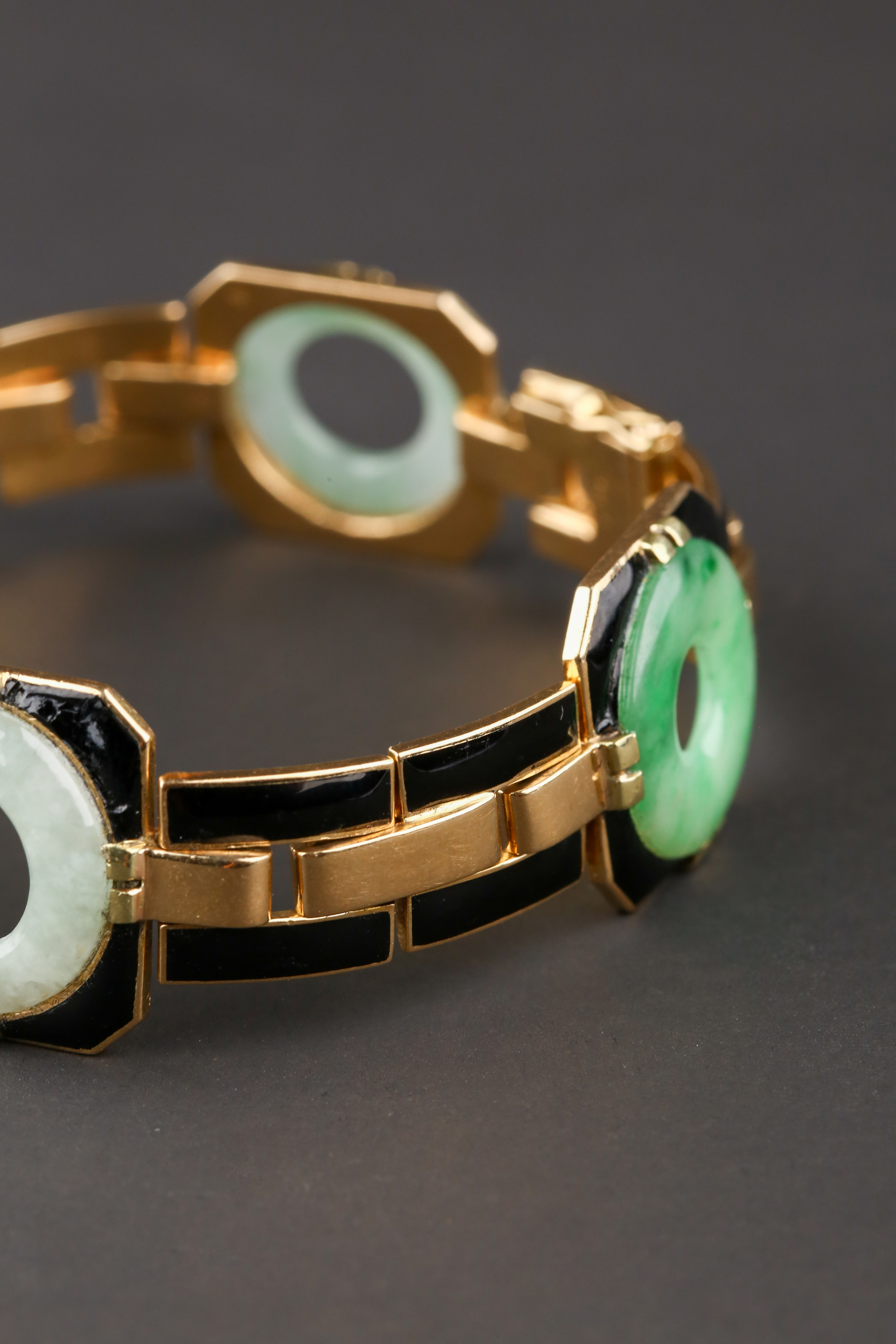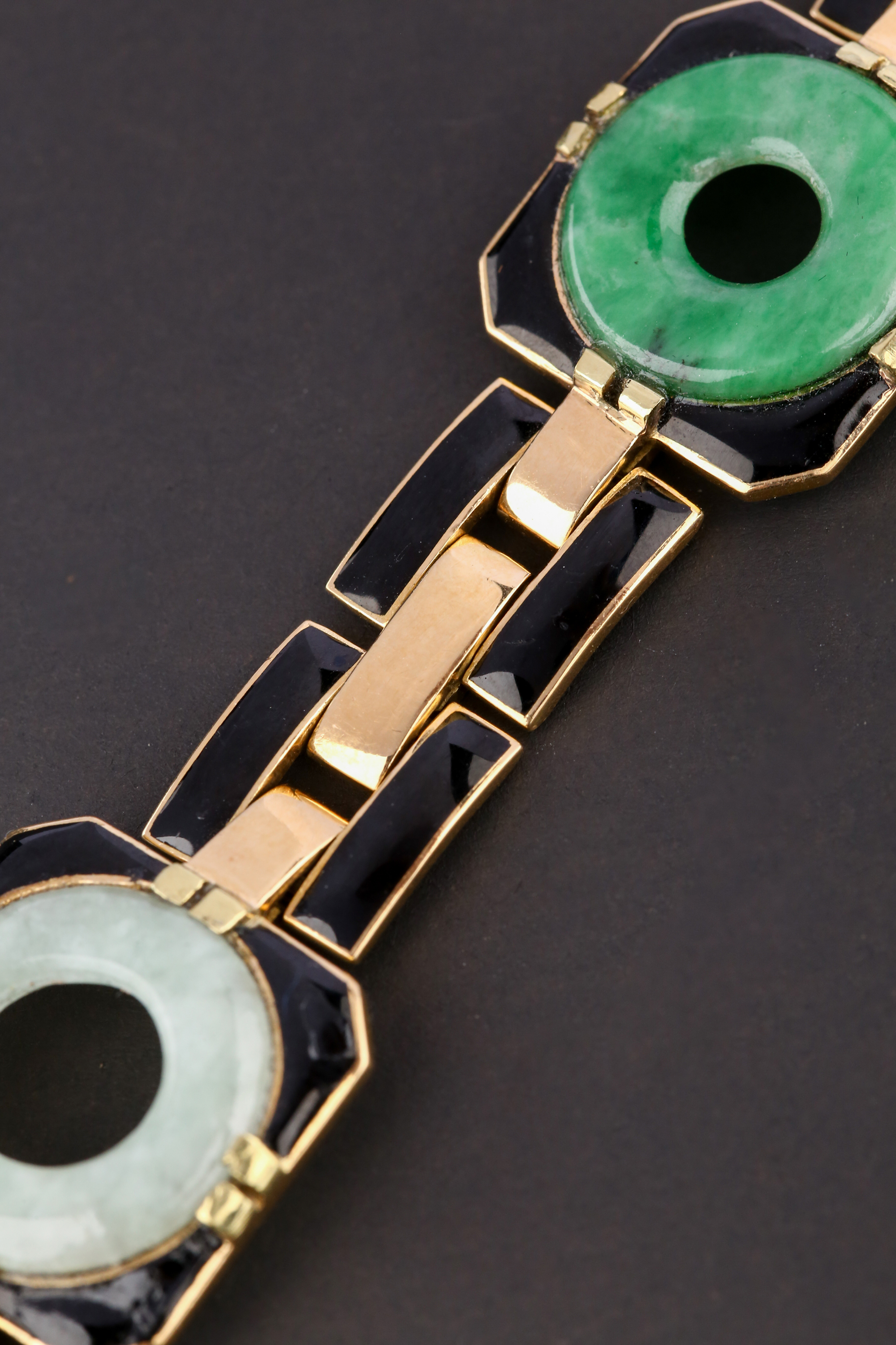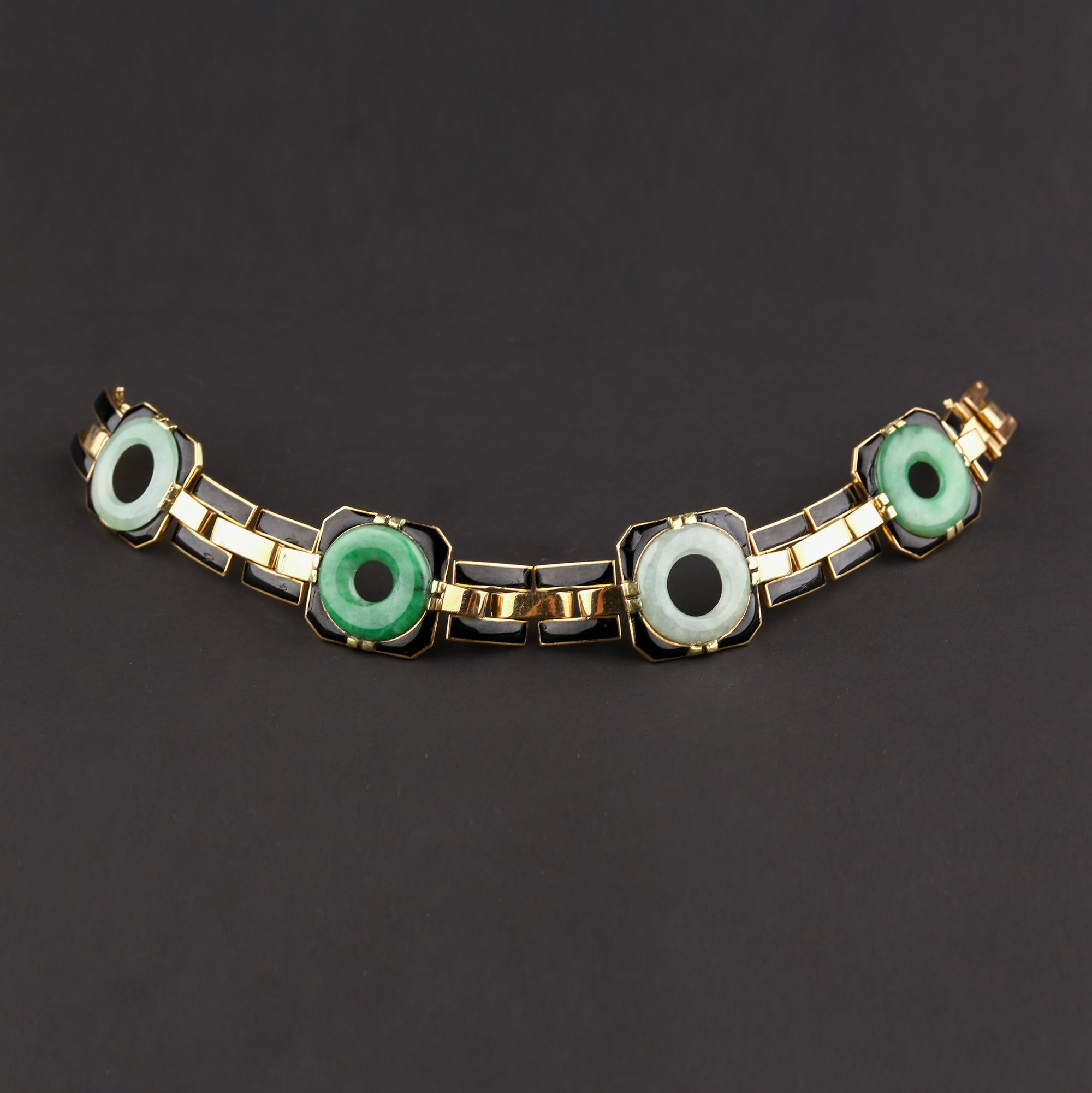 独角鹿西洋古董法国工坊George L'Enfant黄金珐琅镶嵌翡翠手链