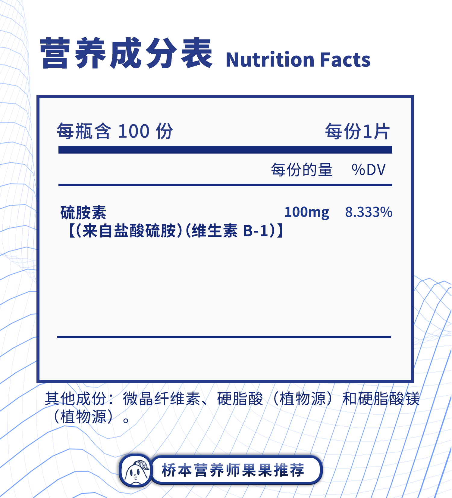保税仓NOW维生素B1硫胺素疲劳乏力脑雾神经100mg牛油果果桥本