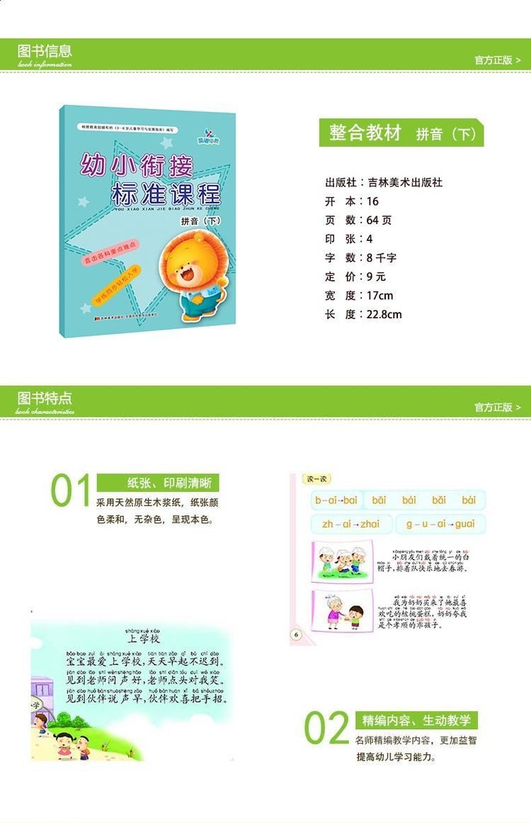幼小衔接标准课程拼音(下) 大班升一年级学习汉语拼音aoe单韵母声母整体认读音节拼音书学前班 幼儿园拼音练习习题册3-5-6-7-8岁