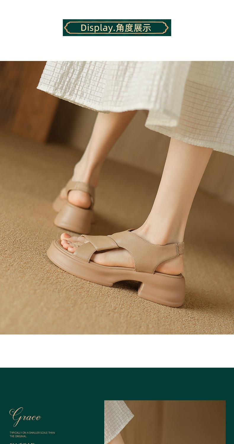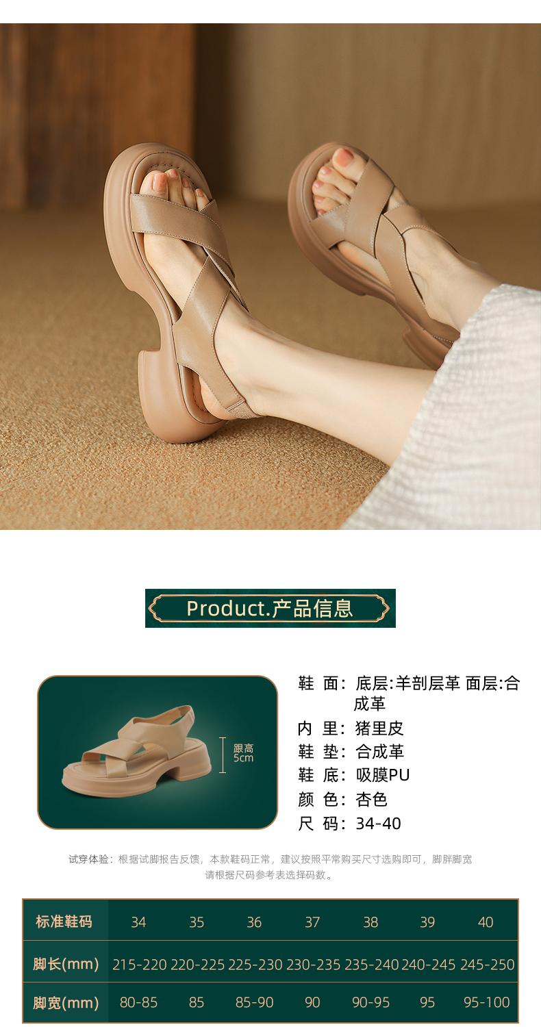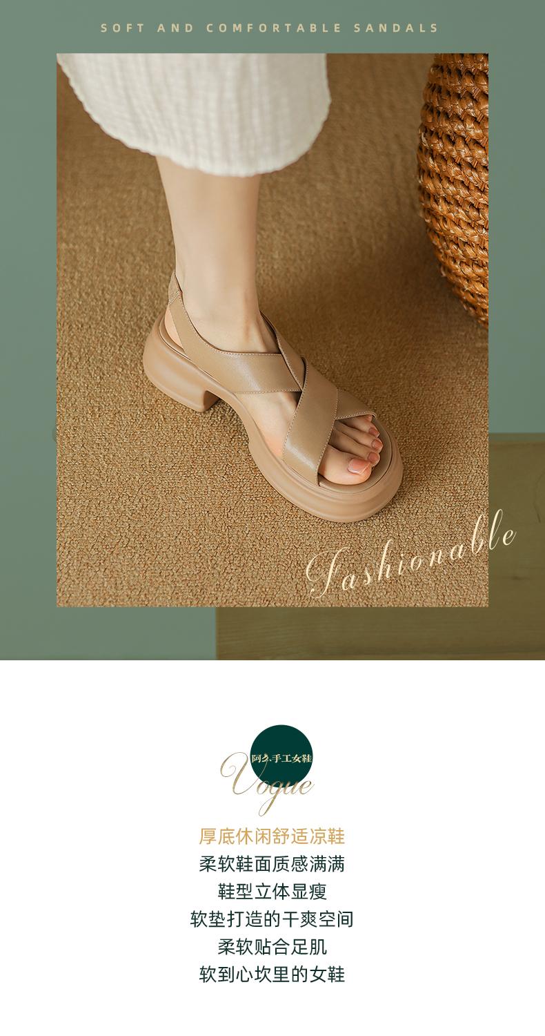 阿么手工女鞋厚底真皮休闲凉鞋女夏季外穿运动百搭松糕鞋增高5CM