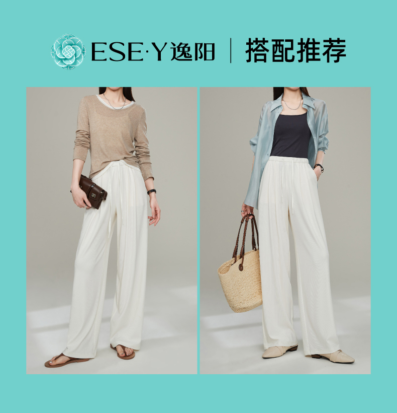 【亏本售!莫代尔宽直筒】逸阳夏薄高腰垂感顺滑宽松休闲裤子5801