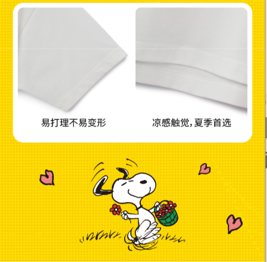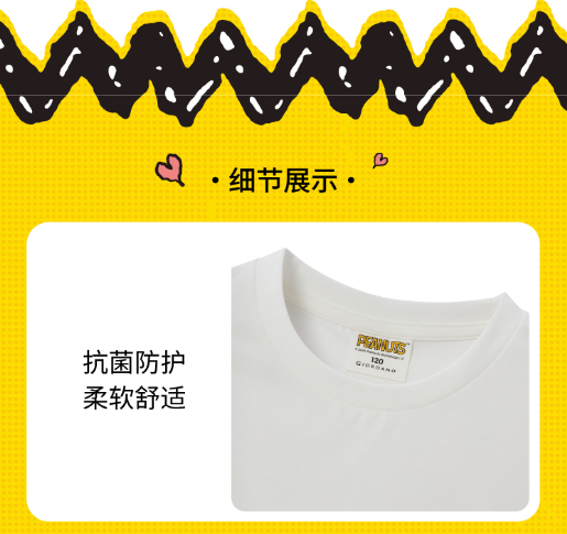 佐丹奴童装【史努比联名款】【sorona】弹力保型面料凉感短袖T恤03085295