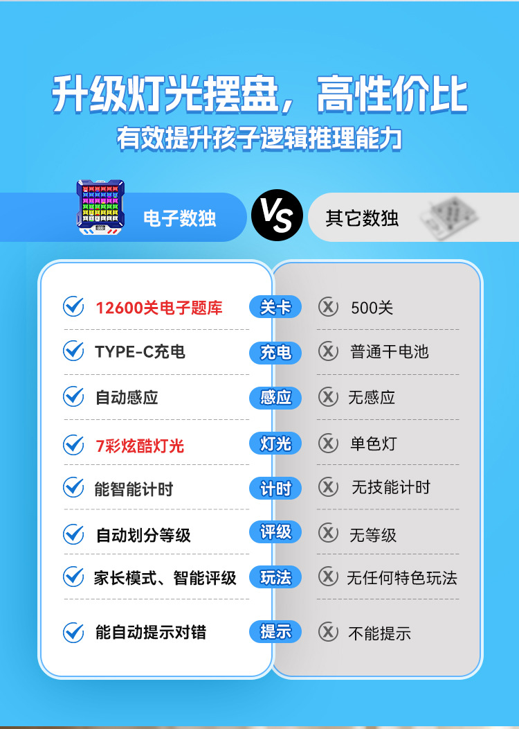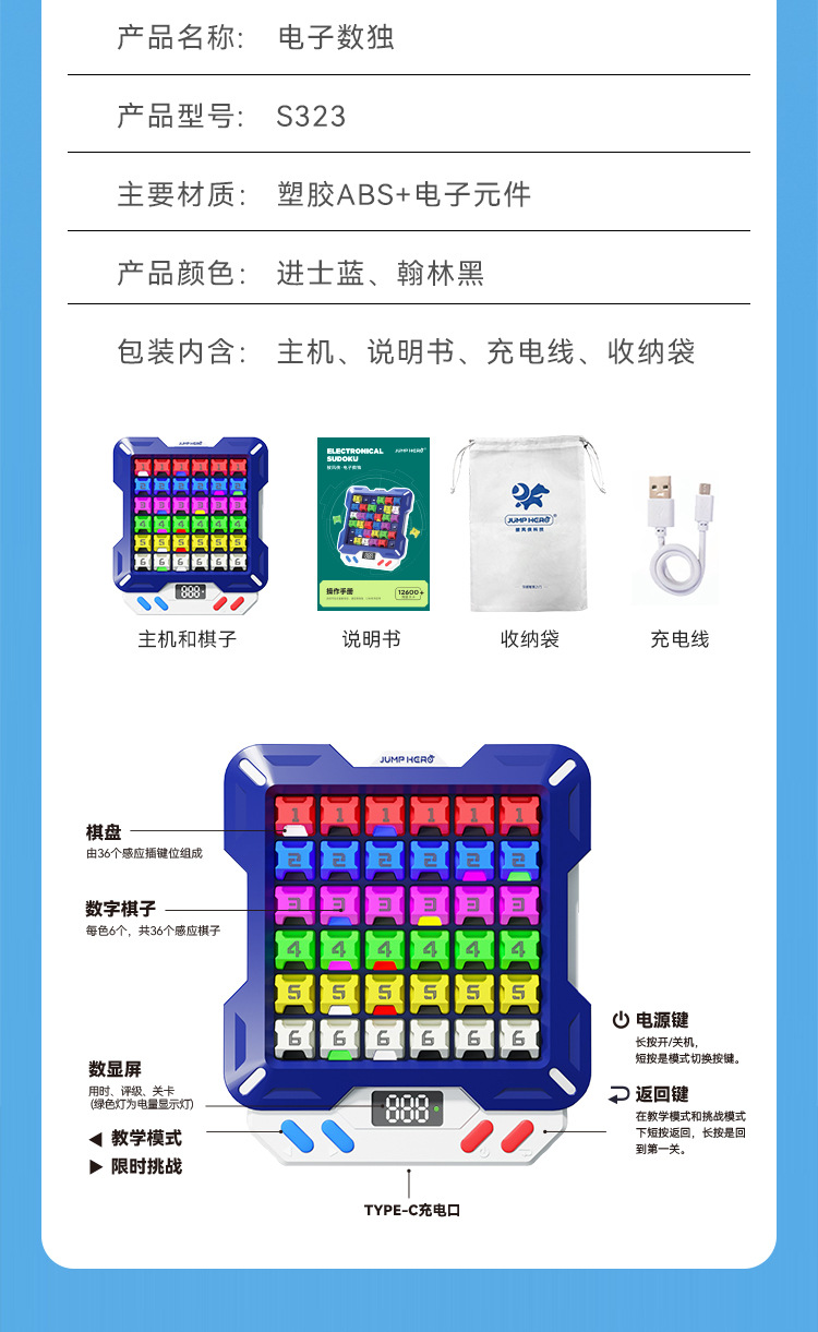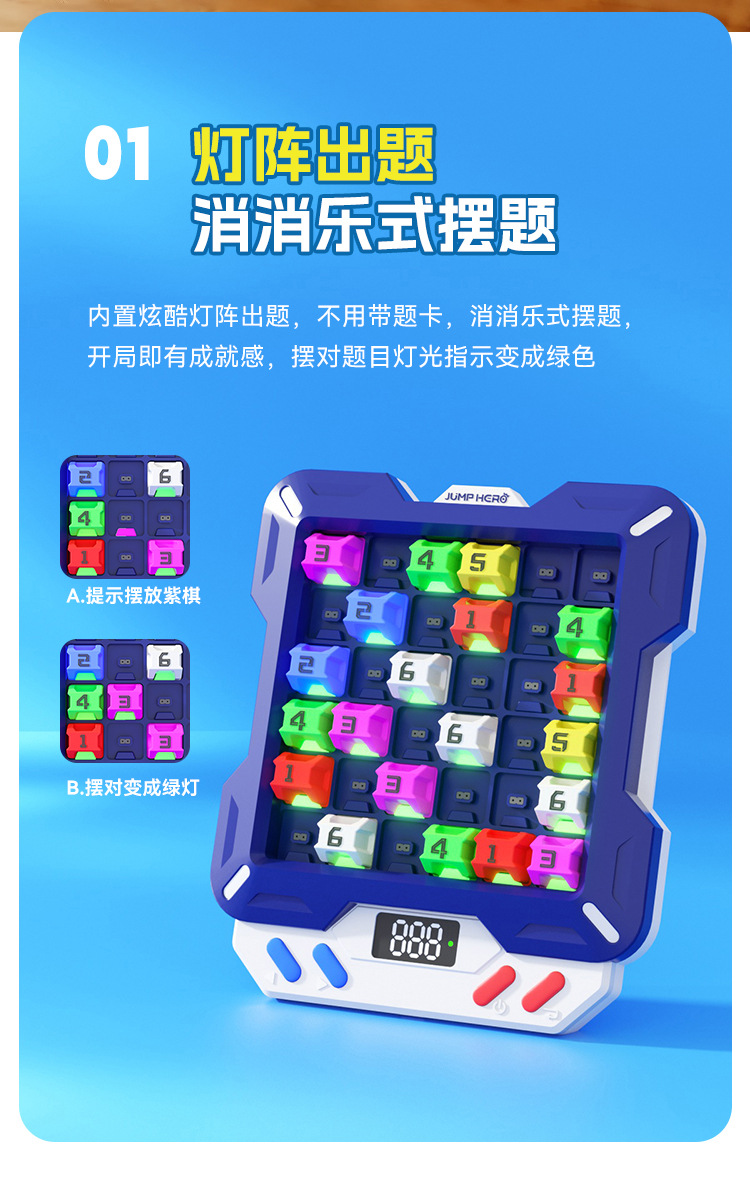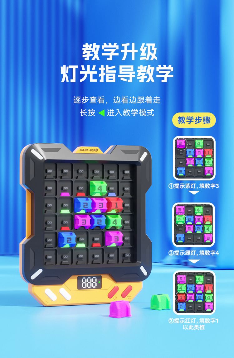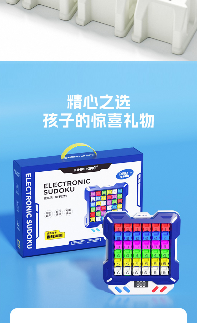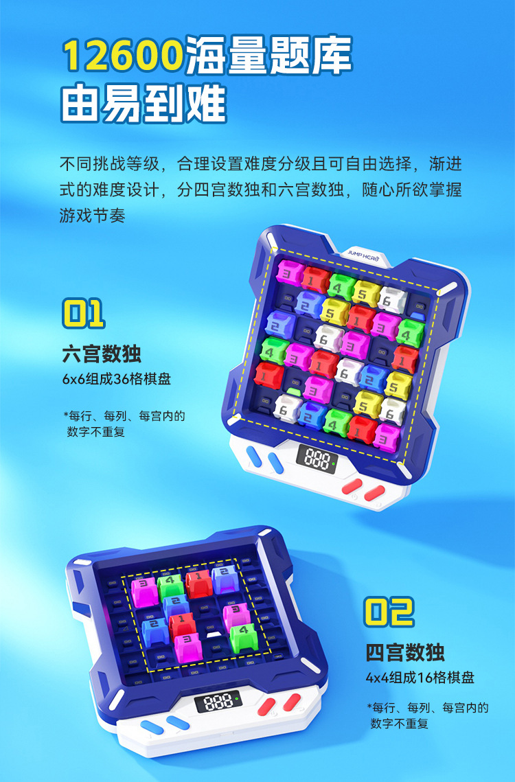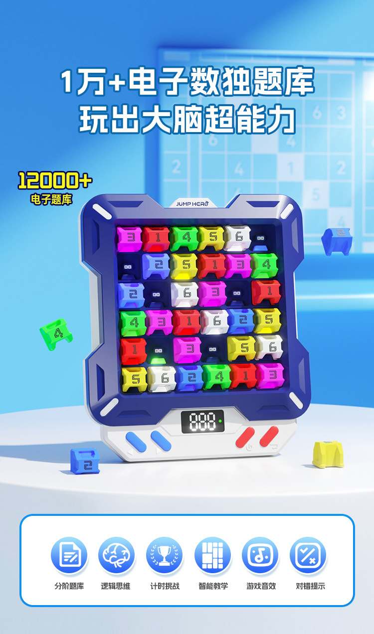 【1万+电子数独题库】JUMP HERO智能电子数独 3-10岁益智儿童玩具桌面闯关游戏机礼物 玩出大脑超能力 分阶题库