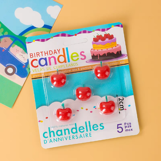红樱桃形蜡烛 5个/板 水果樱桃车厘子造型生日蛋糕派对装饰蜡烛