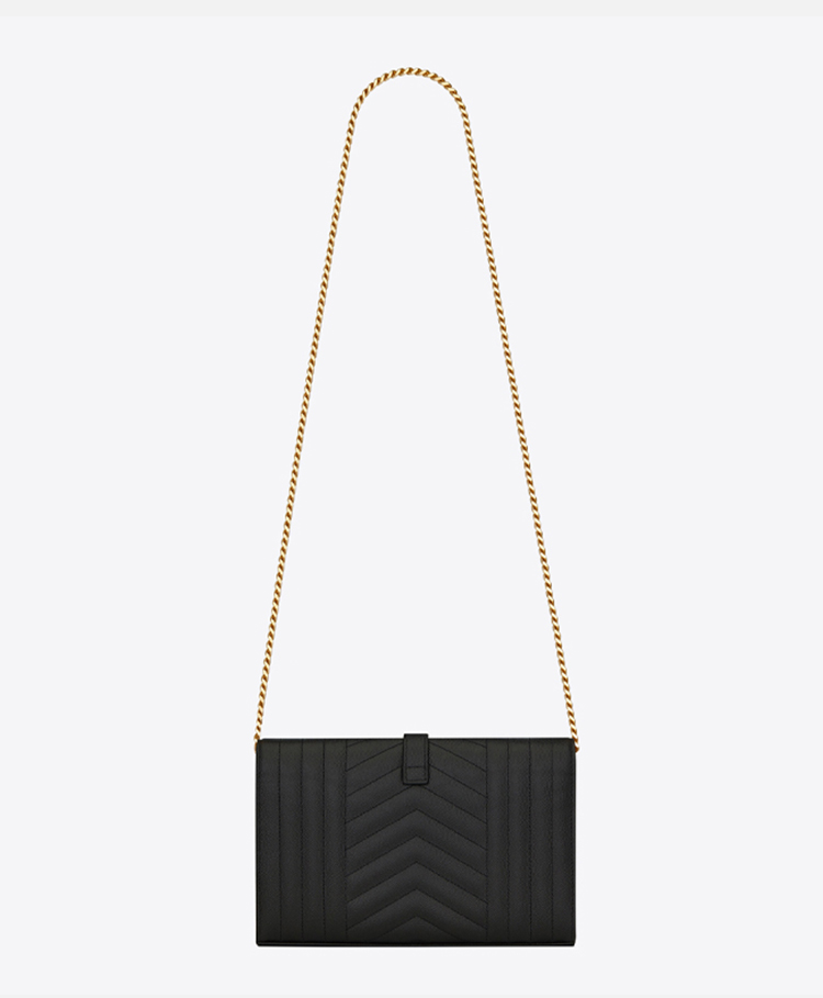 【一】SAINT LAURENT 圣罗兰 女士金属徽标粒面压印皮革链条单肩包 黑色 620280 BOW91 1000