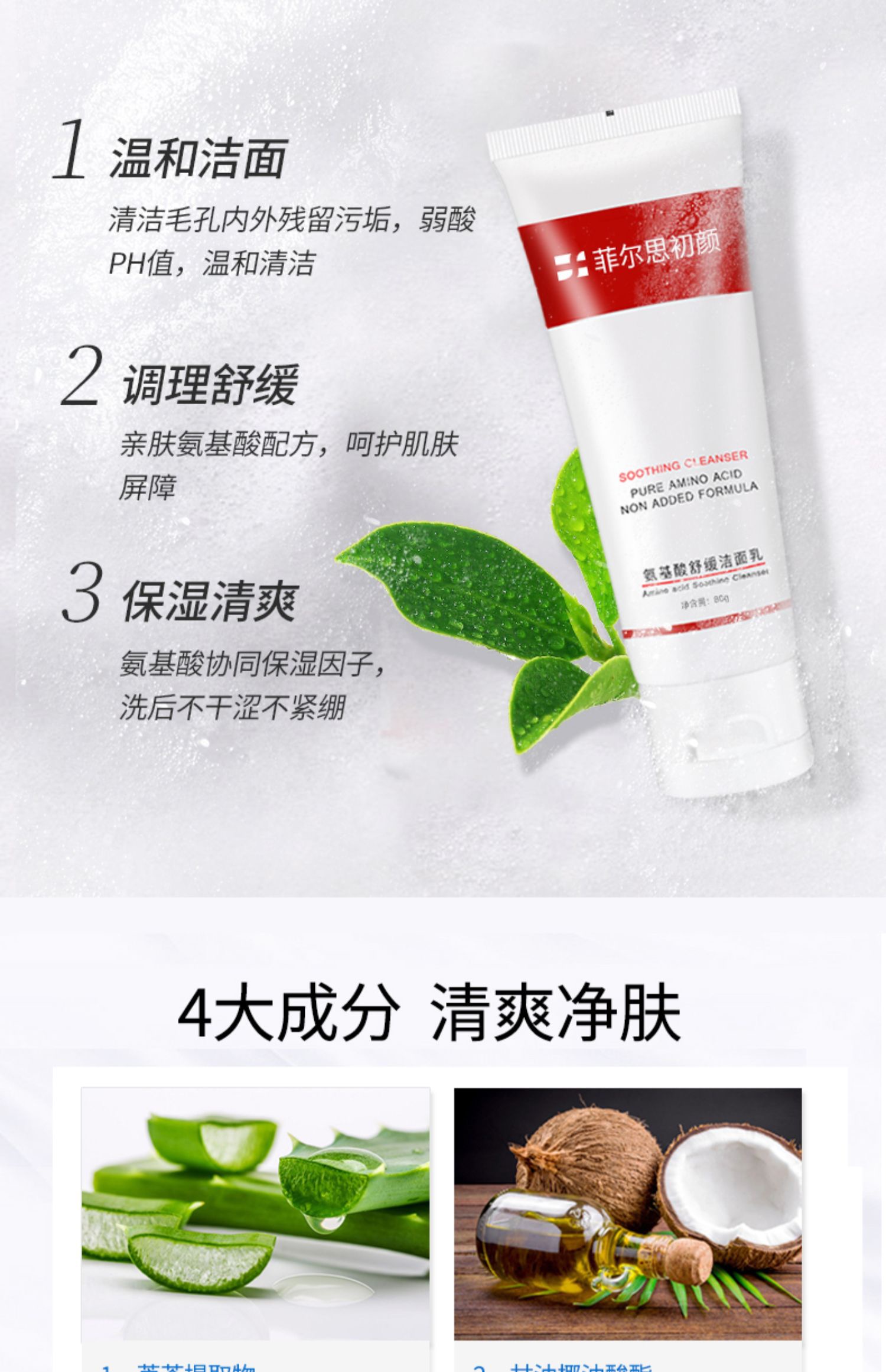 1、产品名称:菲尔思氨基酸洁面乳