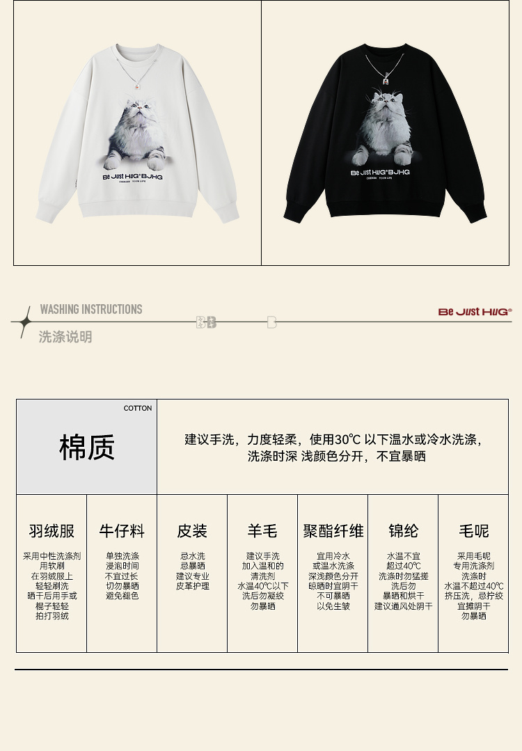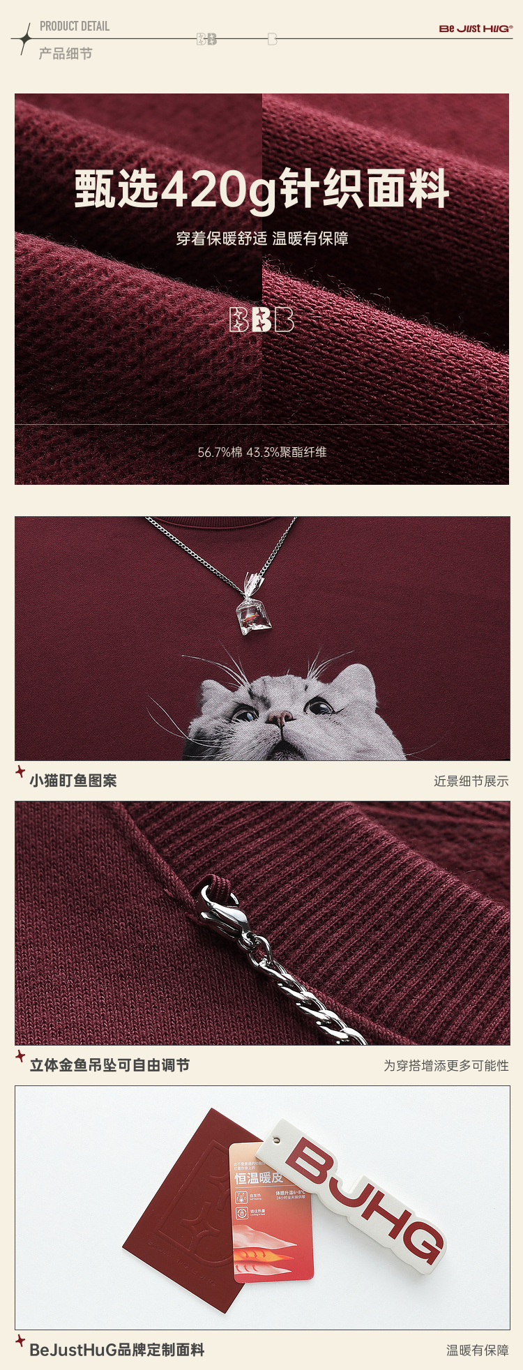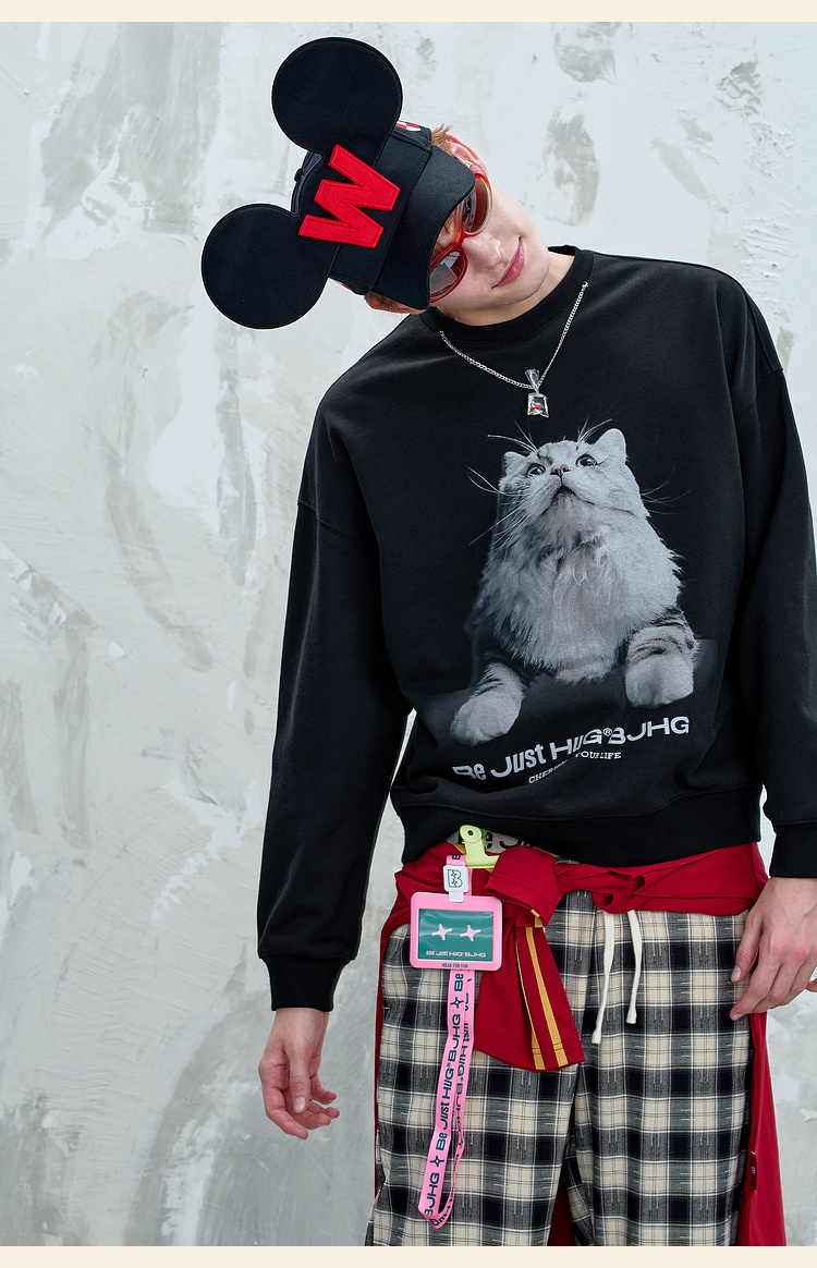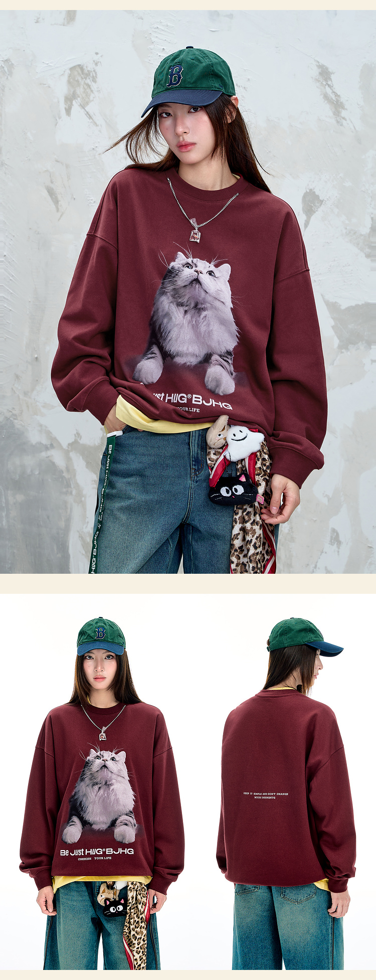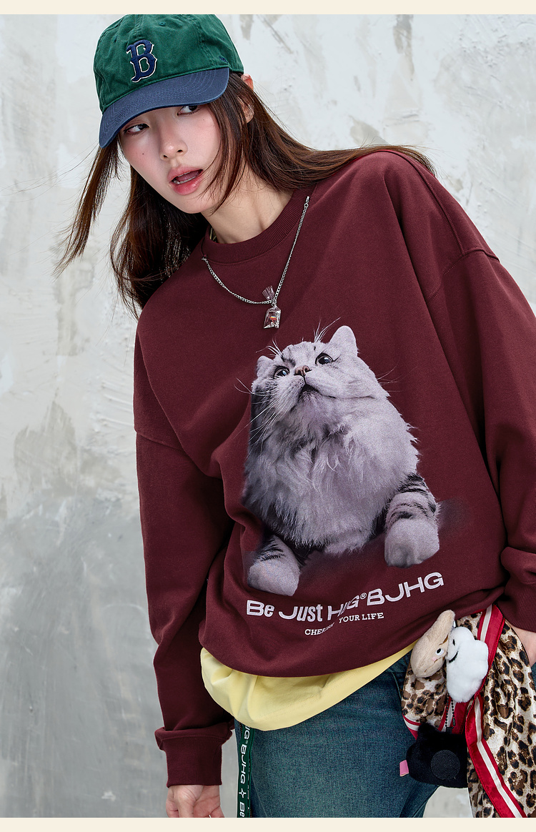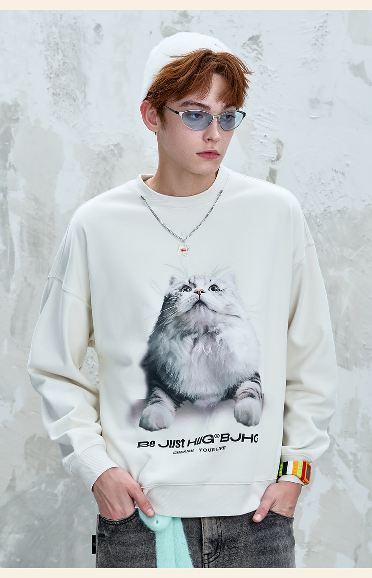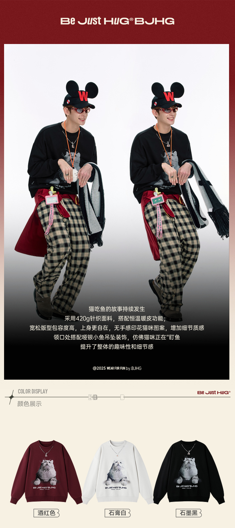 BJHG不计后果 小猫长袖t恤男款秋季美式宽松休闲暖皮恒温情侣卫衣