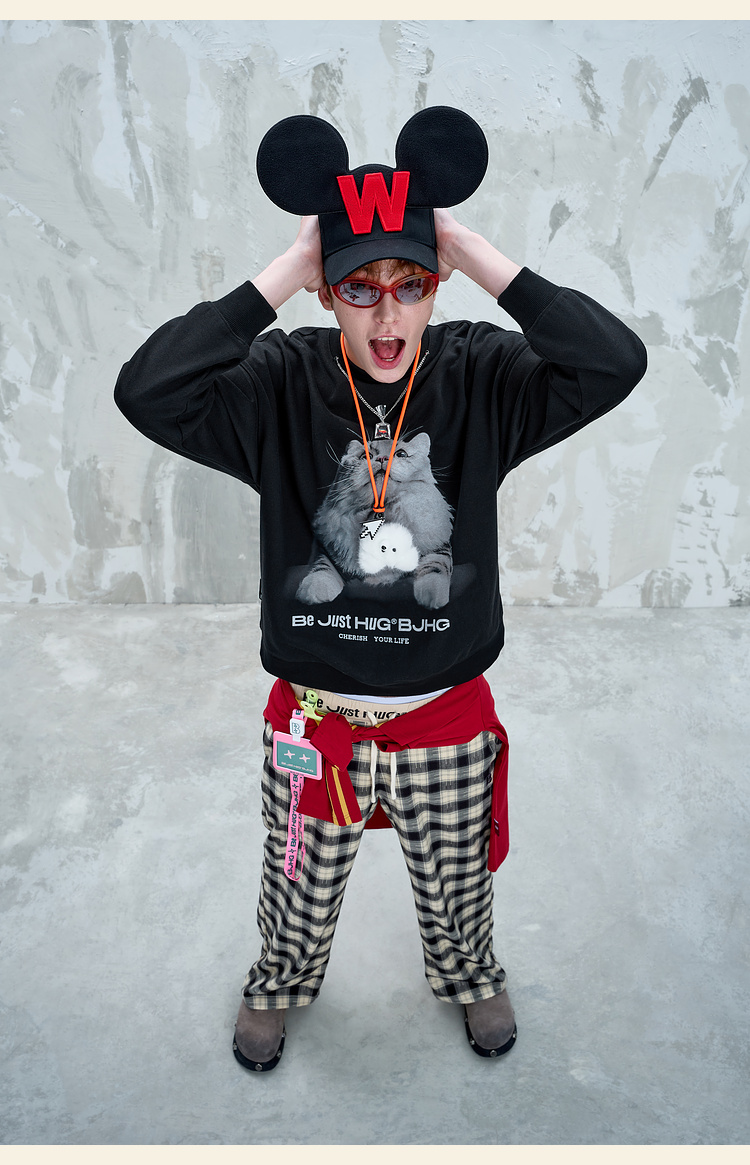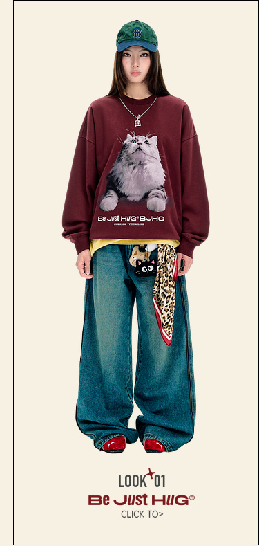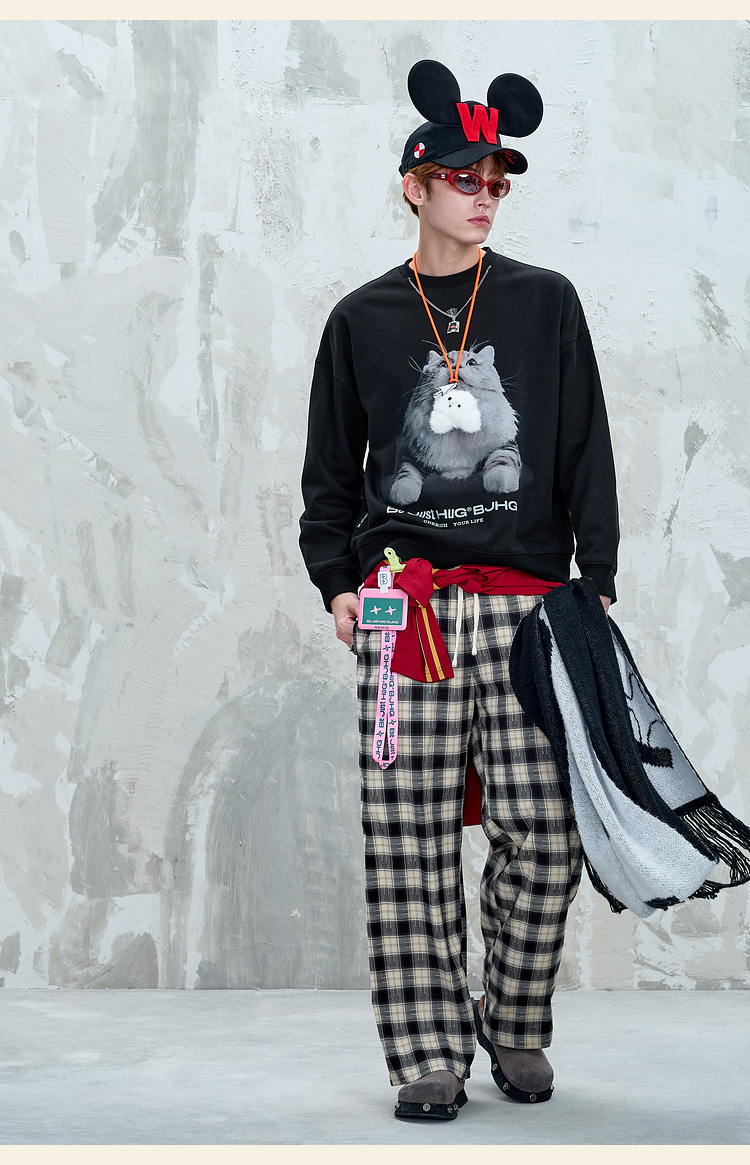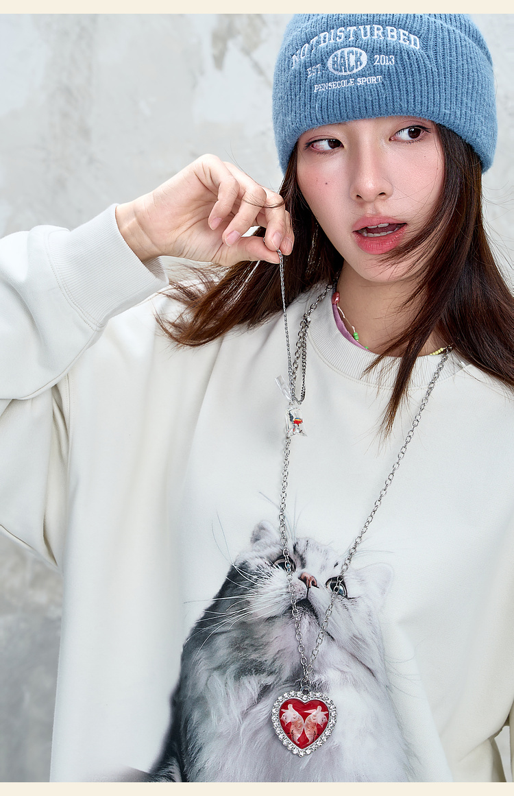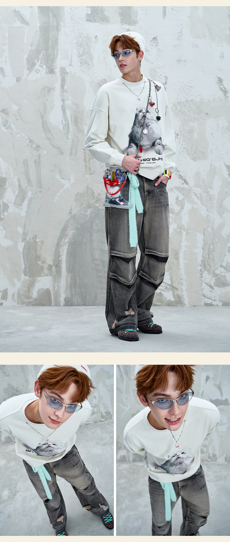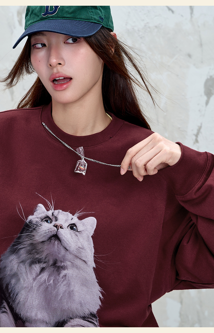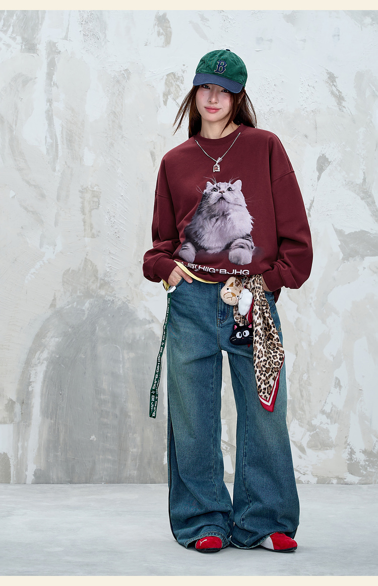 BJHG不计后果 小猫长袖t恤男款秋季美式宽松休闲暖皮恒温情侣卫衣