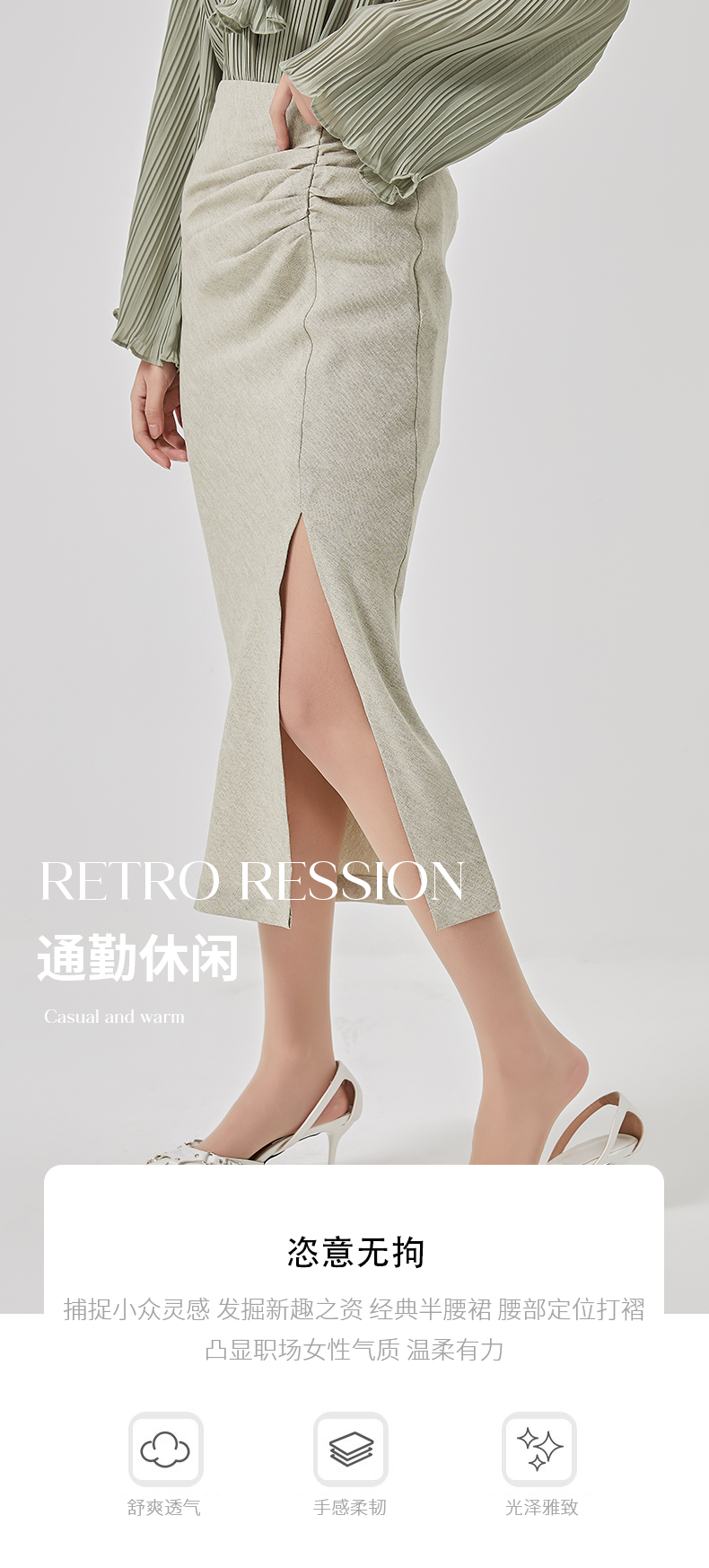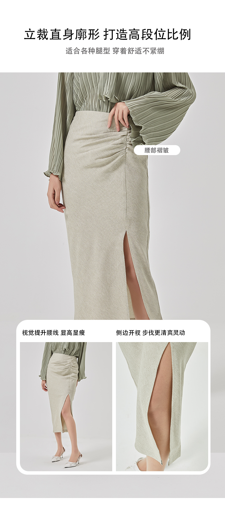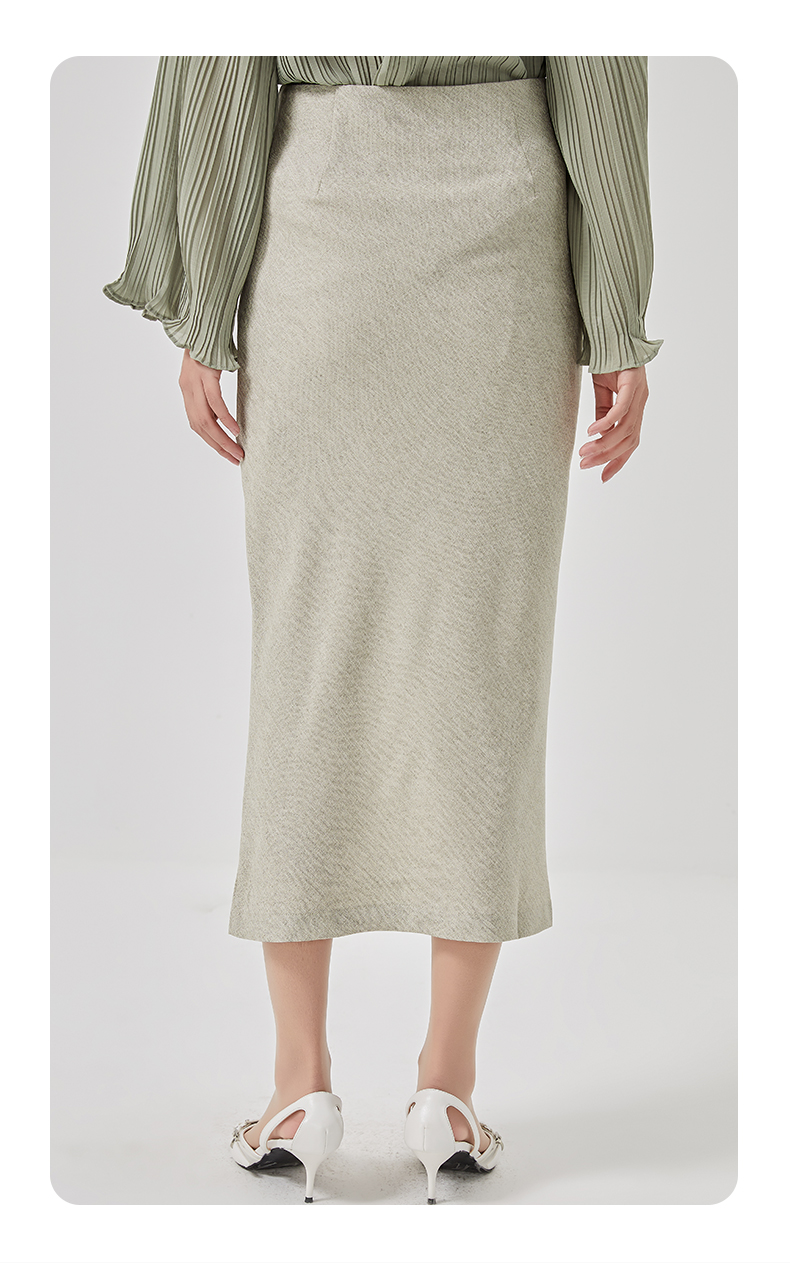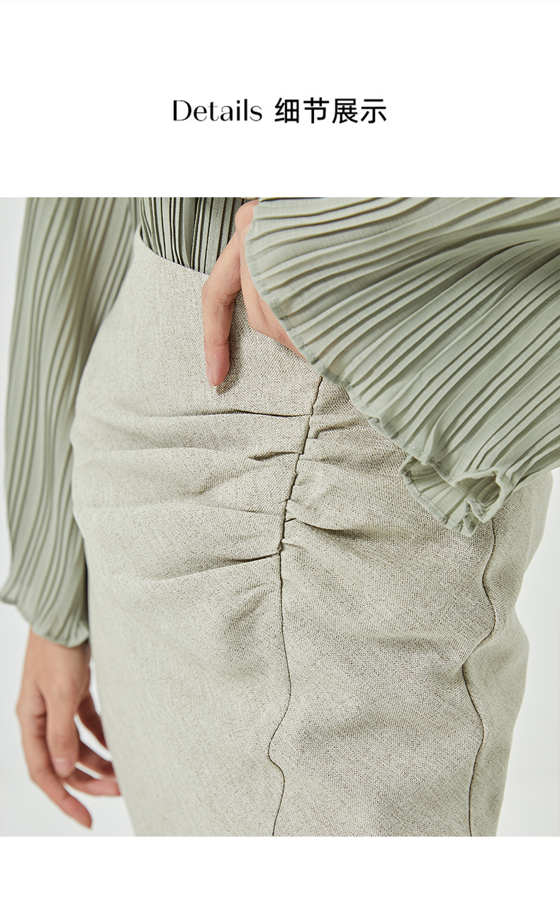 oldcolour2023春季新款高腰气质包臀抽褶开叉半身裙女HO14063423