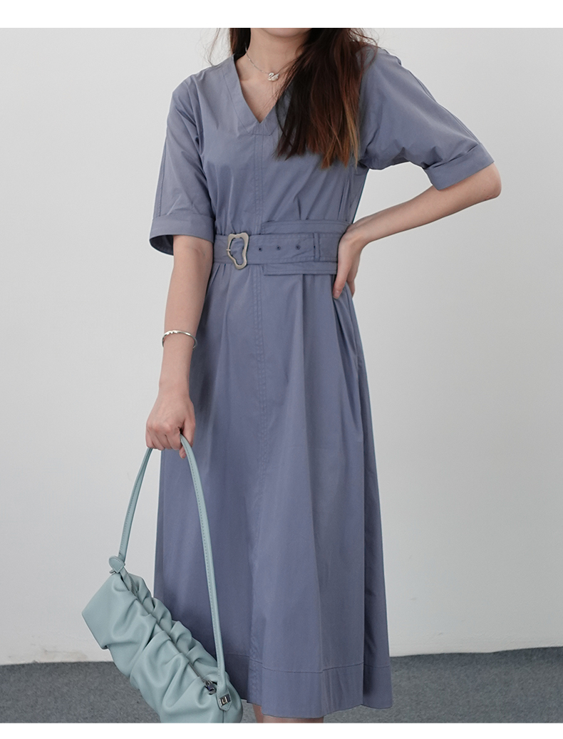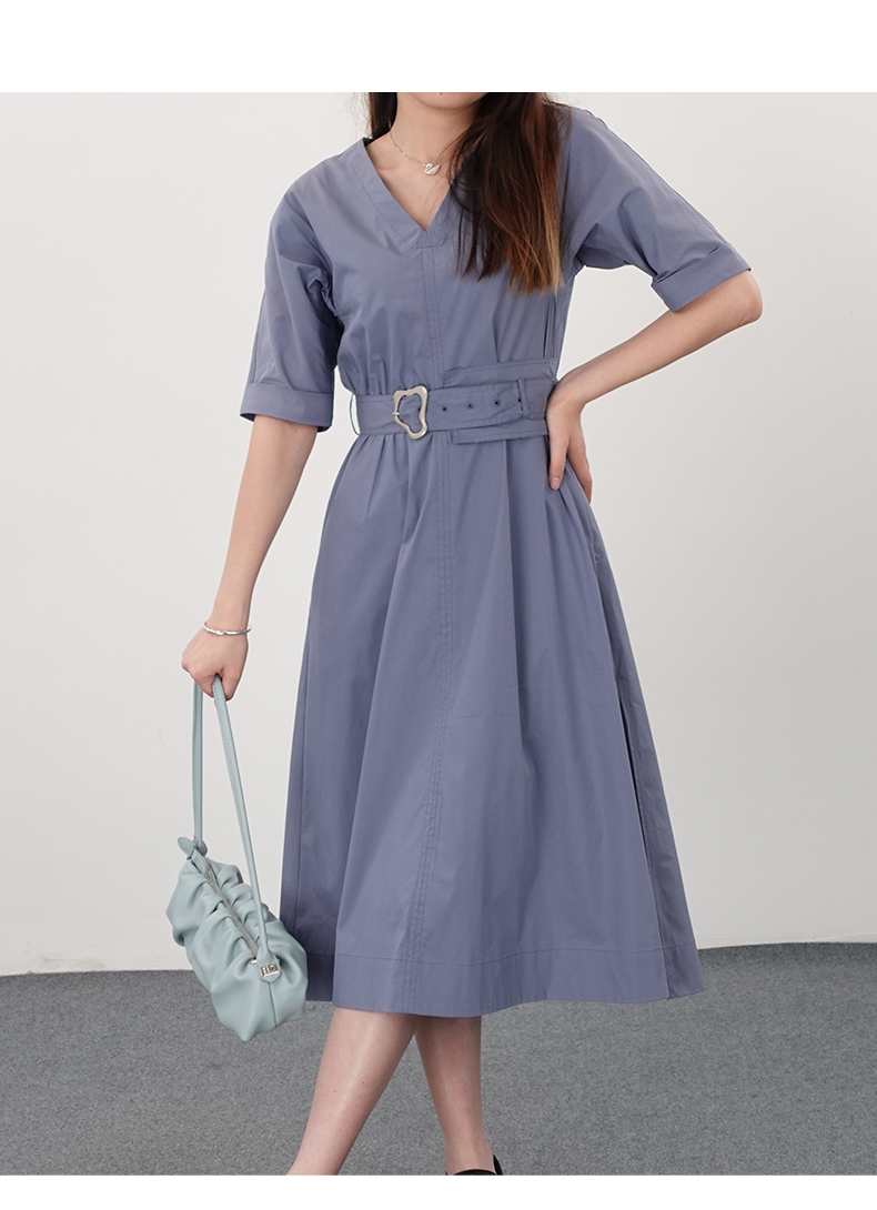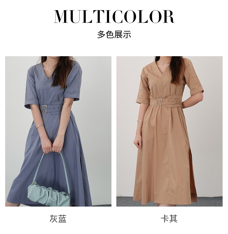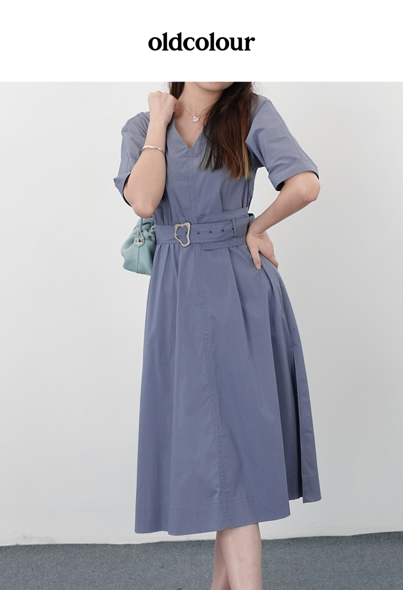 oldcolour21夏V领法式复古中长款气质连衣裙N21101122