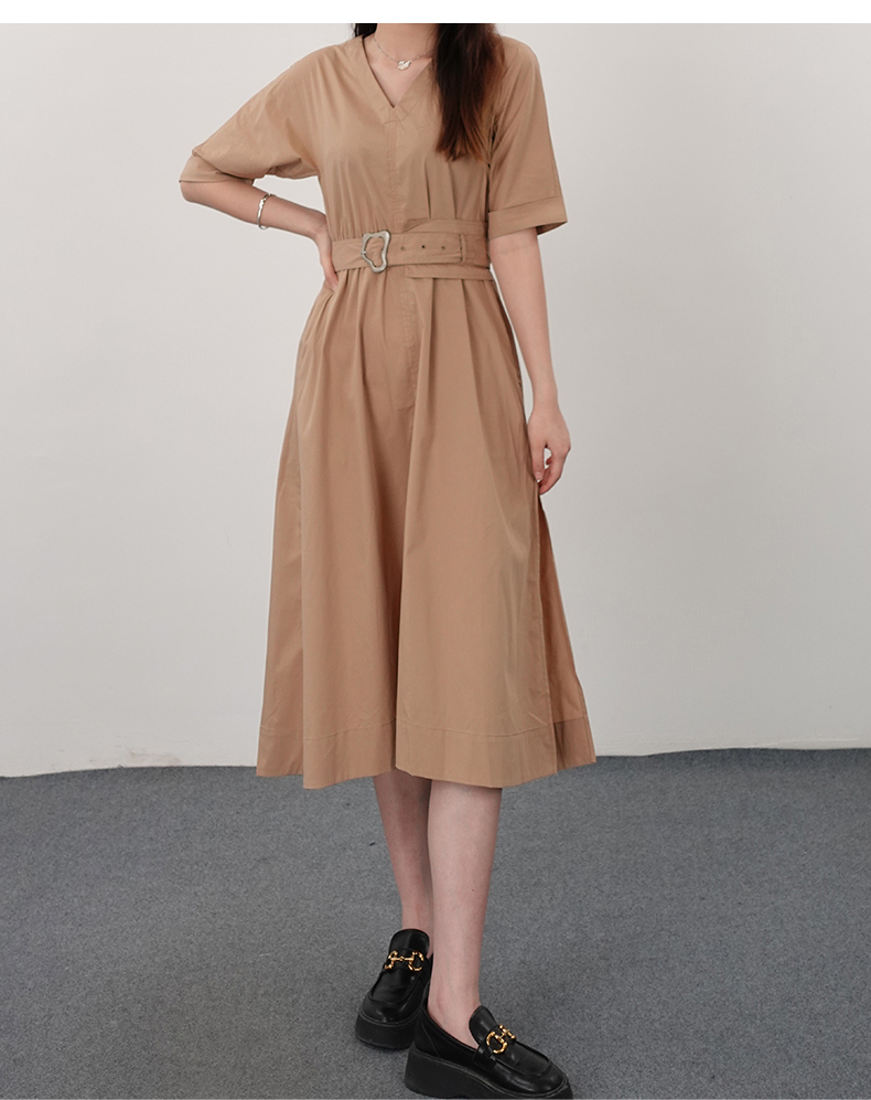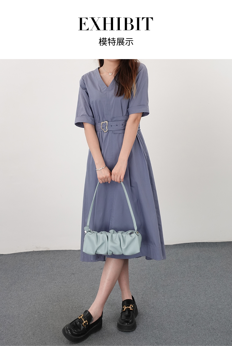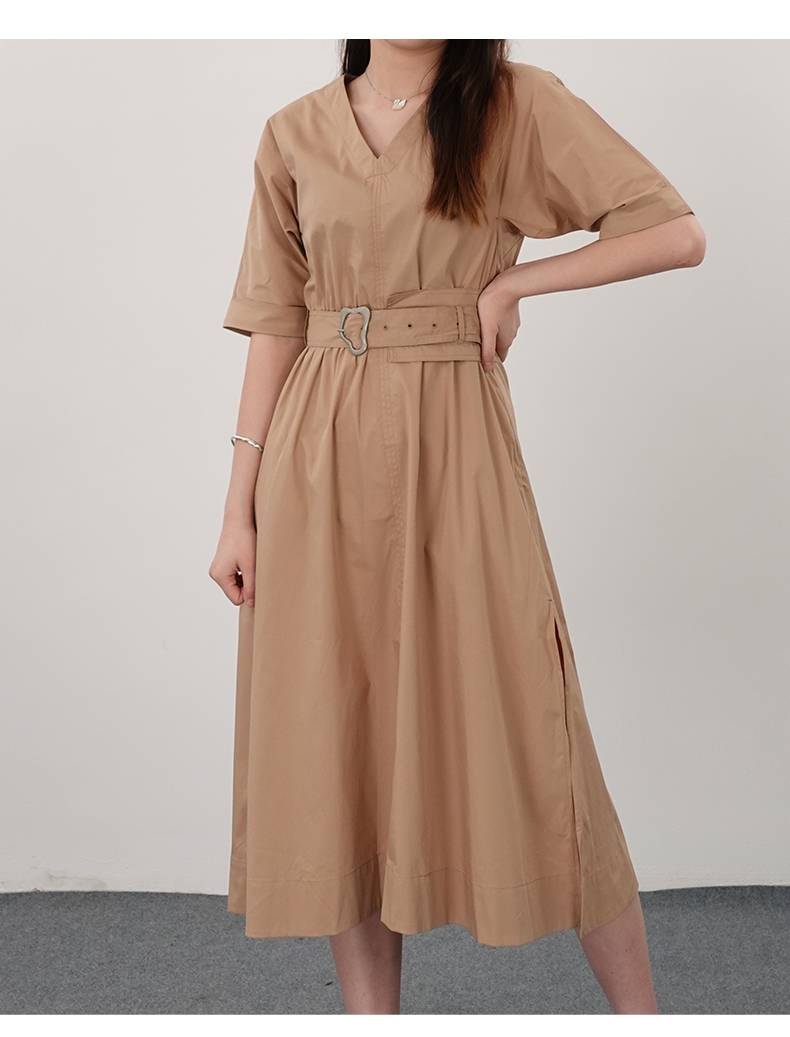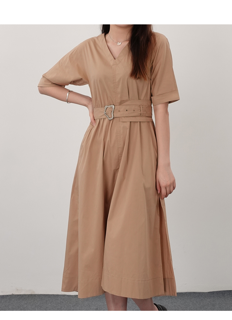 oldcolour21夏V领法式复古中长款气质连衣裙N21101122