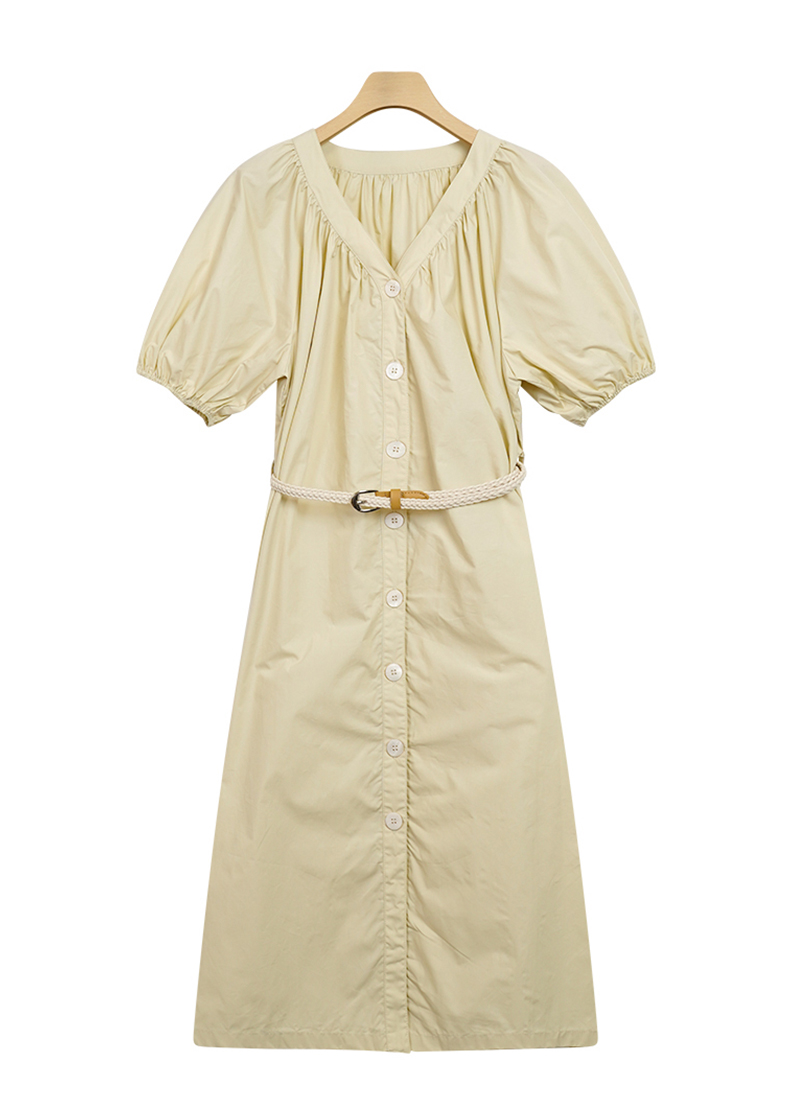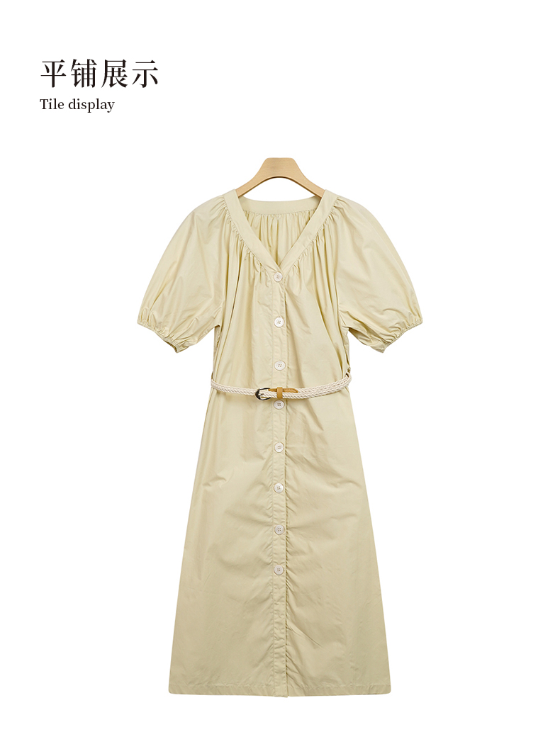 NUTS夏季时尚通勤风圆领打揽设计泡泡袖连衣裙428103465