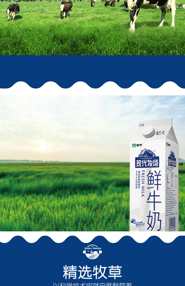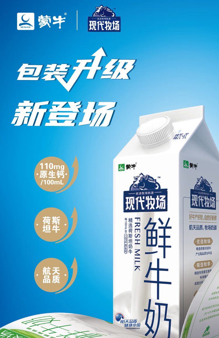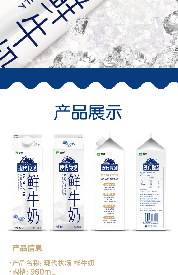 蒙牛现代牧场鲜牛奶屋顶包960ml